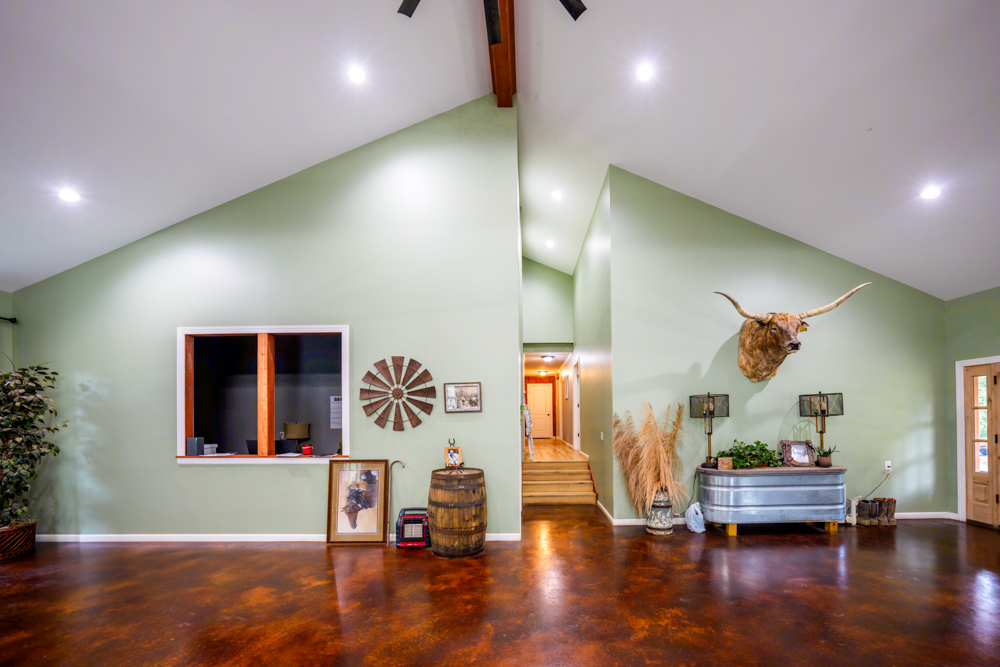 Welcome to this beautiful 8 +/- acre countryside retreat offering the perfect blend of rustic charm and modern comfort. This 4,100-square-foot country-style home sits at the end of a private, gated blacktop driveway with approximately 170 feet of road frontage. The property is fully fenced and cross-fenced (completed in 2023) and features a 4 stall horse barn, equipment barns, and cattle chutes, ideal for livestock, horses, or hobby farming.