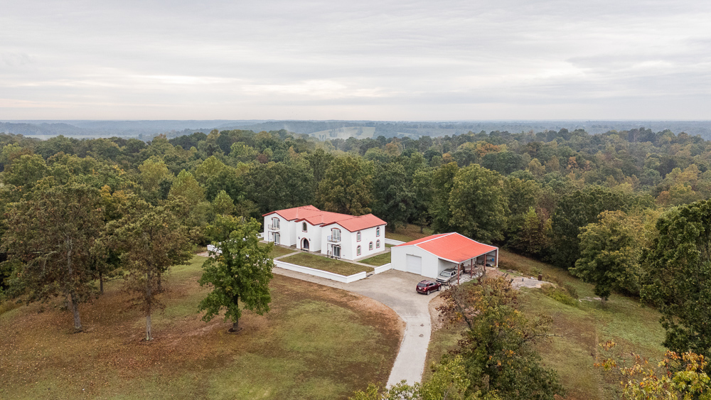 Discover this stunning 30 +/- acre property offering a perfect blend of seclusion and beauty. The land features a mix of pasture and mature timber, highlighted by two major ridge tops and an abundance of deer.The centerpiece of the property is a 4,000 +/- square foot Spanish-style home with 3 bedrooms and 3 baths. The custom home features a large great room in the center, with beautiful staircases leading to the second level. On the main floor, you will find a large library/office room, a large living room, the kitchen, and the dining room. Upstairs, you will find the master bedroom and two additional bedrooms. Custom-designed doors, hardwood /tiled floors, stucco siding, and metal roofing are some additional features.