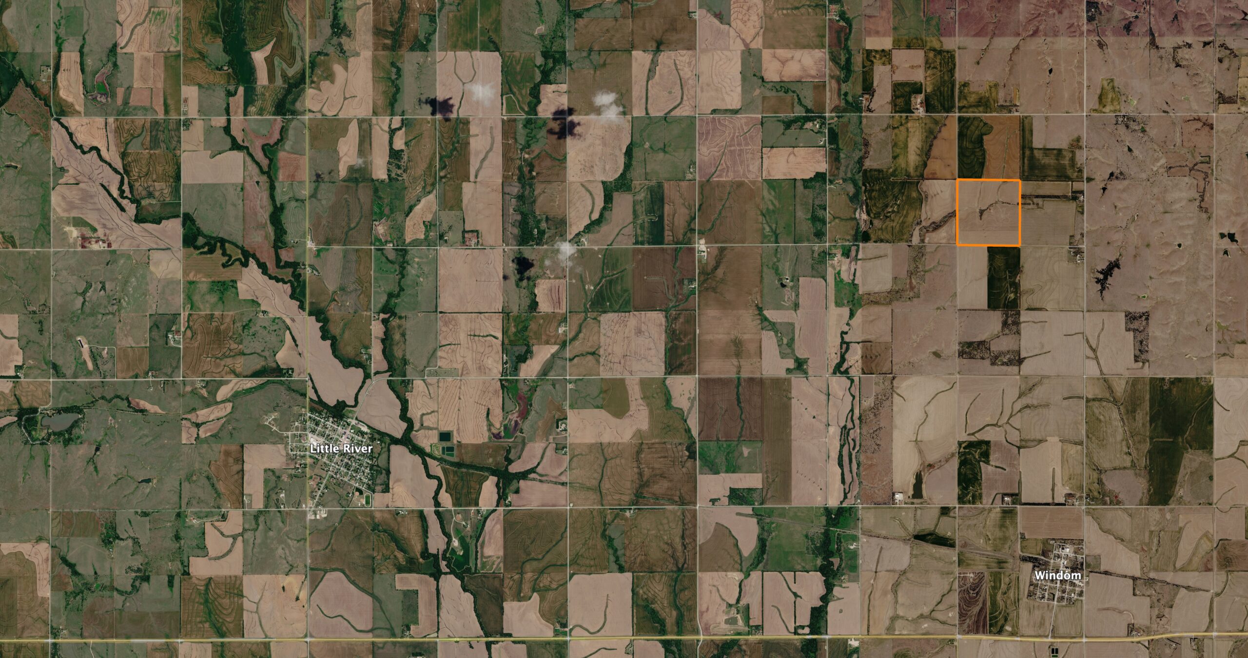 Between Little River and Windom, right on the McPherson County line, sits this balanced 153 +/- acre farm. Comprised of a rolling upland dryland farm ground and a nice Cottonwood draw full of deer traffic and signs. This farm has a great mix of return and recreation for anyone wanting the benefits of chasing that nice deer and getting a solid return as well!