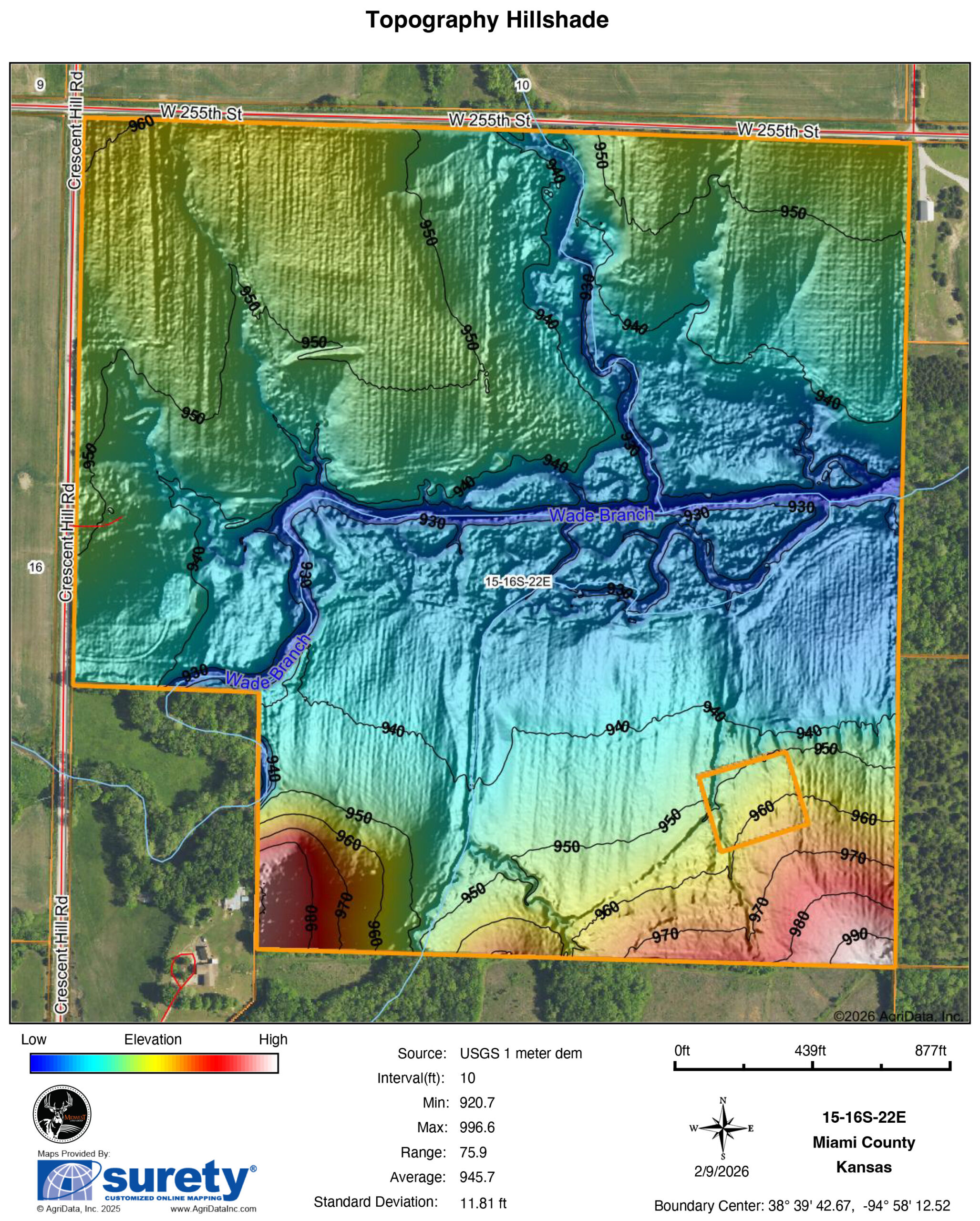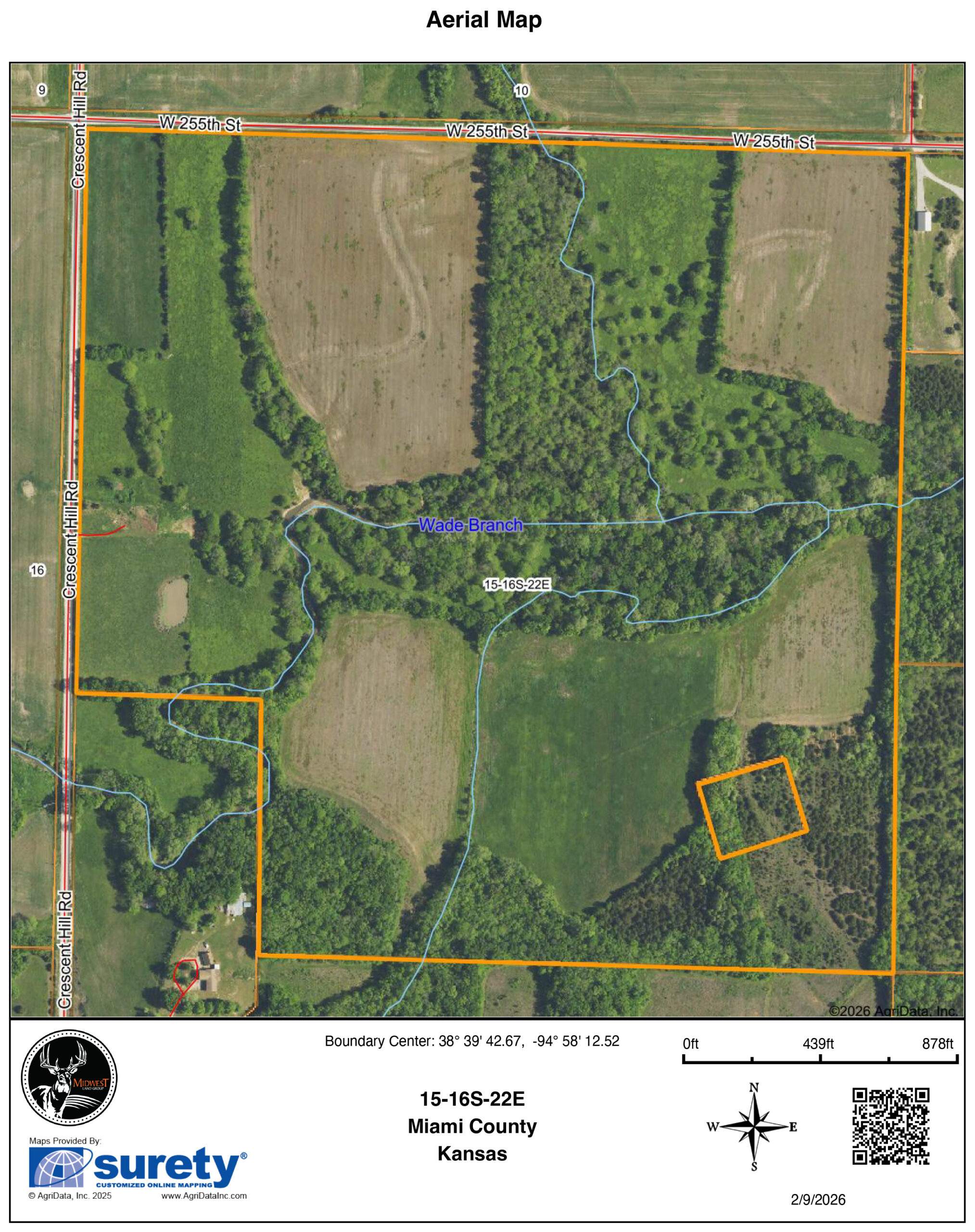 Located just 15 minutes from Paola and 25 minutes from Olathe, this exceptional 148.9 +/- acre tract offers a rare combination of income, recreation, and prime build potential in a highly desirable area. With approximately 98 +/- tillable acres featuring productive Class II & III soils, the farm provides strong agricultural capability and steady cash rent income. Additional pasture acreage adds versatility for livestock or expansion of farming operations.The property boasts approximately .85 miles of road frontage and power at the road, creating multiple outstanding homesite options with scenic views across diverse topography. Whether you’re looking to build a private estate, barndominium, or weekend retreat, the setting offers both accessibility and seclusion.