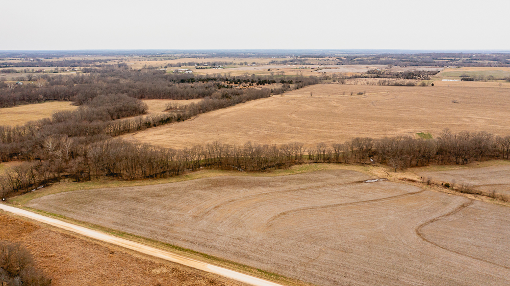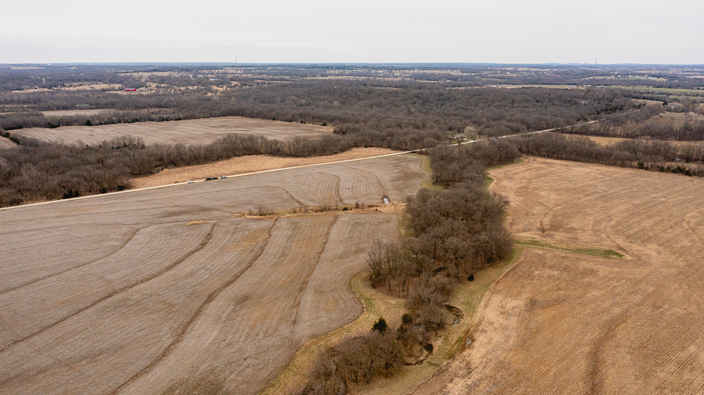 For those envisioning more than just a working farm, the infrastructure is already in place. Rural Water District No. 2 lines trace the north and east borders, while Evergy electric service runs along the north side, making this an outstanding candidate for a custom-built luxury estate. Perched atop the gentle hillside, a future home would overlook a breathtaking expanse of fertile ground, timbered draws, and winding creek corridors.