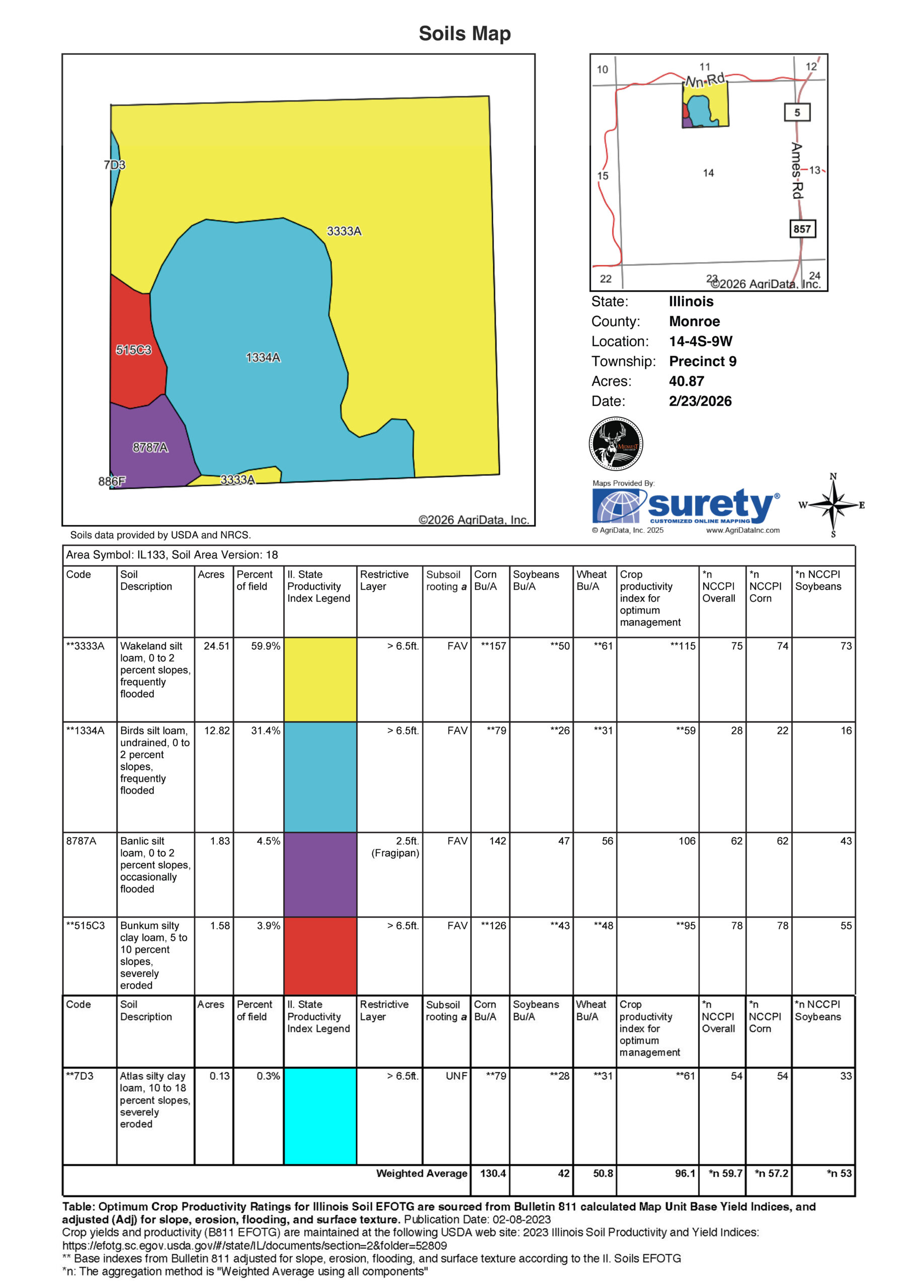 - 36 acres of productive tillable Class II and III Silt loams
