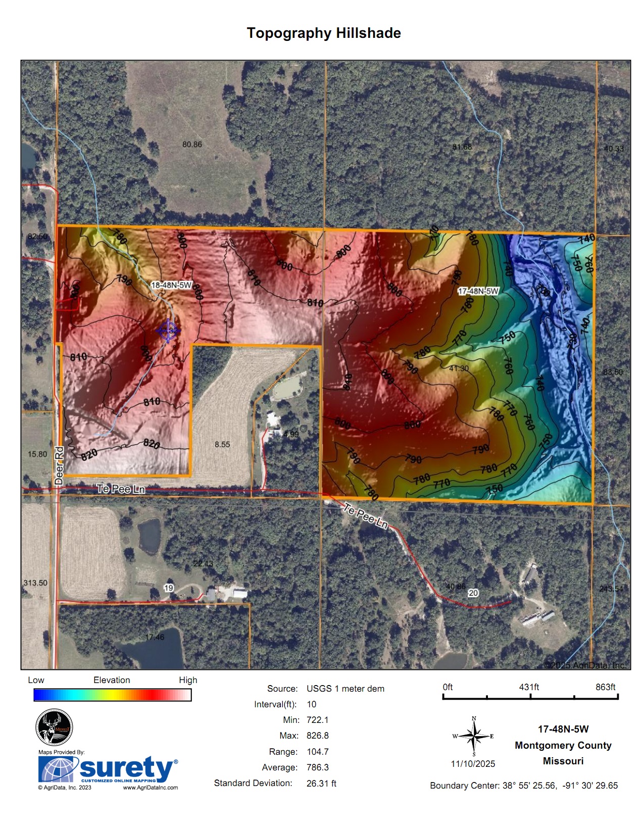 Recreational opportunities abound with excellent hunting throughout the property. A quick drive through the well-curated trail system, and you will easily see the strong presence of whitetail throughout the timbered areas. The land is already equipped with multiple hunting blinds and is known for strong wildlife activity. A large creek along the backside of the property adds both scenic appeal and natural habitat, further enhancing its recreational value.