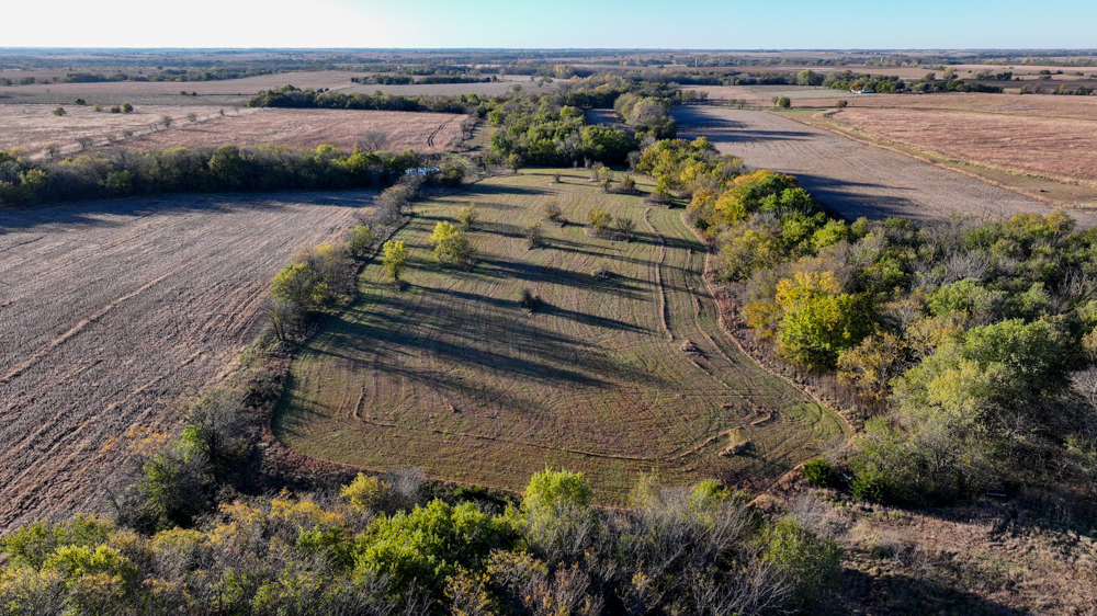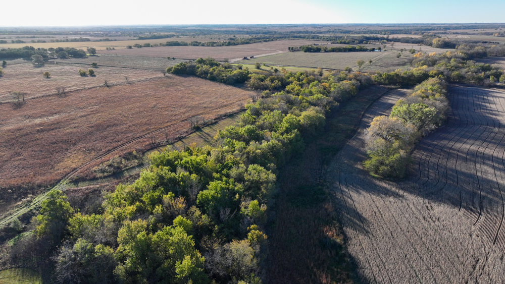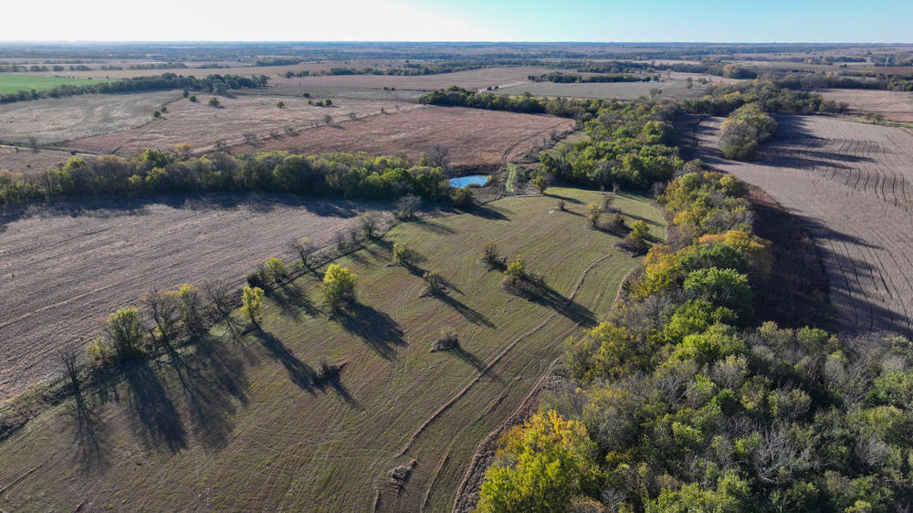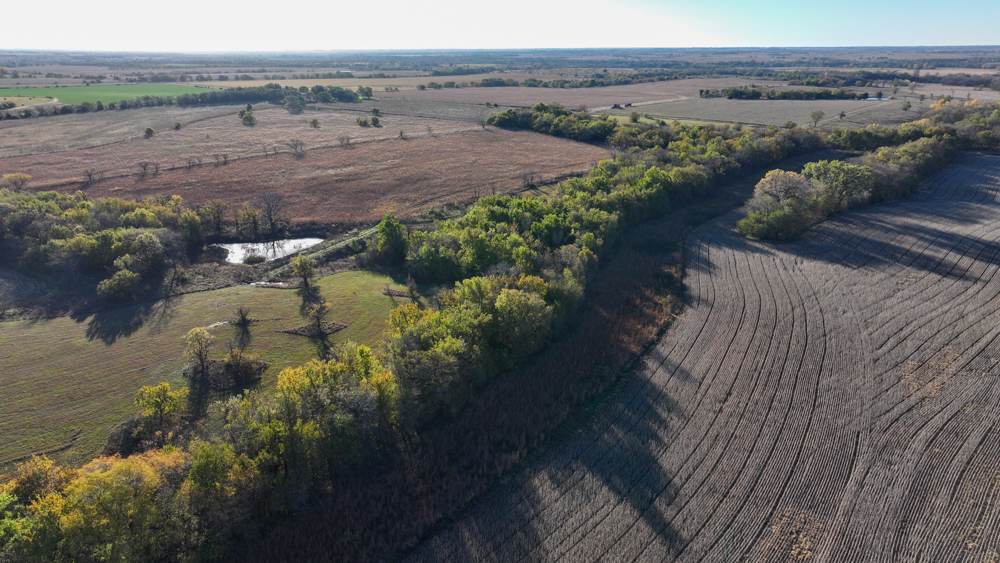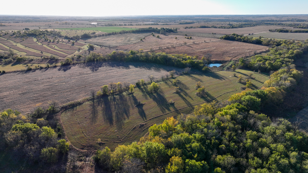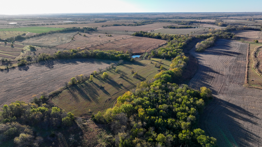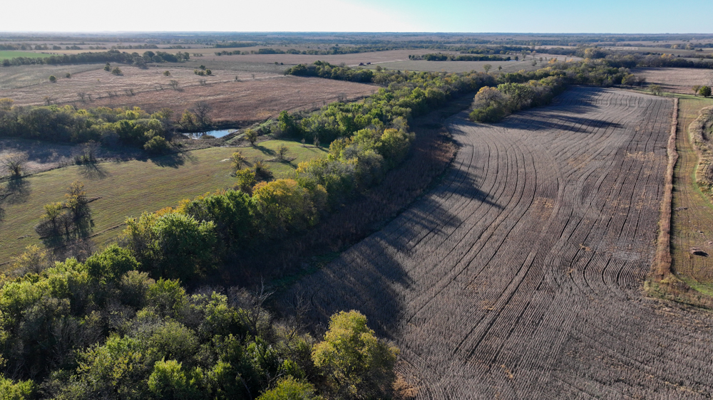 This 85 +/- acre property in Morris County is located just southeast of White City, Kansas, and offers an impressive mix of income-producing acres, diverse habitat, and build site potential. The land features productive tillable fields, CRP income, warm-season native grass hay meadows, timbered draws, a wet-weather creek, and a fishing/watering pond.There are 27 +/- tillable acres currently in production, primarily composed of Irwin silty clay loam soils with 1–3% slopes and an overall NCCPI rating of 56. Another 16 +/- acres are enrolled in CRP, providing excellent nesting and bedding cover for wildlife along with consistent annual rental income. The remaining 42 +/- acres include clean stands of warm-season native grasses—little bluestem, big bluestem, and Indian grass—along with timbered draws, a wet-weather creek, and a pond. The timbered areas feature a blend of giant cottonwood, elm, hedge, and eastern red cedar trees.