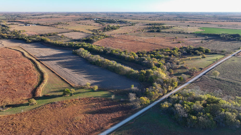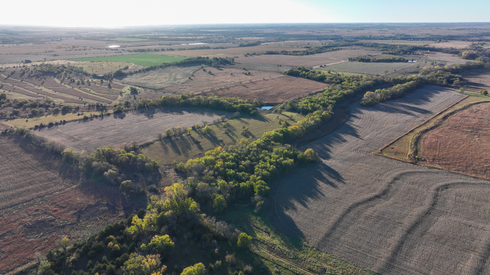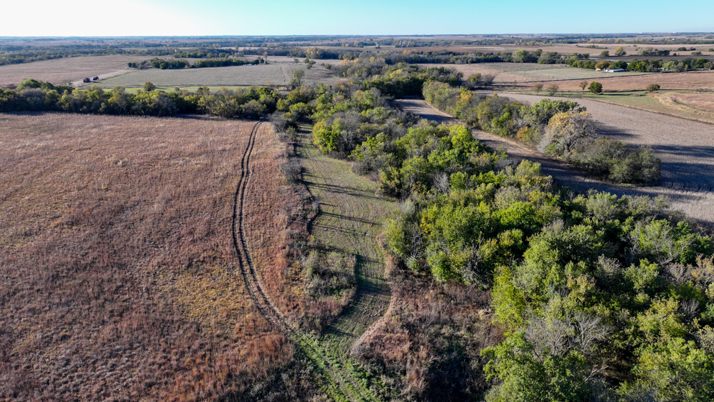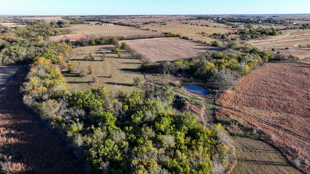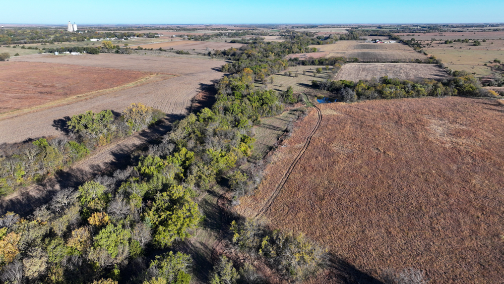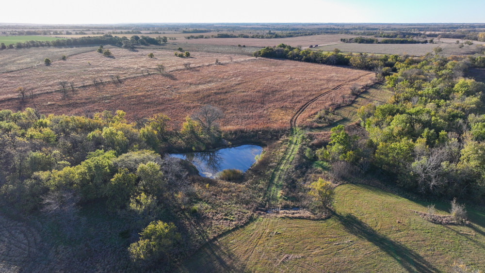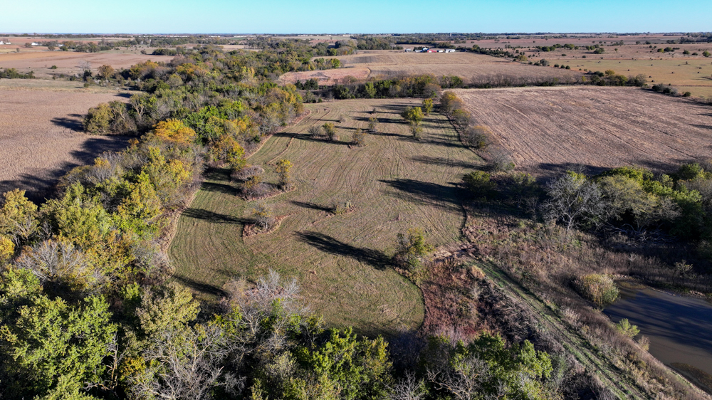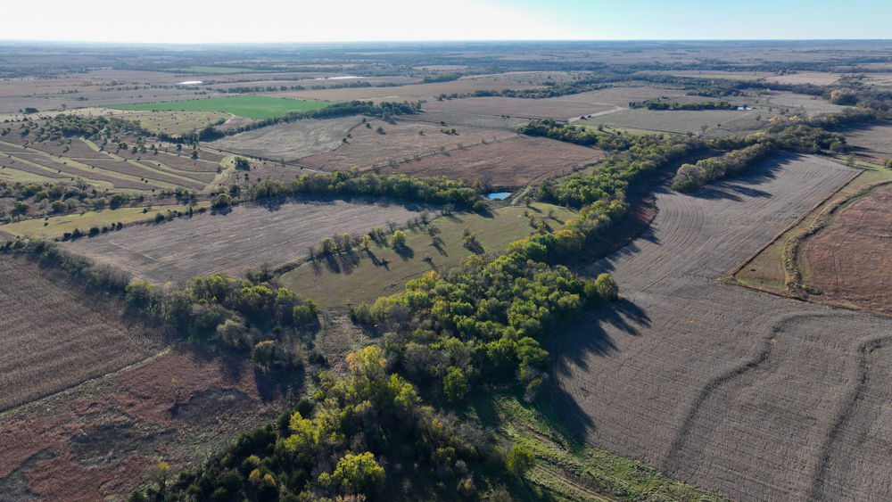 This 85 +/- acre property in Morris County is located just southeast of White City, Kansas, and offers an impressive mix of income-producing acres, diverse habitat, and build site potential. The land features productive tillable fields, CRP income, warm-season native grass hay meadows, timbered draws, a wet-weather creek, and a fishing/watering pond.There are 27 +/- tillable acres currently in production, primarily composed of Irwin silty clay loam soils with 1–3% slopes and an overall NCCPI rating of 56. Another 16 +/- acres are enrolled in CRP, providing excellent nesting and bedding cover for wildlife along with consistent annual rental income. The remaining 42 +/- acres include clean stands of warm-season native grasses—little bluestem, big bluestem, and Indian grass—along with timbered draws, a wet-weather creek, and a pond. The timbered areas feature a blend of giant cottonwood, elm, hedge, and eastern red cedar trees.
