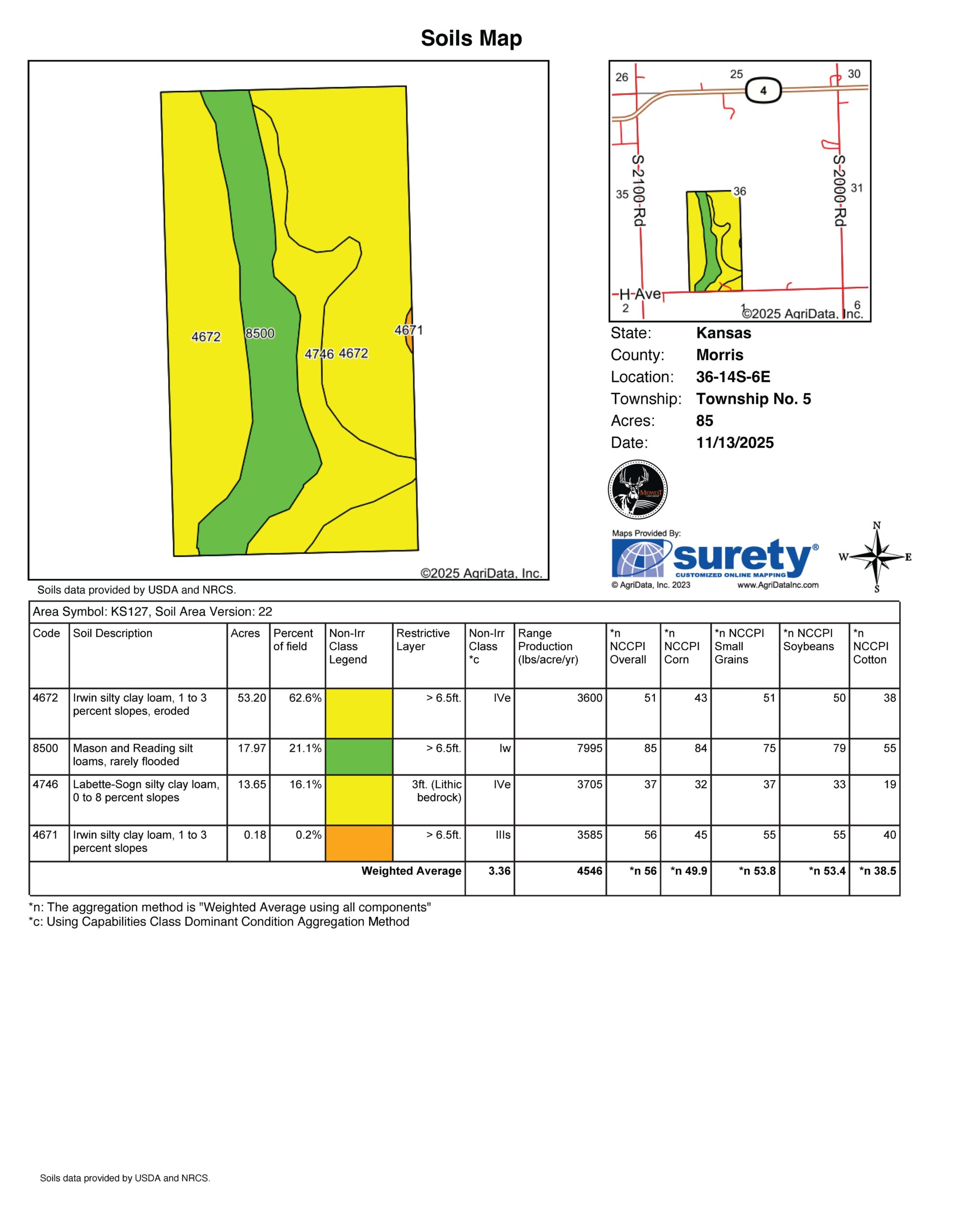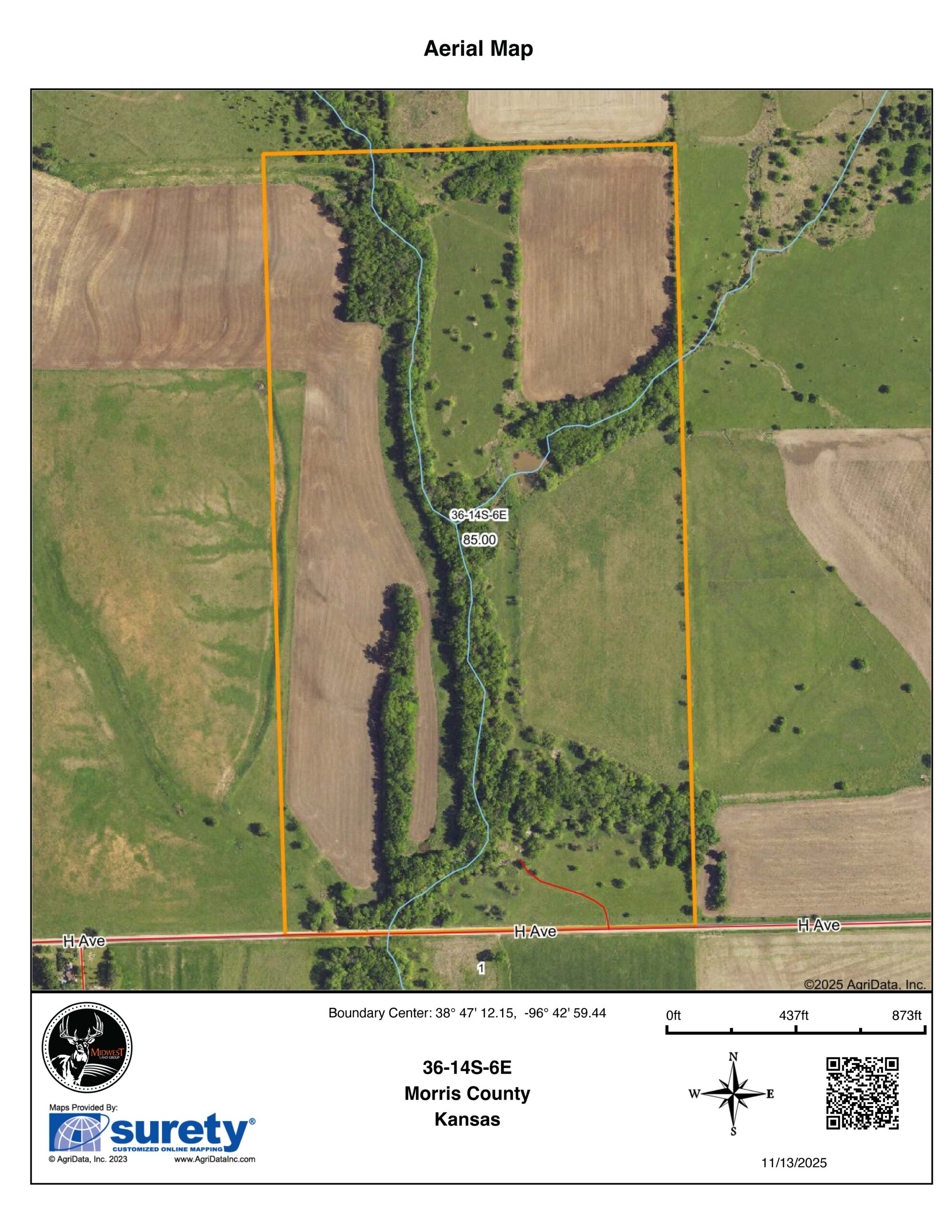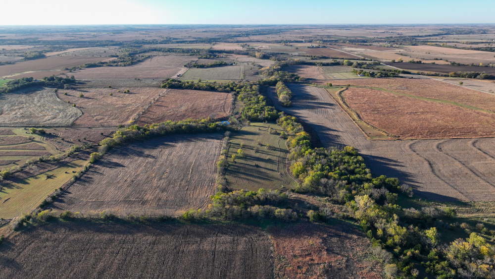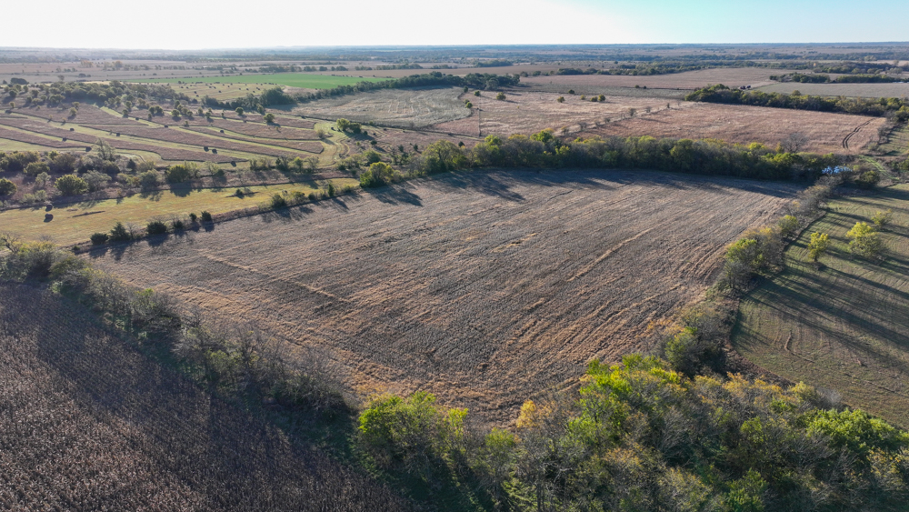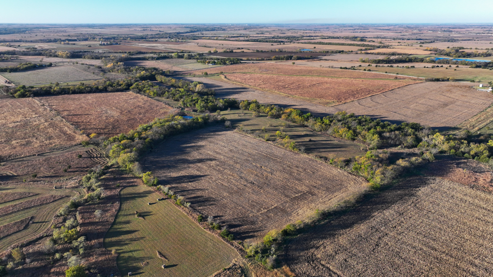 This 85 +/- acre property in Morris County is located just southeast of White City, Kansas, and offers an impressive mix of income-producing acres, diverse habitat, and build site potential. The land features productive tillable fields, CRP income, warm-season native grass hay meadows, timbered draws, a wet-weather creek, and a fishing/watering pond.There are 27 +/- tillable acres currently in production, primarily composed of Irwin silty clay loam soils with 1–3% slopes and an overall NCCPI rating of 56. Another 16 +/- acres are enrolled in CRP, providing excellent nesting and bedding cover for wildlife along with consistent annual rental income. The remaining 42 +/- acres include clean stands of warm-season native grasses—little bluestem, big bluestem, and Indian grass—along with timbered draws, a wet-weather creek, and a pond. The timbered areas feature a blend of giant cottonwood, elm, hedge, and eastern red cedar trees.