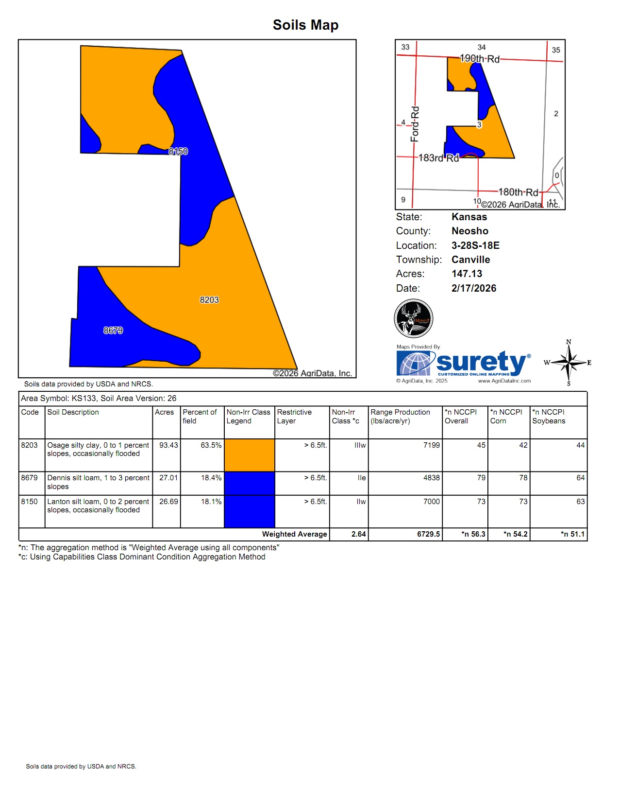 From an agricultural standpoint, the soils add even more value. The farm is primarily made up of Class III Osage silty clay and Class II Lanton silt loam, making it well-suited for hay production, grazing, or additional agricultural uses.
