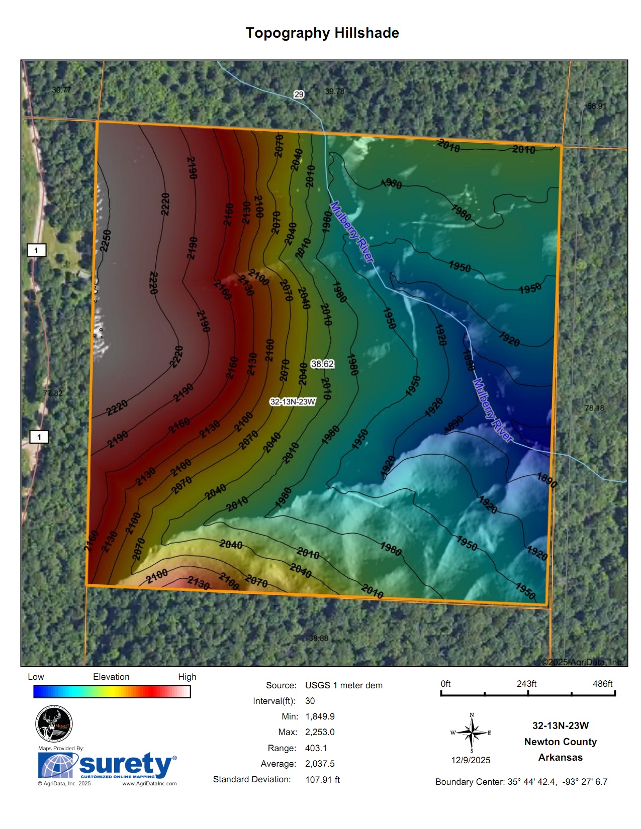 This stunning 40 +/- acre property is bordered by the national forest on two sides and features a small section of the Mulberry River meandering through it. Located less than a mile from paved roads, the county road access ensures convenience. Essential utilities, including rural water, electricity, and an existing septic system, simplify the process of establishing a home. From the cleared front area, you can catch glimpses of the expansive Ozark mountain views, which can be further enhanced with some clearing. The proximity to the Ozark National Forest offers exceptional hunting and abundant wildlife activity. A 690 square foot cabin is present on the land, providing the option to renovate or remove it entirely. The varied terrain supports wildlife movement to water and food sources, while the timbered areas reveal beautiful rock formations and small water features. This property strikes an ideal balance between seclusion and accessibility.Property Features