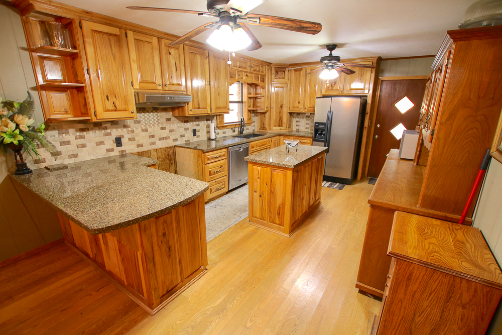 This charming 3 bed, 1 bath brick home is nestled on approximately 8 +/- acres with pavement frontage bordering the National Forest, providing the perfect backdrop for nature lovers. A cleared area is already designated for a shop building that would add a great space for hobbies and storage. The views from the home are nothing short of breathtaking, enhancing the overall appeal of the property. Essential utilities are already on site, including electric, rural water, septic, and fiber internet. There are additional build sites on the property that increase in elevation, adding even greater views. The home, designed for comfort and sophistication, offers 2 large bedrooms and 1 smaller bedroom. The kitchen features granite countertops, an island, and beautiful handcrafted cabinetry. The main living space has windows that look out over miles of the Ozark mountains, where the abundant wildlife in the area can be observed. Between the national forest boundary, proximity to many outdoor recreation attractions, pavement frontage, and room to expand, this property checks a lot of boxes!