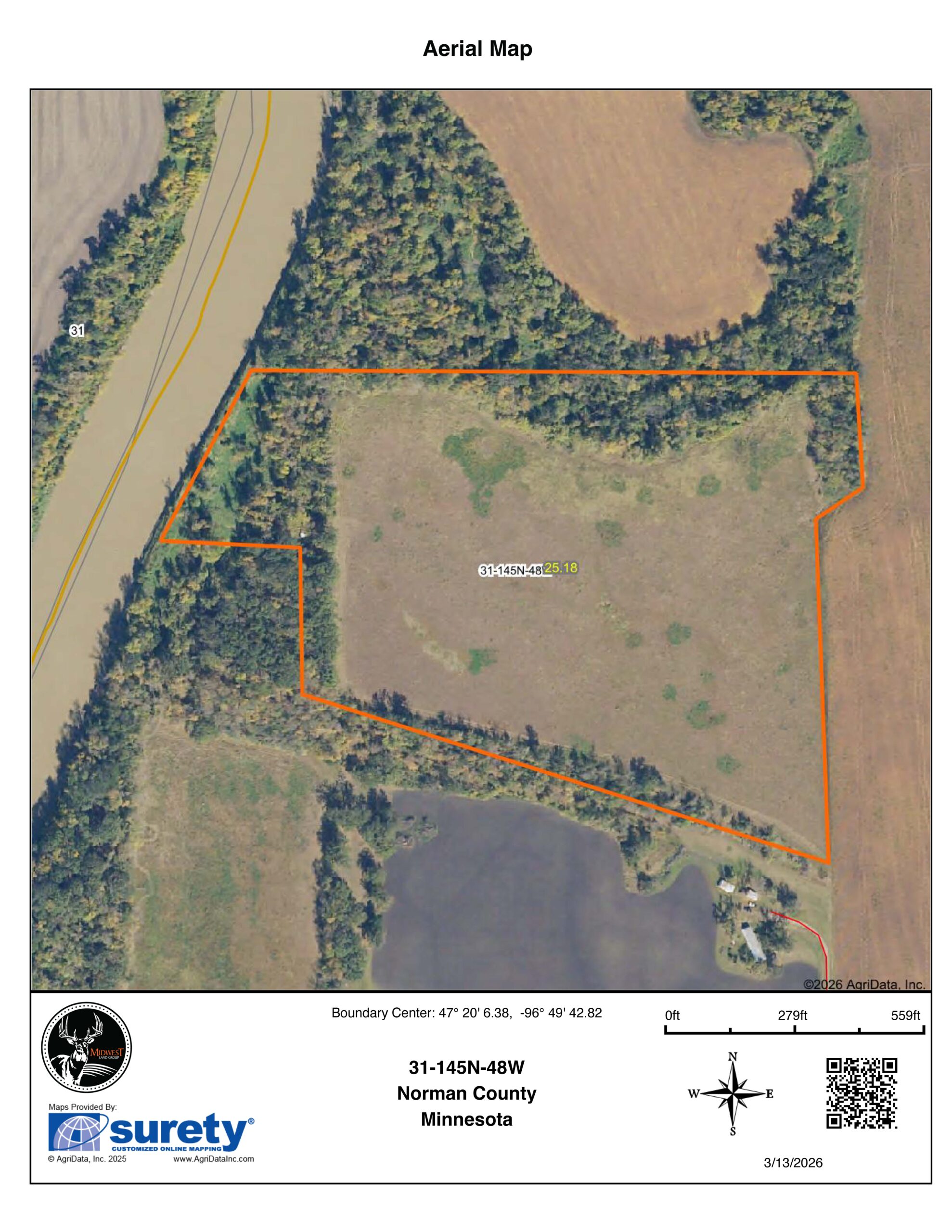 The opportunities are seemingly endless with this 25 +/- acre hunting property that extends far beyond just whitetail and upland potential. A sizable number of various waterfowl species follow the winding Red River Valley during migration periods, but the timber-covered shorelines provide adequate cover to grow large whitetail bucks, and the turkey and grouse habitat is abundant, as well.Easily accessible through a short 150-yard legally established easement from pavement, the property features existing income-generating CRP 18 +/- acres, with room for foot-plot implementation to attract and hold deer and pheasants on the property. Whilst hunting opportunities with this tract are certainly highly appealing, the fishing in the Red River is simply world-class. Widely recognized as the top channel catfishery on the planet, there is a historically productive catfish hole that abuts the western property boundary. Don’t overlook the walleye fishing in the river either; it’s also fantastic. The river and property edge are easily accessible via the Halstad Public Boat Launch just west of downtown Halstad.