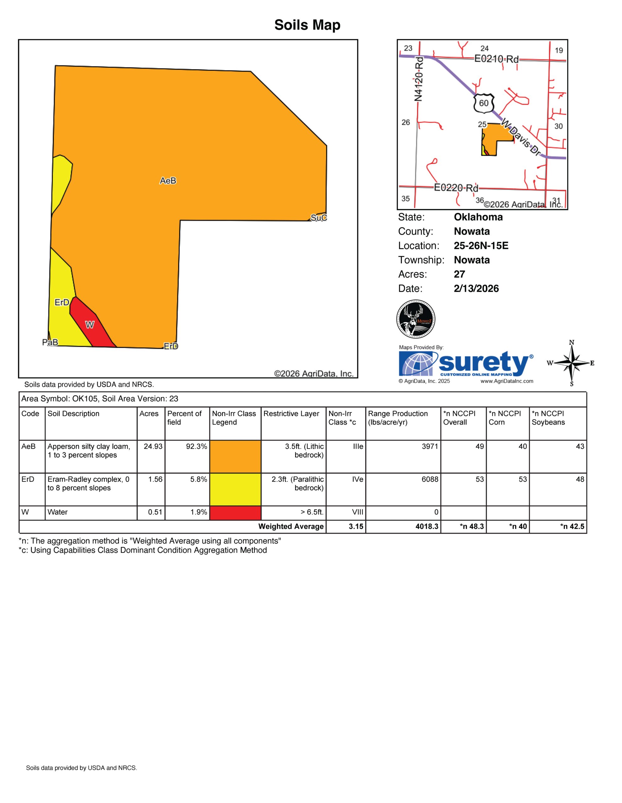 • Hay field has historically produced around 120-150 4’x5’ hay bales