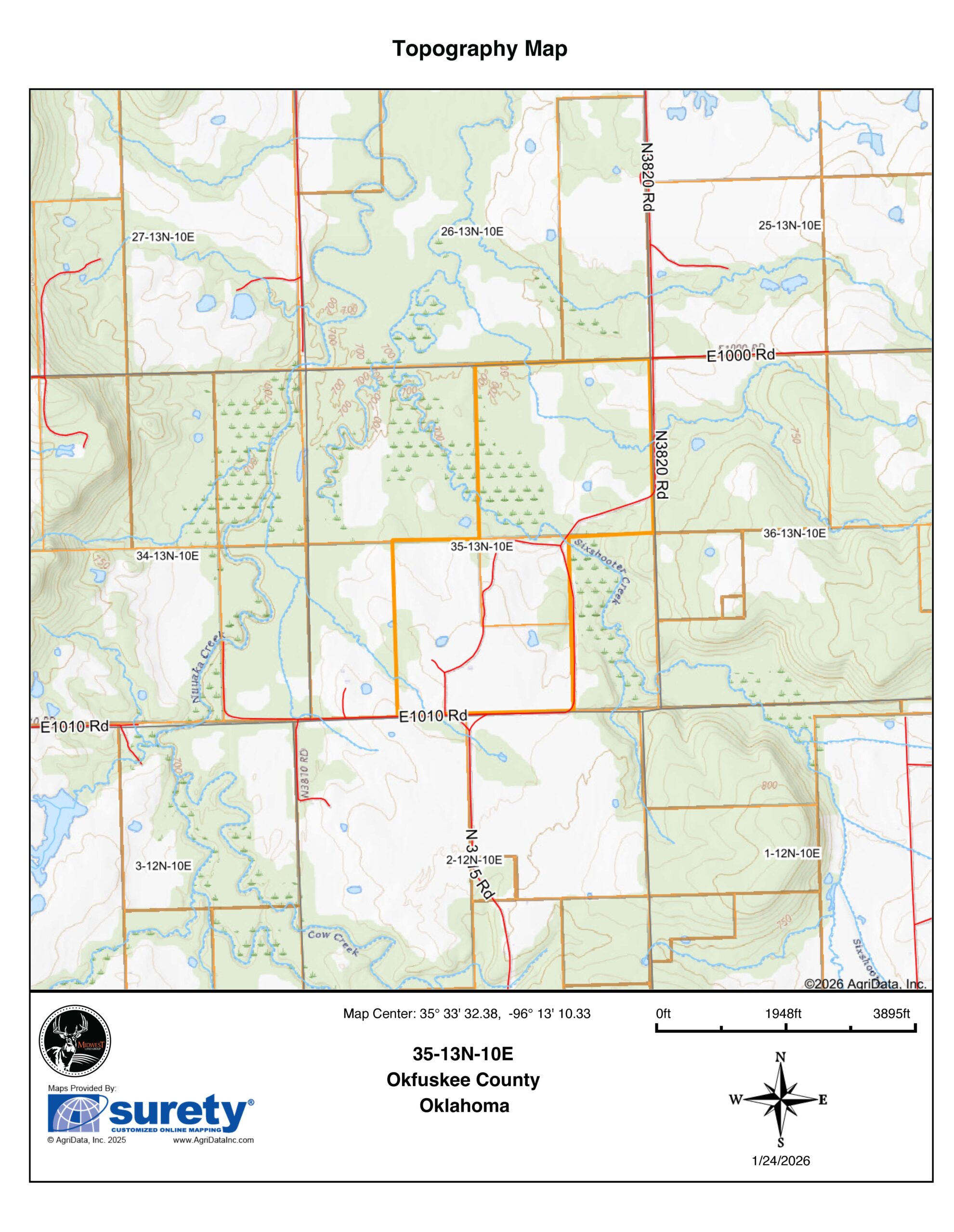 Located just over an hour from downtown Tulsa, the formerly known Six Shooter Ranch presents an exceptional opportunity for anyone looking to shape a property to fit their vision. Pecan trees are scattered throughout the property, providing a reliable food source for whitetail deer and turkey. Six Shooter Creek runs through the property, dividing it between the north and south sides and offering consistent water and quality habitat for wildlife.