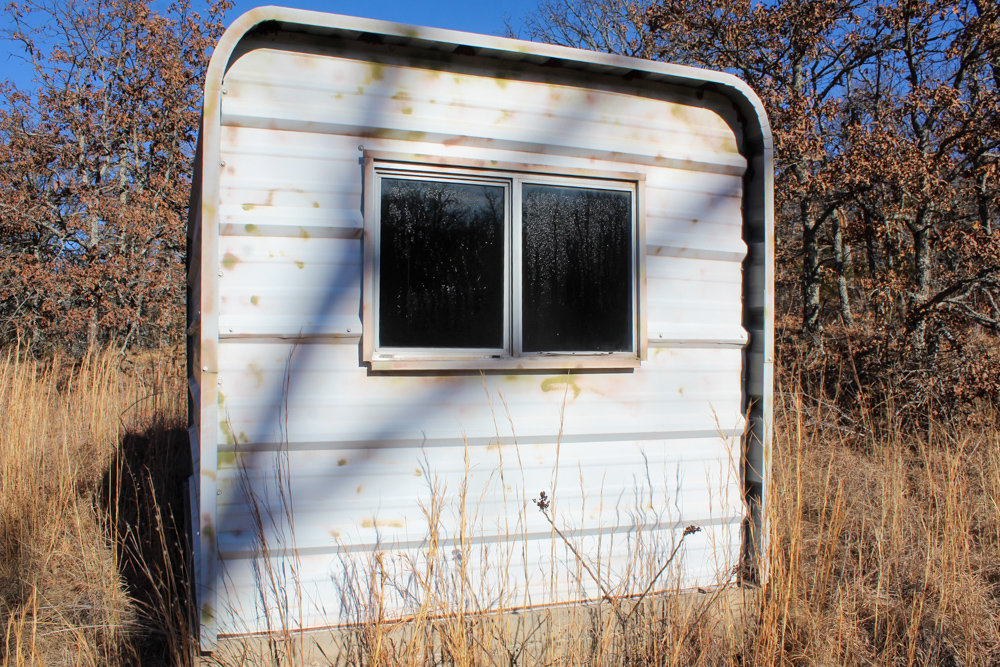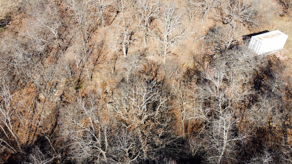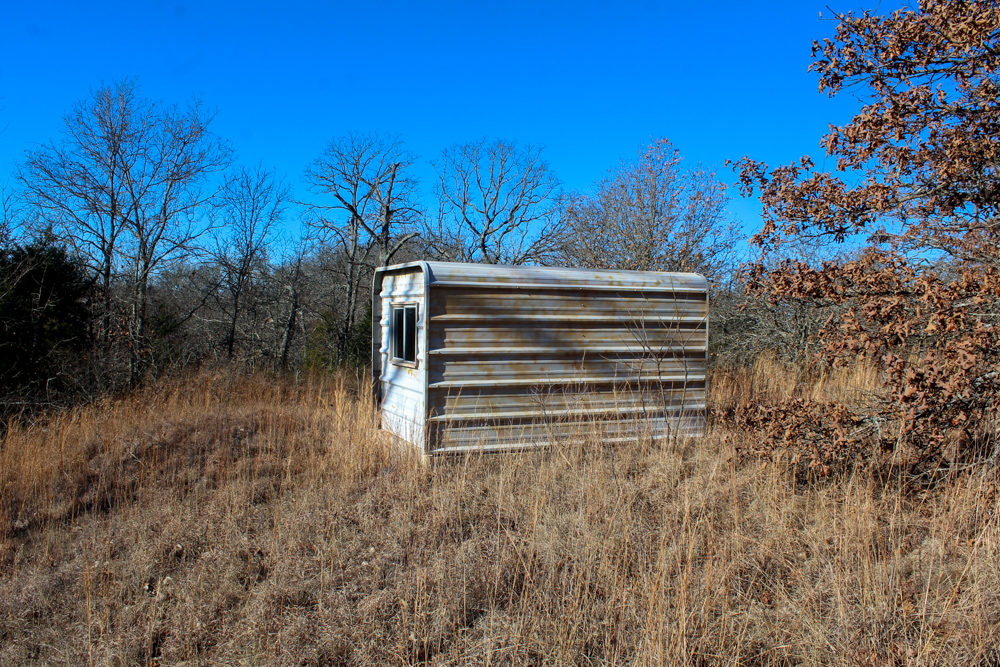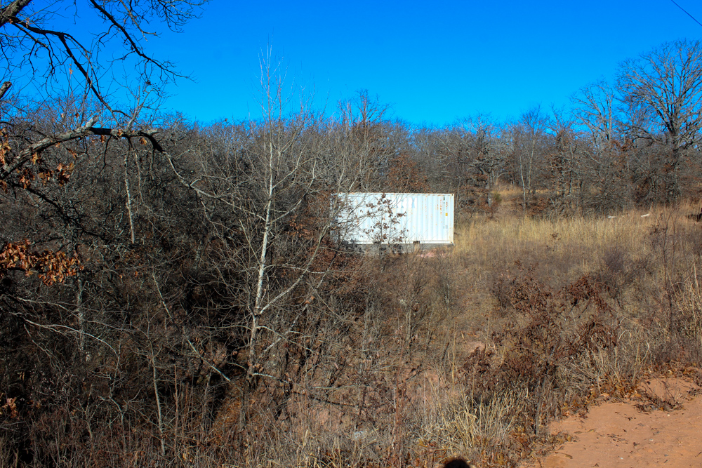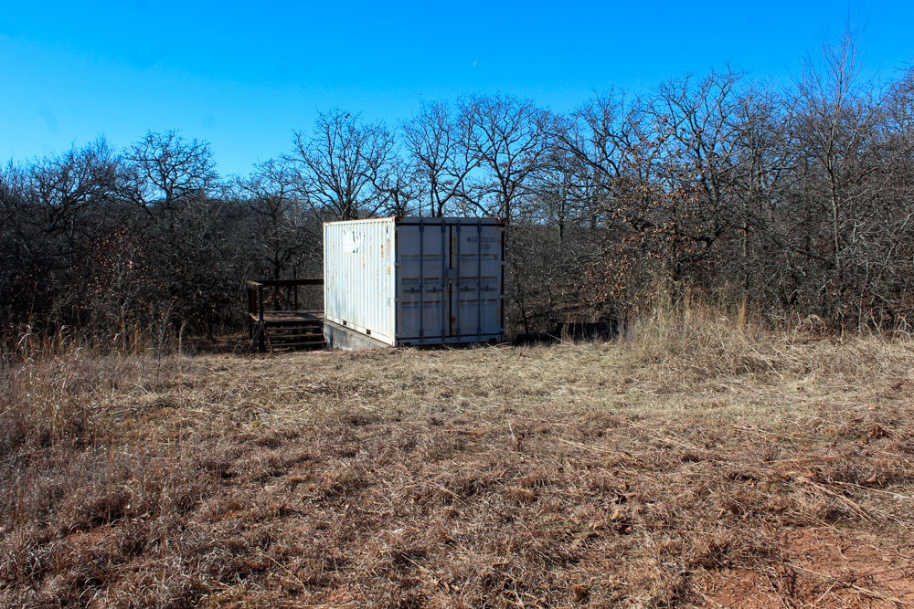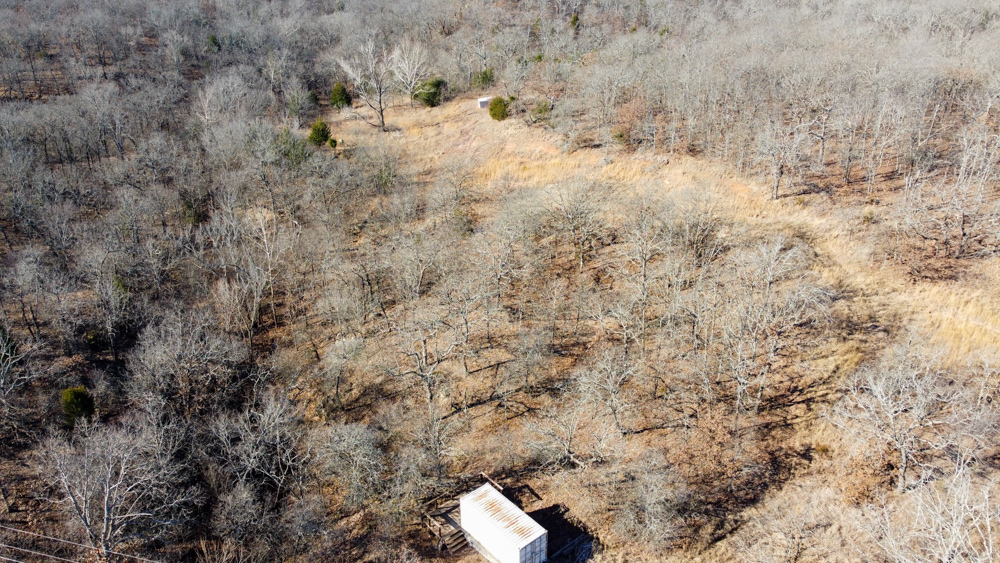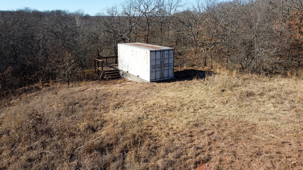 The land features rolling terrain accented by striking rock outcroppings and a scenic wet-weather creek that winds through the property, adding both charm and wildlife appeal. A spray-foam–insulated 20-foot shipping container has been thoughtfully converted into a functional retreat, complete with a sliding door on one end, a large window on the other, and a deck extending off the back. It sits securely on a concrete stem wall and is bolted in place, offering a solid start for a hunting cabin, weekend getaway, or storage setup.