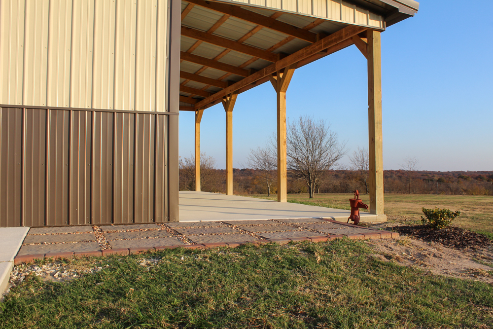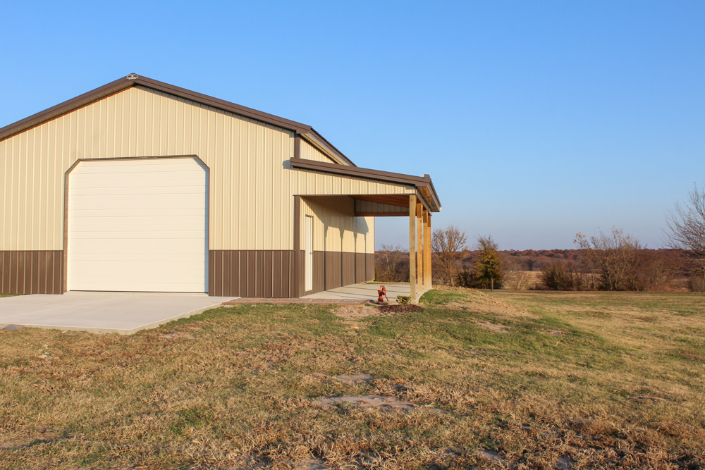 • Two overhead doors plus a covered porch area with a concrete floor