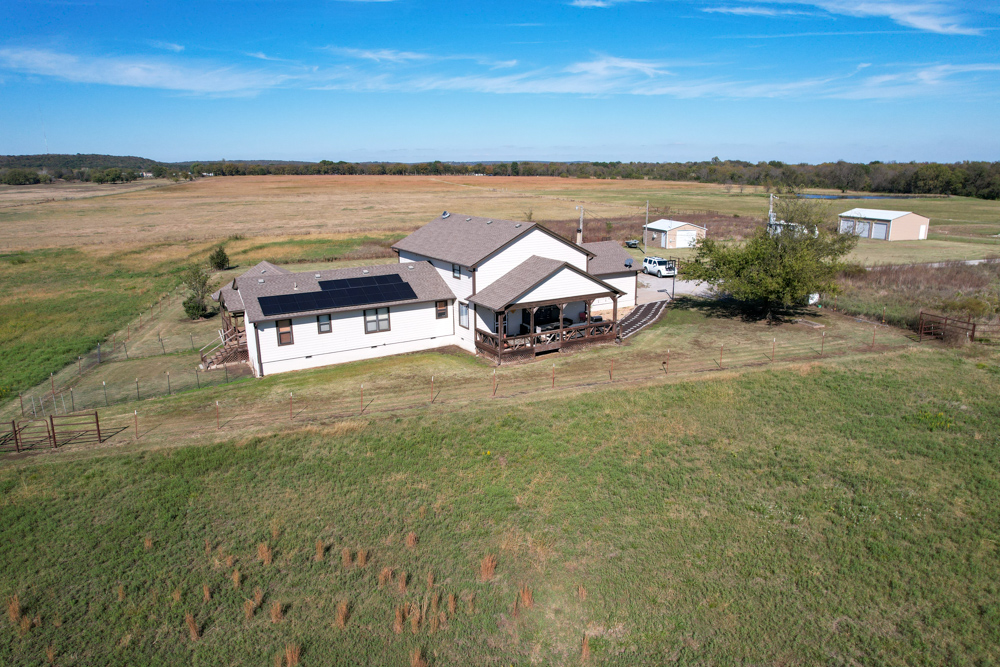 For those needing workspace or extra storage, there are two shops on-site: a 20'x24' shop with electric (on a separate meter from the home), wood-burning heat, and an 8’T x 10’W door, plus a 36'x24' shop with three 8’T x 9’W doors and a 36" walkthrough door. Conveniently located just 10 minutes from Beggs, 25 minutes from Okmulgee, 40 minutes from Tulsa, and less than an hour from Heyburn Lake, this property offers the perfect balance of rural tranquility and easy access to nearby towns and recreation.