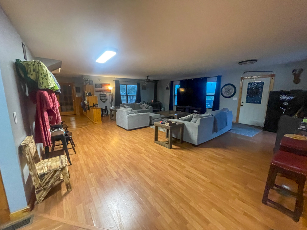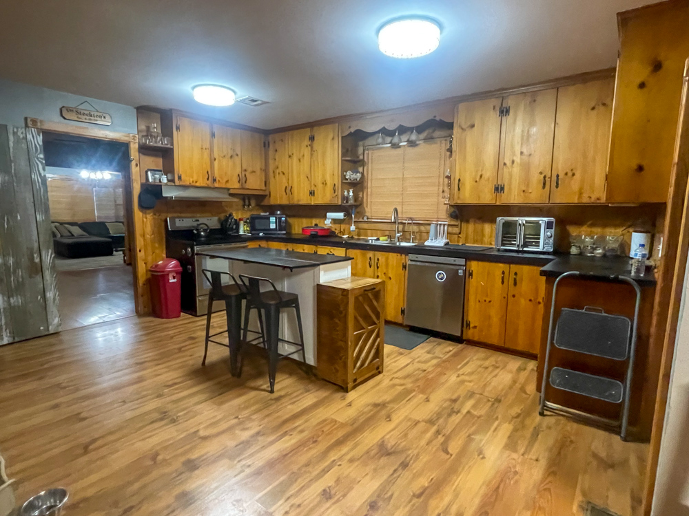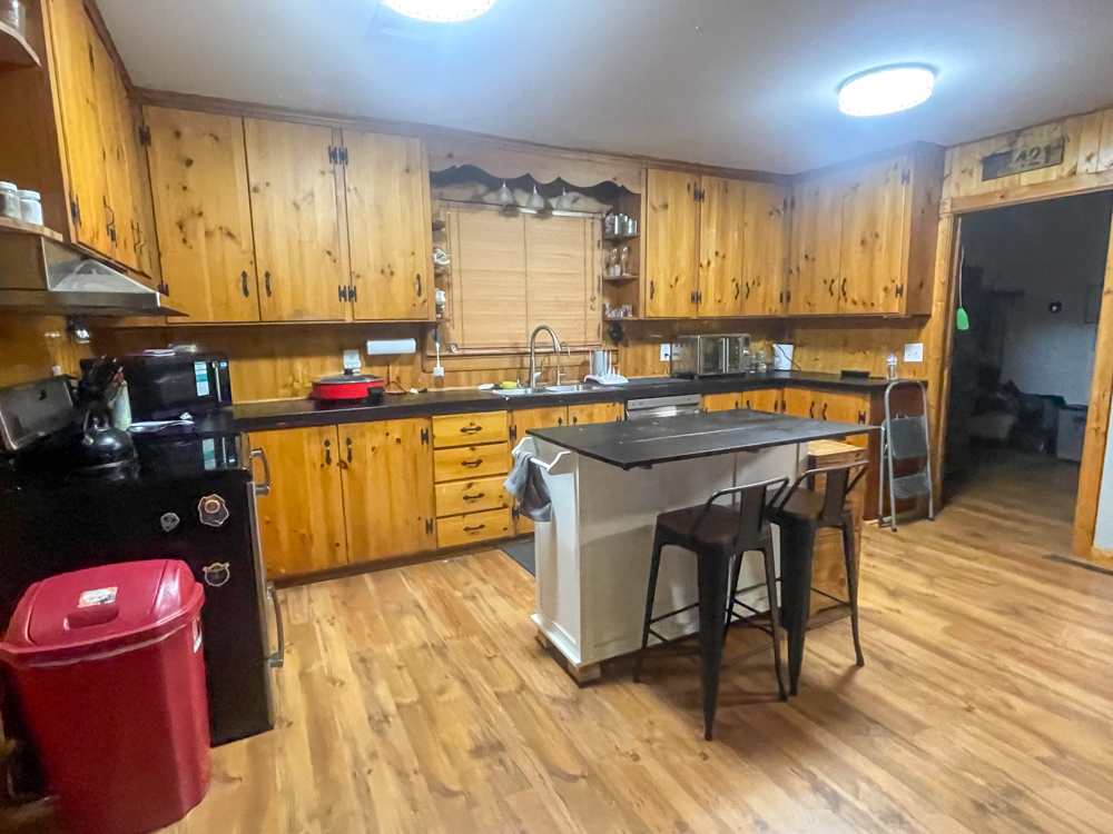 • 20'x24' shop with electric on separate meter, wood-burning heat, and 8’T x 10’W door