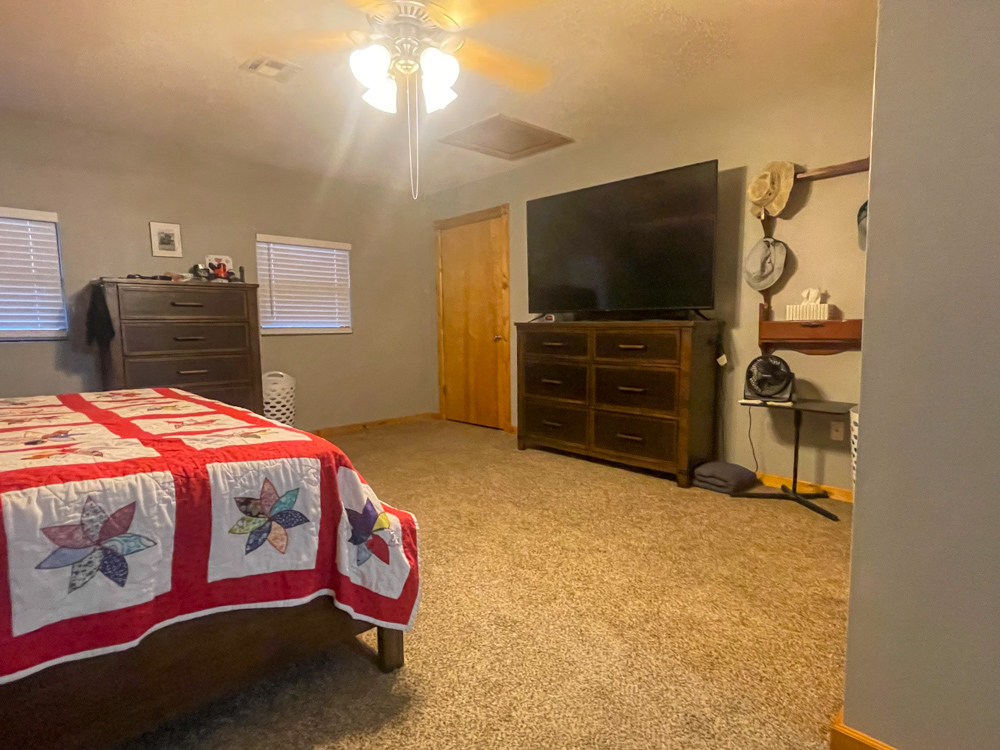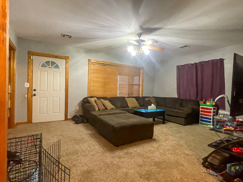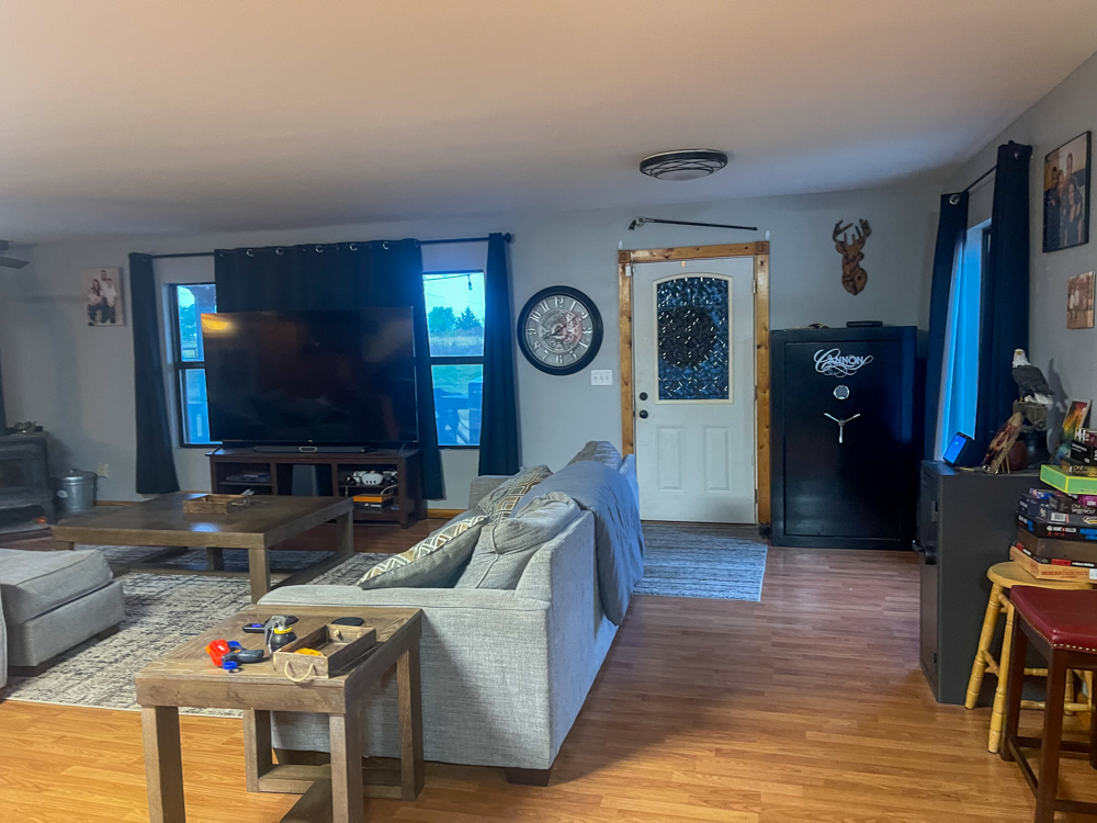 Welcome to this inviting rural homestead offering 3,244 +/- square feet of living space (per courthouse records). This well-designed home features 3 bedrooms, 2.5 baths, a loft flex room, two spacious living areas, and a two-car garage. The open kitchen is the heart of the home, complete with an island, an induction stove, a generous pantry, and beautiful and ample knotty wood cabinetry. The primary suite includes his & hers closets, while the lower-level bedrooms share a convenient Jack & Jill bathroom. Modern upgrades, such as owned solar panels, smart thermostats, and a water softener system, add both comfort and efficiency.
