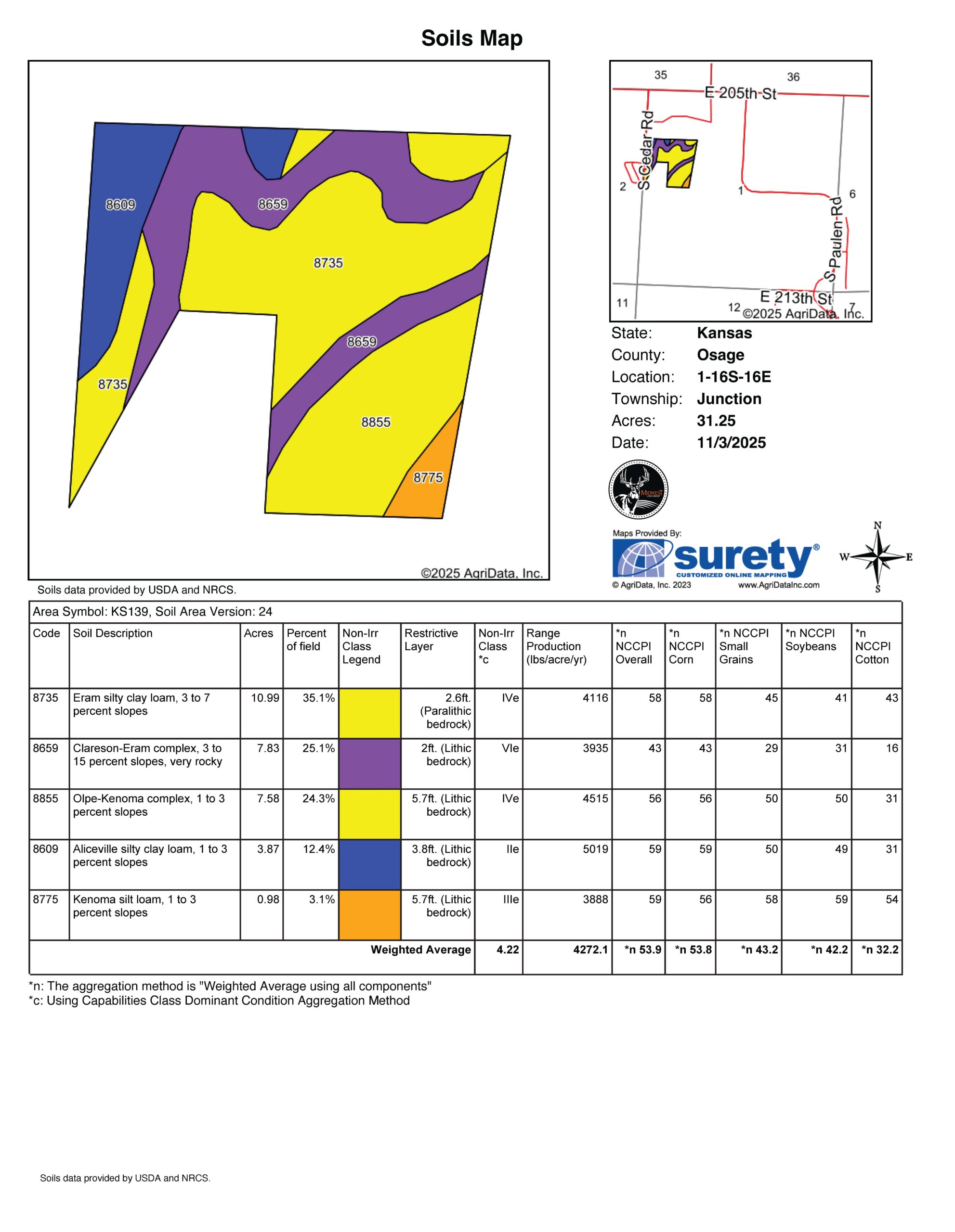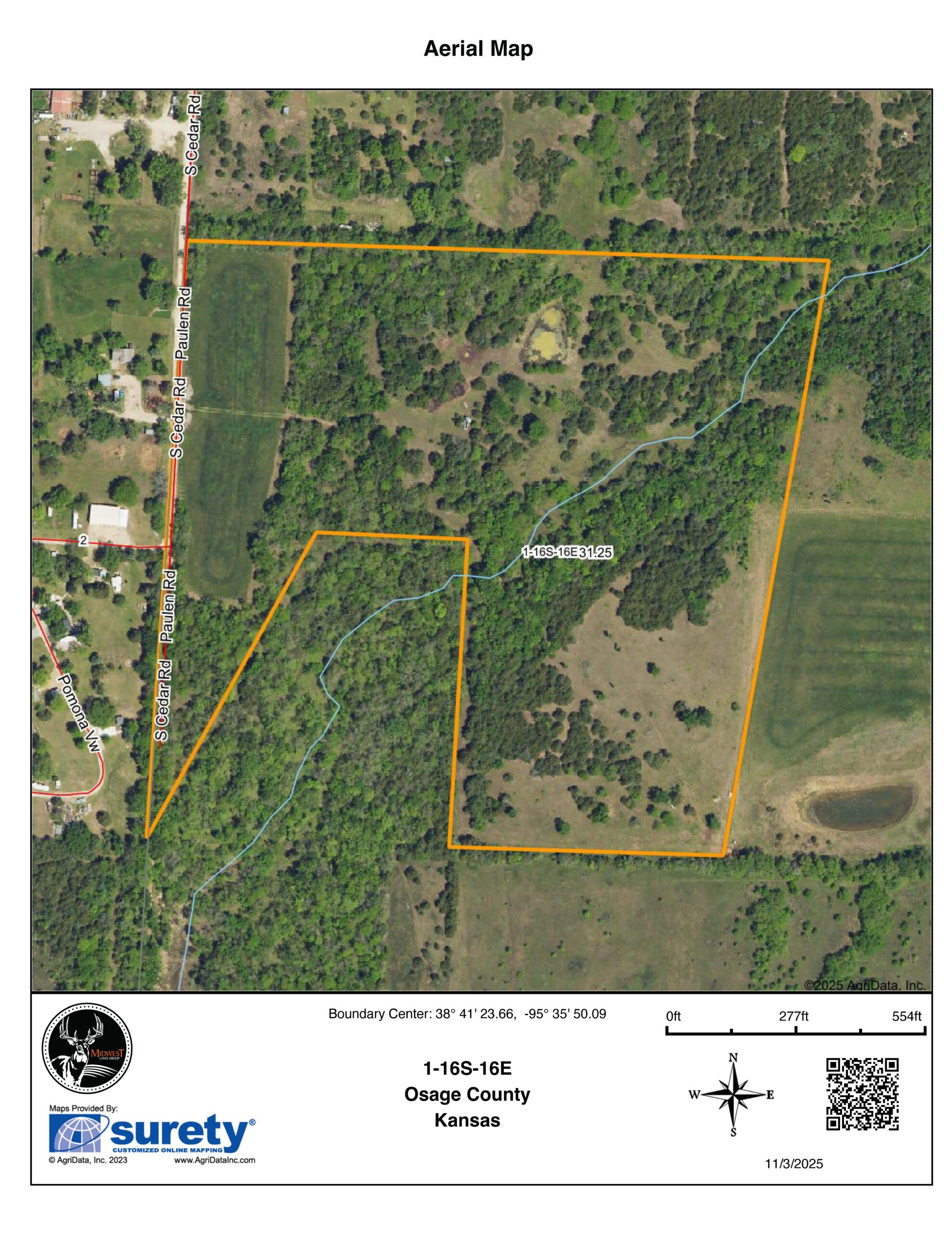 This 31 +/- acre property in eastern Osage County sits just north of Pomona Lake and offers exceptional seclusion with direct access to the Pomona Lake Wildlife Area. The land features a blend of warm- and cool-season grass hay meadows along with extensive timber cover, creating an ideal mix of habitat and usability.