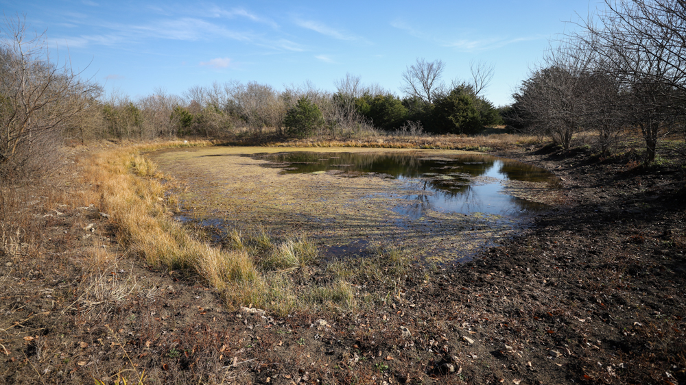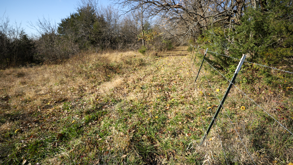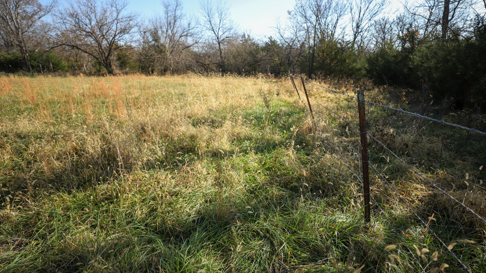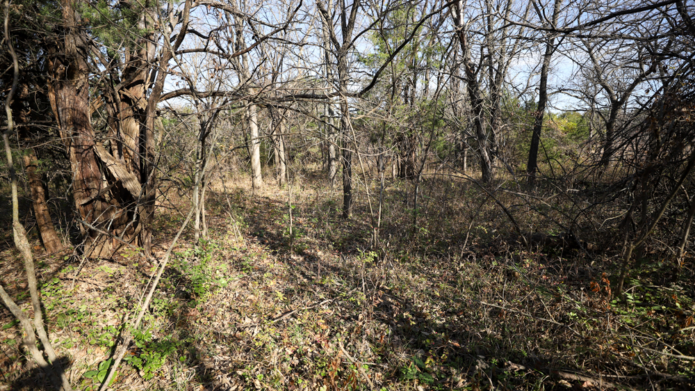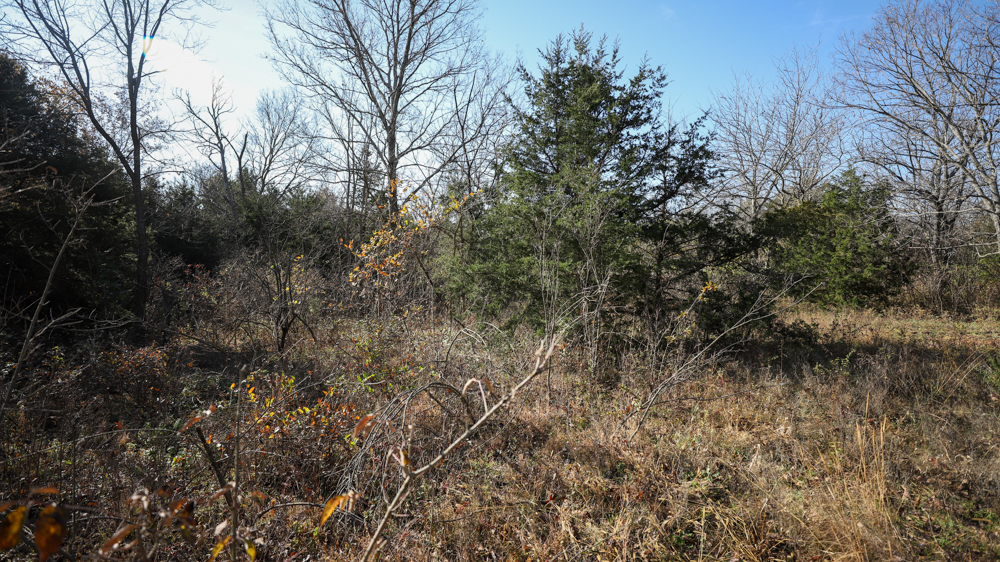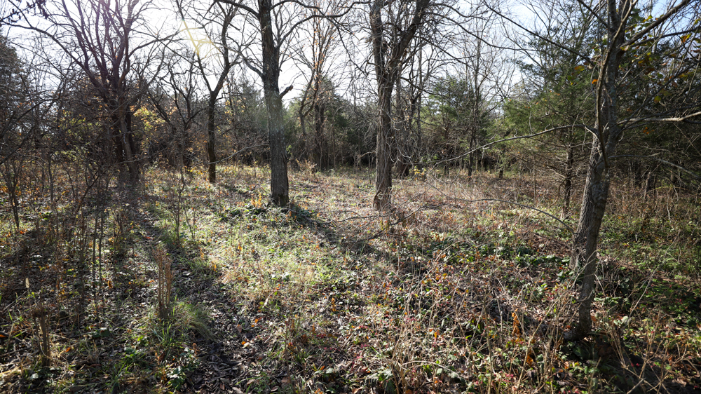 The property is heavily wooded with dense thickets composed primarily of oak, hedges, and eastern red cedar trees. A well-established trail system runs throughout, providing easy access for hunting, hiking, or ATV use. Additional features include a watering pond and excellent barbed wire fencing.