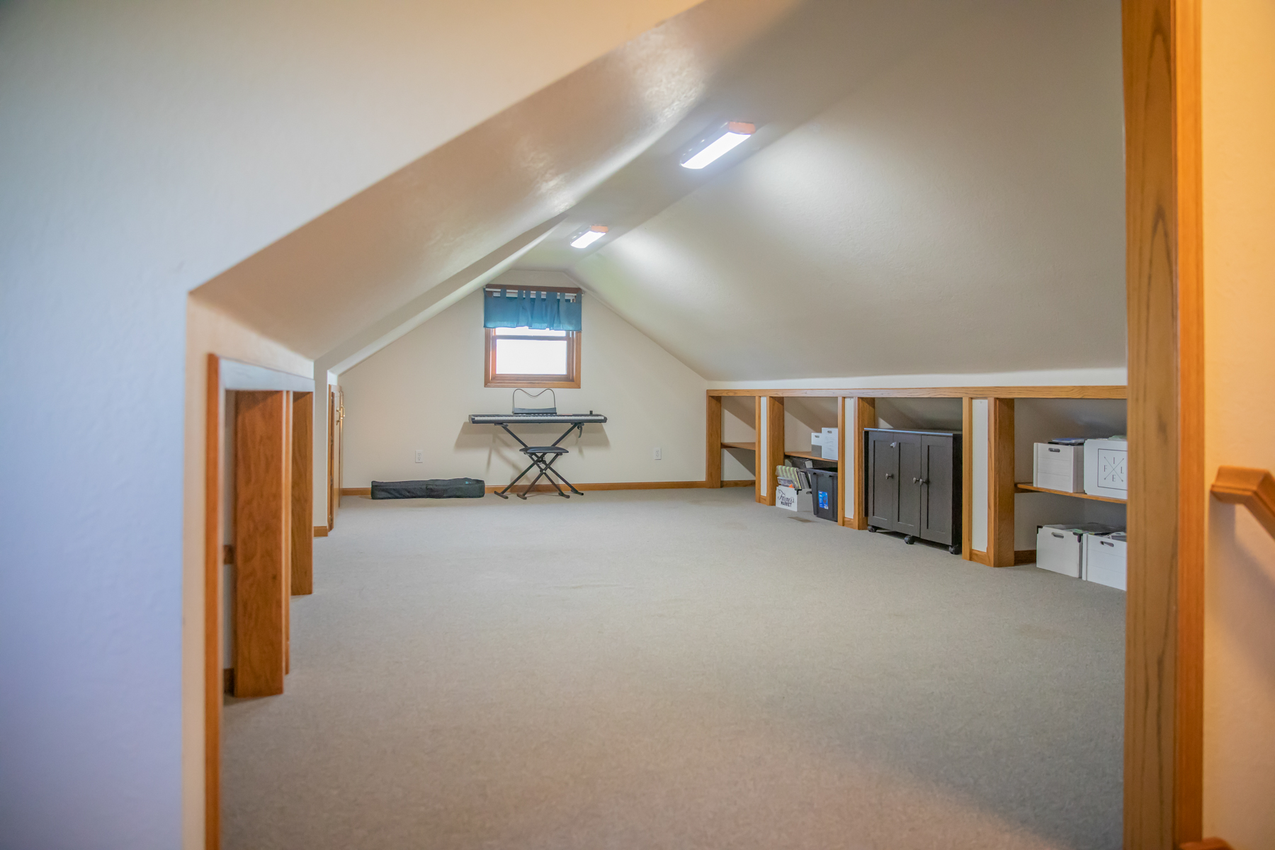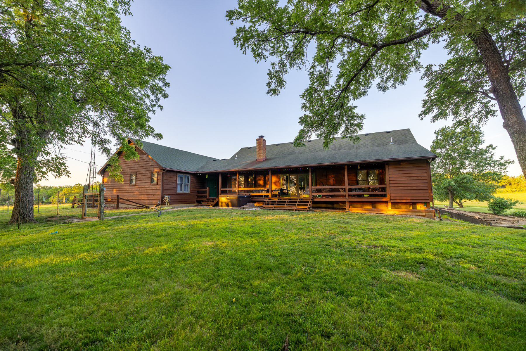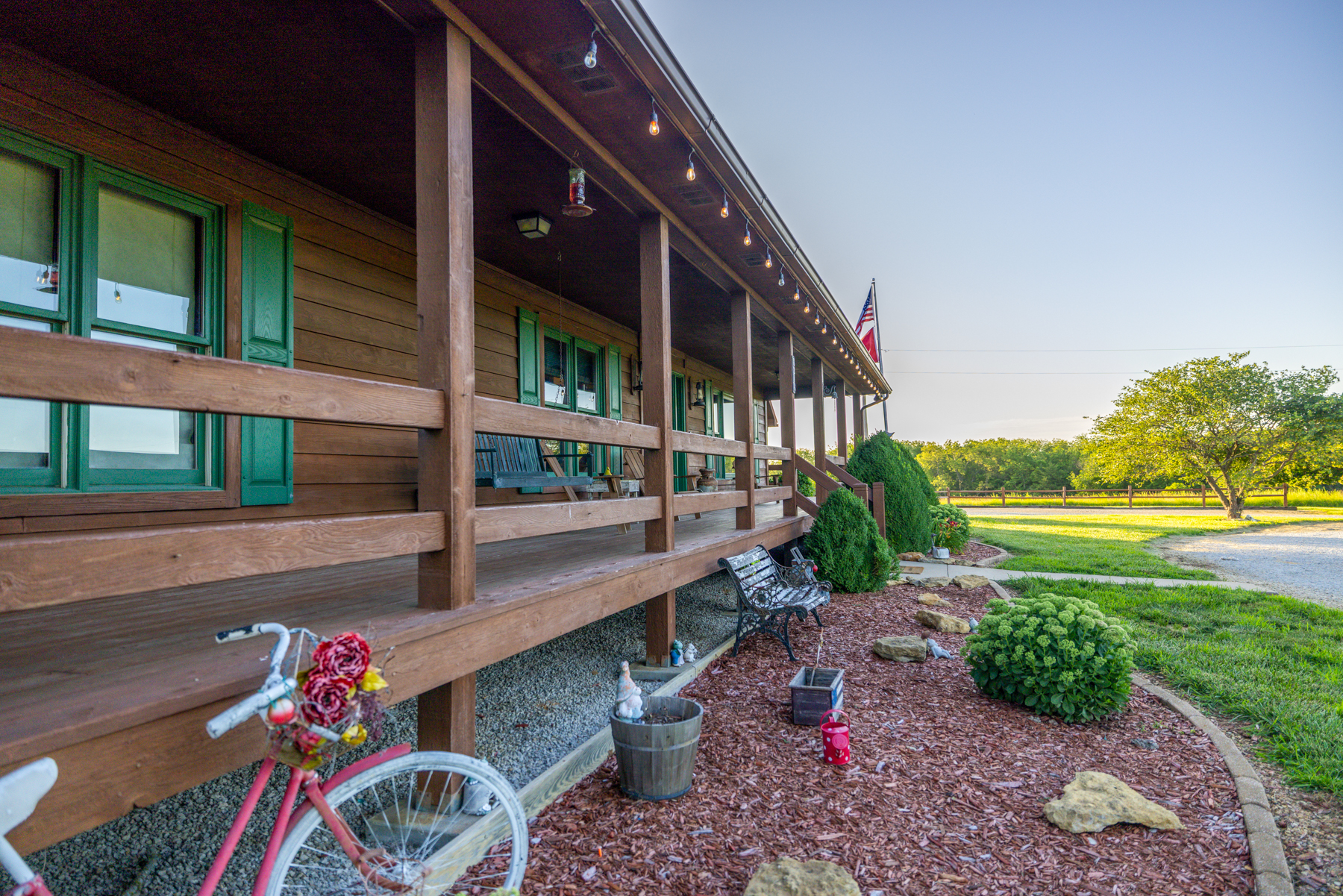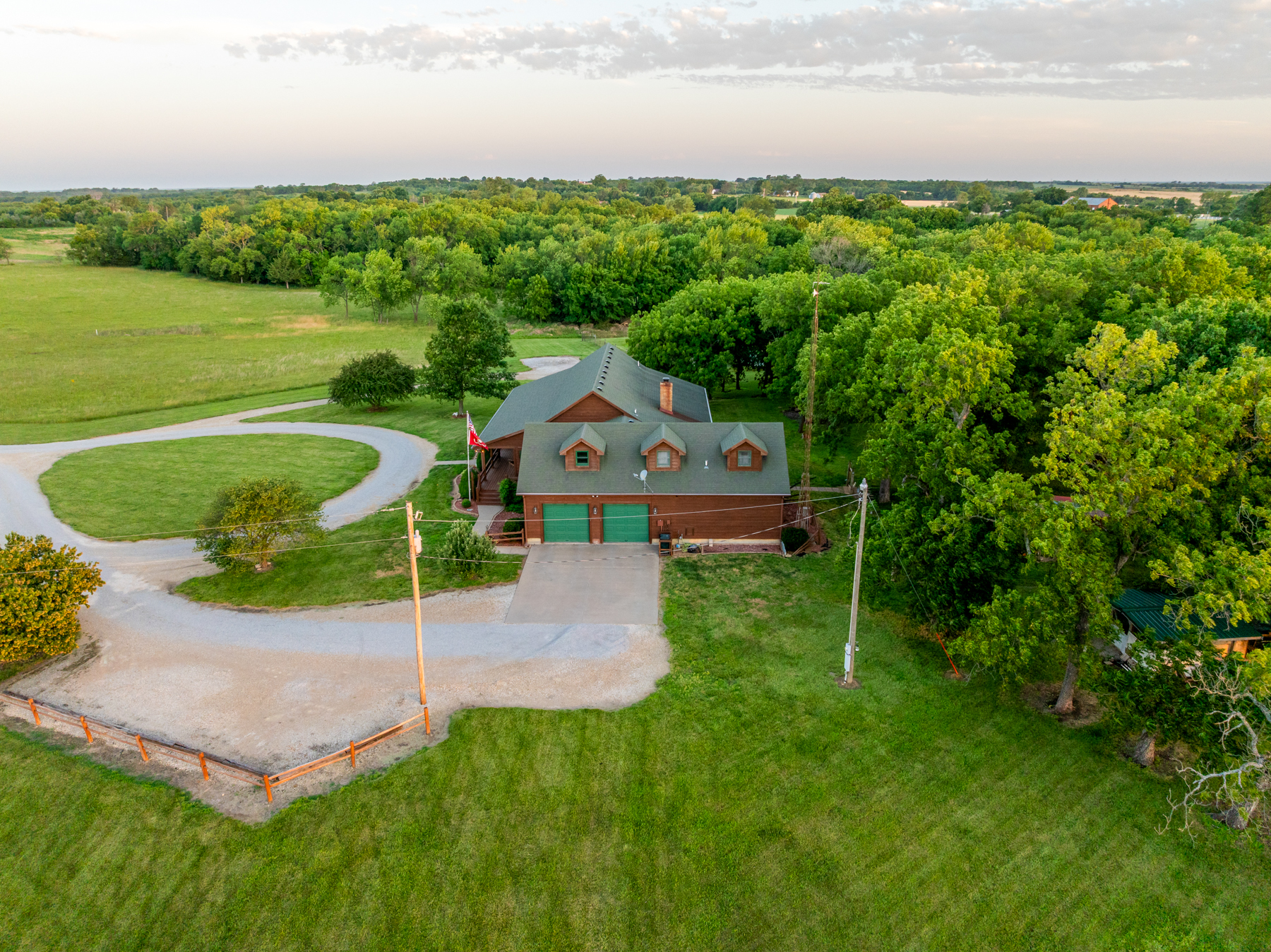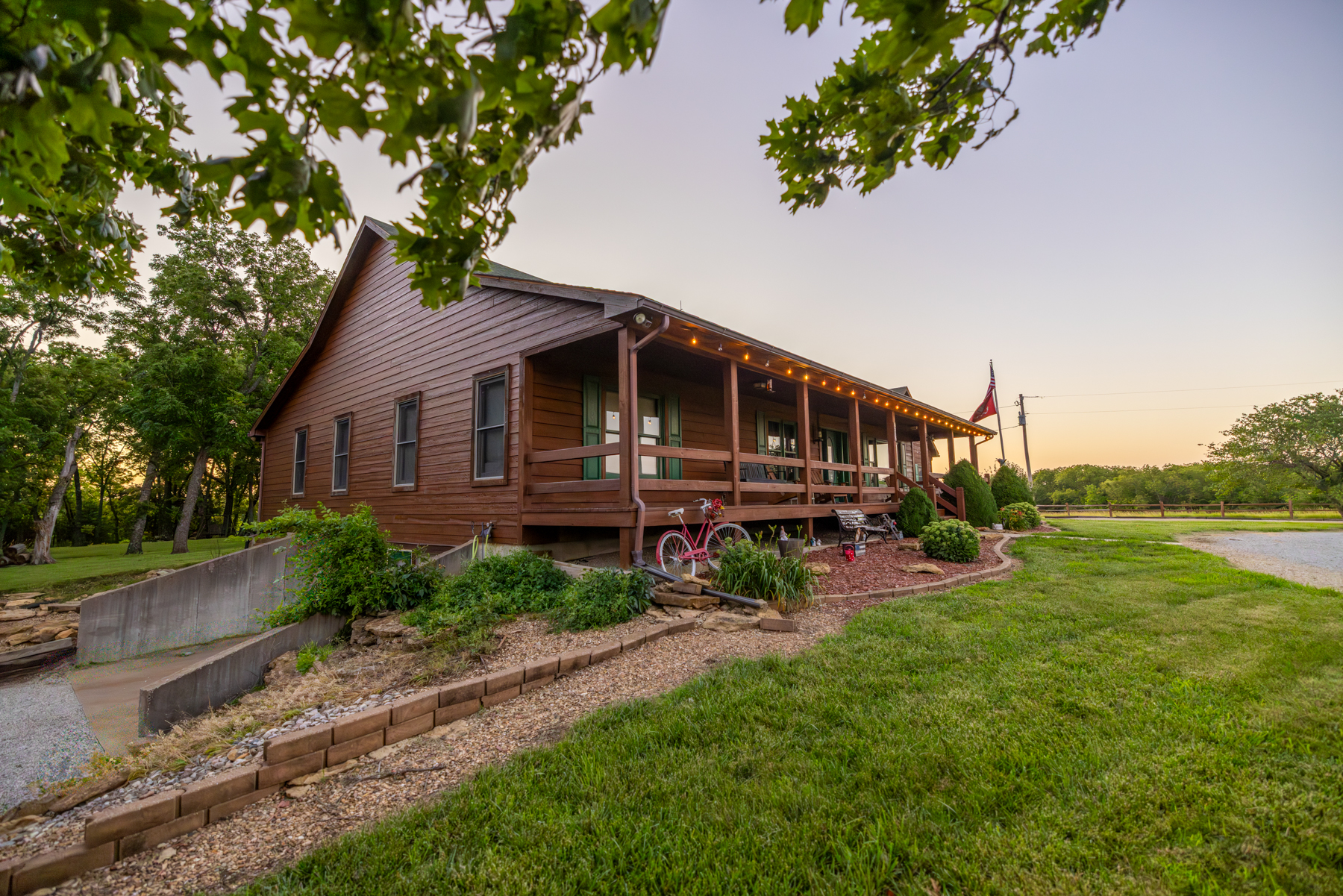 Pulling down the dead-end West 273rd Street, appreciate the residence placement as it is set far to the north off of the county roadway and wrapped with a slice of heaven on earth. The well-maintained driveway is lined with mature Redbud trees and lies out in an eased circle driveway in front of the residence, with a split off which leads to the east garage and west garage. One step on the front covered deck, and you may never want to leave, as the views are the icing on the cake. Inside, take note of the attention to detail throughout. The study holds custom-built bookshelves with incredible natural light. There is an office area to the west of the library. Continue on to the kitchen, which is complete with custom solid Oak cabinetry with built-in double oven, microwave cabinet, cook top, dishwasher, and refrigerator. The majority of all appliances have recently been replaced. The kitchen is open to the dining area and living room with a 1/2 bathroom and laundry room just off. There is a wood-burning built-in stove with a blower that provides not only ambience to a winter’s day, but endless supplemental heat. The double sliding doors lead you out onto the back covered deck area. The master bedroom boasts ideal space with his and her closets with built-ins and a double vanity. There is a walk door between the master bedroom and kitchen that leads out to the back covered deck. There are 2 additional bedrooms on the west side of the home with spacious closets with built-ins. The main full bathroom is located between the bedrooms. The upstairs staircase is located just off the kitchen and offers incredible space that could be used for 2 additional bedrooms, a play/rec room, or an office.