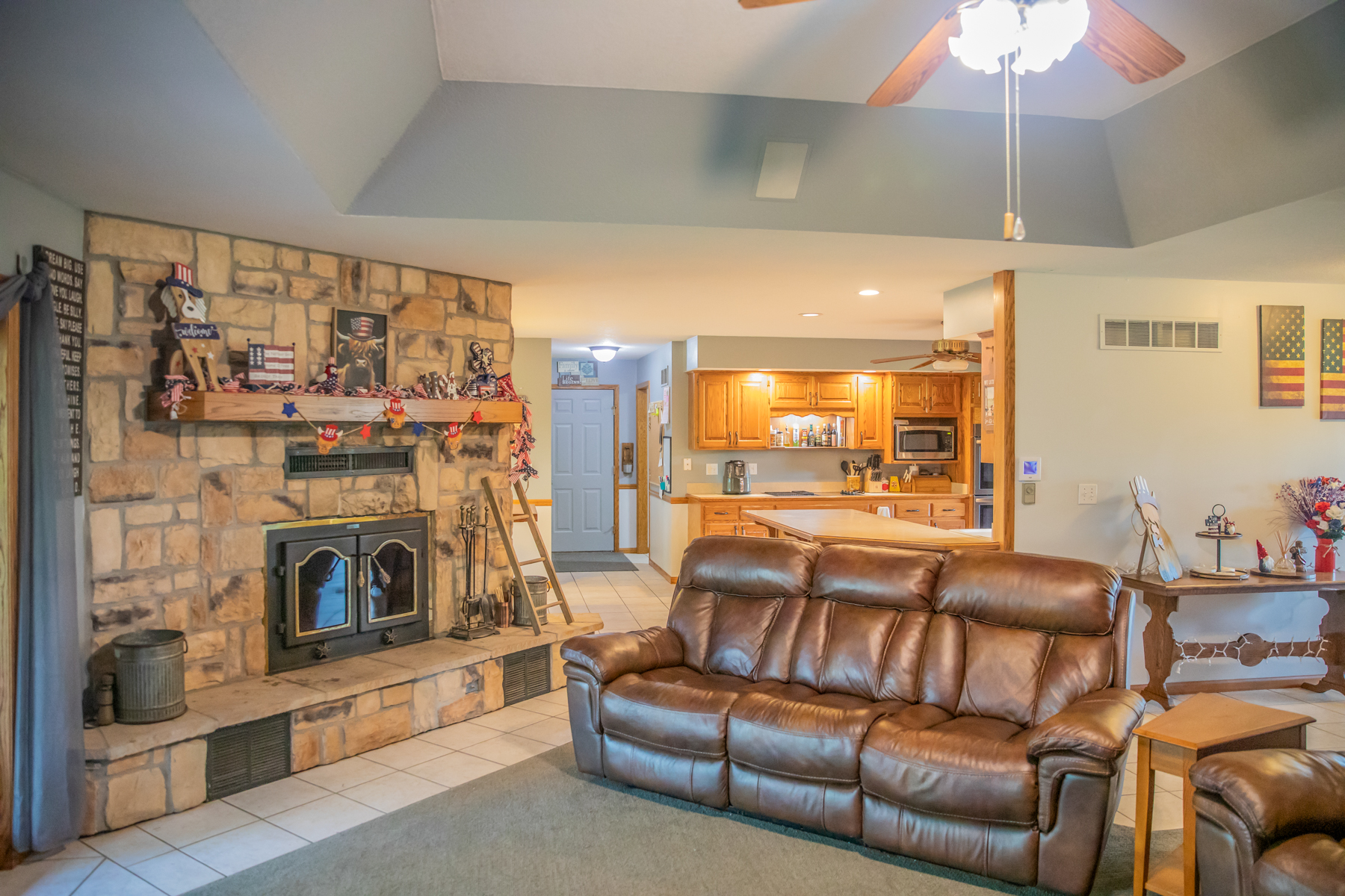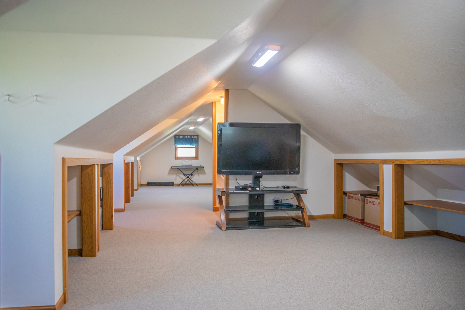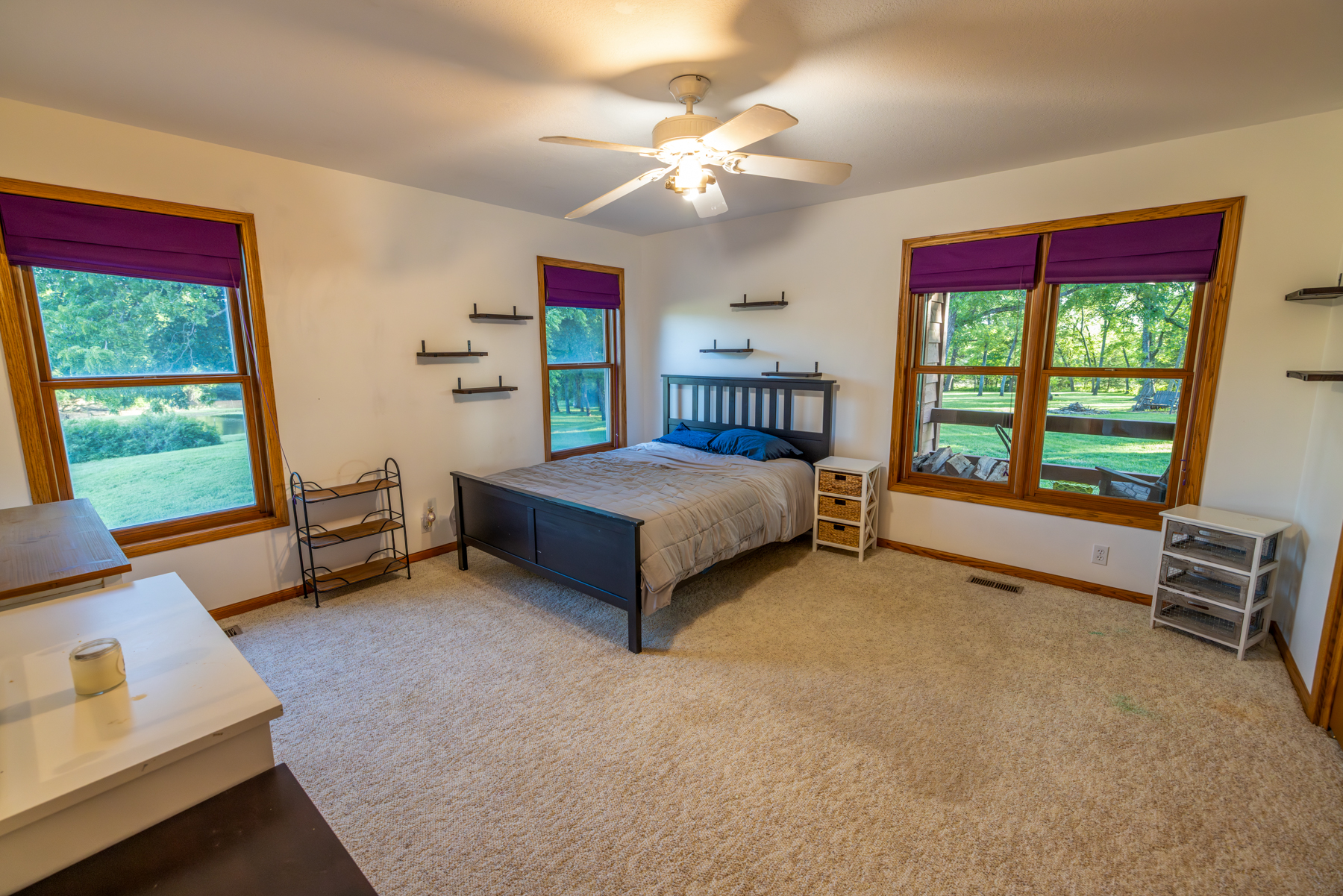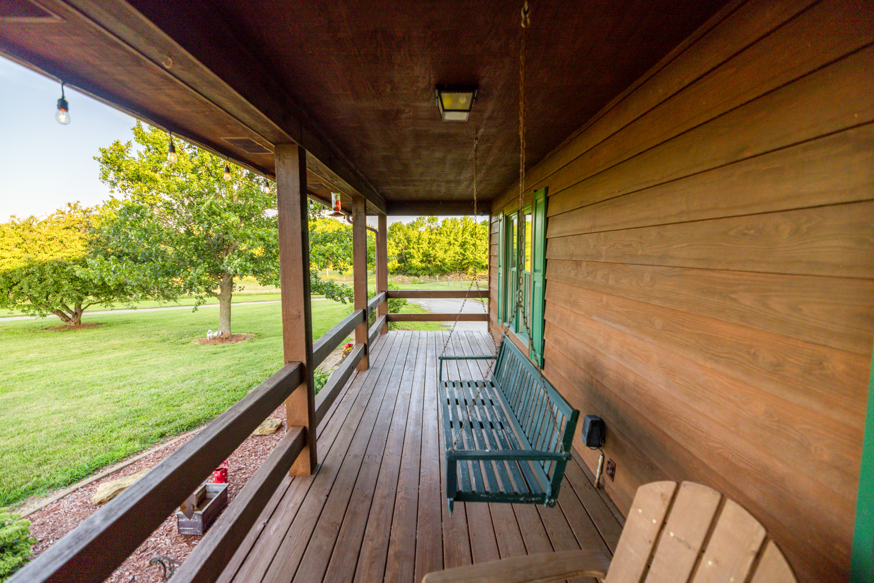 Pulling down the dead-end West 273rd Street, appreciate the residence placement as it is set far to the north off of the county roadway and wrapped with a slice of heaven on earth. The well-maintained driveway is lined with mature Redbud trees and lies out in an eased circle driveway in front of the residence, with a split off which leads to the east garage and west garage. One step on the front covered deck, and you may never want to leave, as the views are the icing on the cake. Inside, take note of the attention to detail throughout. The study holds custom-built bookshelves with incredible natural light. There is an office area to the west of the library. Continue on to the kitchen, which is complete with custom solid Oak cabinetry with built-in double oven, microwave cabinet, cook top, dishwasher, and refrigerator. The majority of all appliances have recently been replaced. The kitchen is open to the dining area and living room with a 1/2 bathroom and laundry room just off. There is a wood-burning built-in stove with a blower that provides not only ambience to a winter’s day, but endless supplemental heat. The double sliding doors lead you out onto the back covered deck area. The master bedroom boasts ideal space with his and her closets with built-ins and a double vanity. There is a walk door between the master bedroom and kitchen that leads out to the back covered deck. There are 2 additional bedrooms on the west side of the home with spacious closets with built-ins. The main full bathroom is located between the bedrooms. The upstairs staircase is located just off the kitchen and offers incredible space that could be used for 2 additional bedrooms, a play/rec room, or an office.