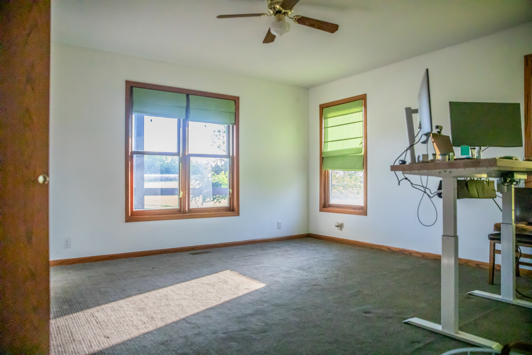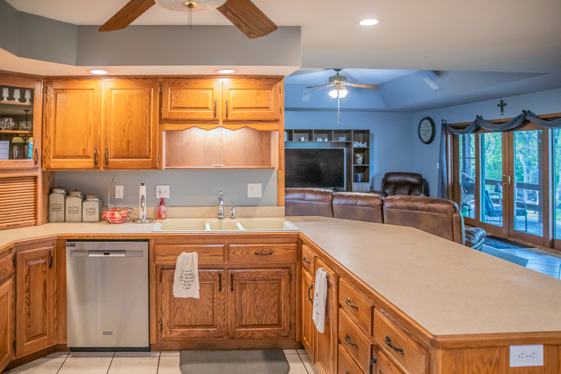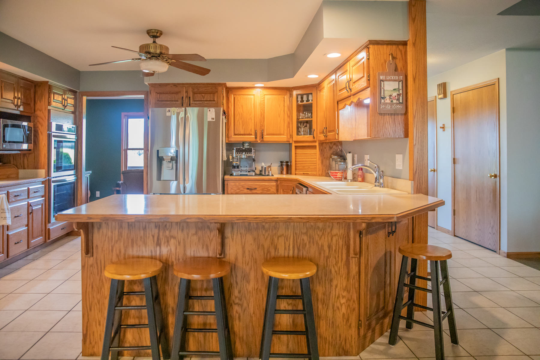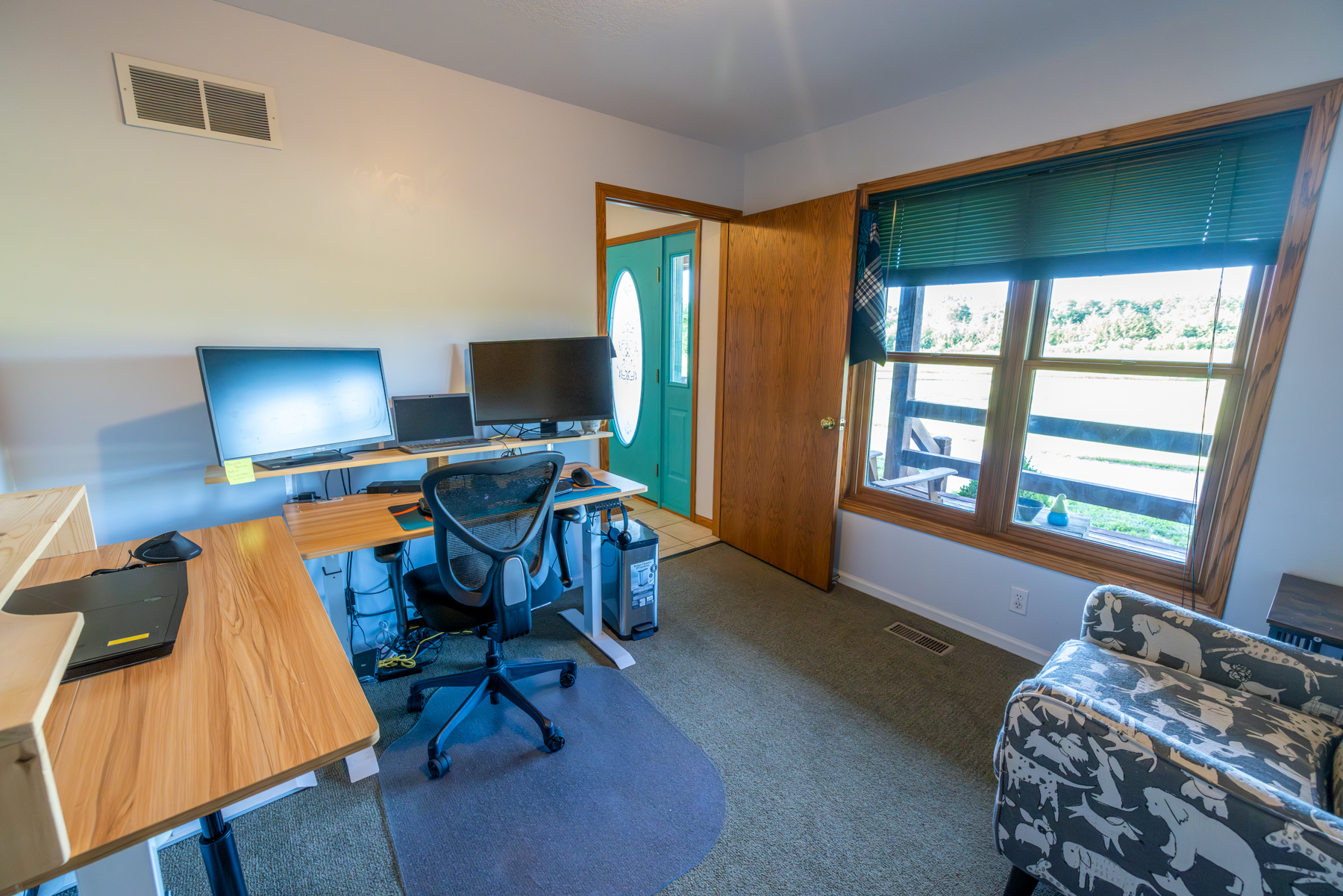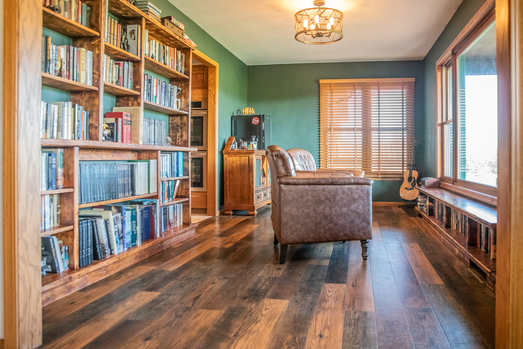 Pulling down the dead-end West 273rd Street, appreciate the residence placement as it is set far to the north off of the county roadway and wrapped with a slice of heaven on earth. The well-maintained driveway is lined with mature Redbud trees and lies out in an eased circle driveway in front of the residence, with a split off which leads to the east garage and west garage. One step on the front covered deck, and you may never want to leave, as the views are the icing on the cake. Inside, take note of the attention to detail throughout. The study holds custom-built bookshelves with incredible natural light. There is an office area to the west of the library. Continue on to the kitchen, which is complete with custom solid Oak cabinetry with built-in double oven, microwave cabinet, cook top, dishwasher, and refrigerator. The majority of all appliances have recently been replaced. The kitchen is open to the dining area and living room with a 1/2 bathroom and laundry room just off. There is a wood-burning built-in stove with a blower that provides not only ambience to a winter’s day, but endless supplemental heat. The double sliding doors lead you out onto the back covered deck area. The master bedroom boasts ideal space with his and her closets with built-ins and a double vanity. There is a walk door between the master bedroom and kitchen that leads out to the back covered deck. There are 2 additional bedrooms on the west side of the home with spacious closets with built-ins. The main full bathroom is located between the bedrooms. The upstairs staircase is located just off the kitchen and offers incredible space that could be used for 2 additional bedrooms, a play/rec room, or an office.