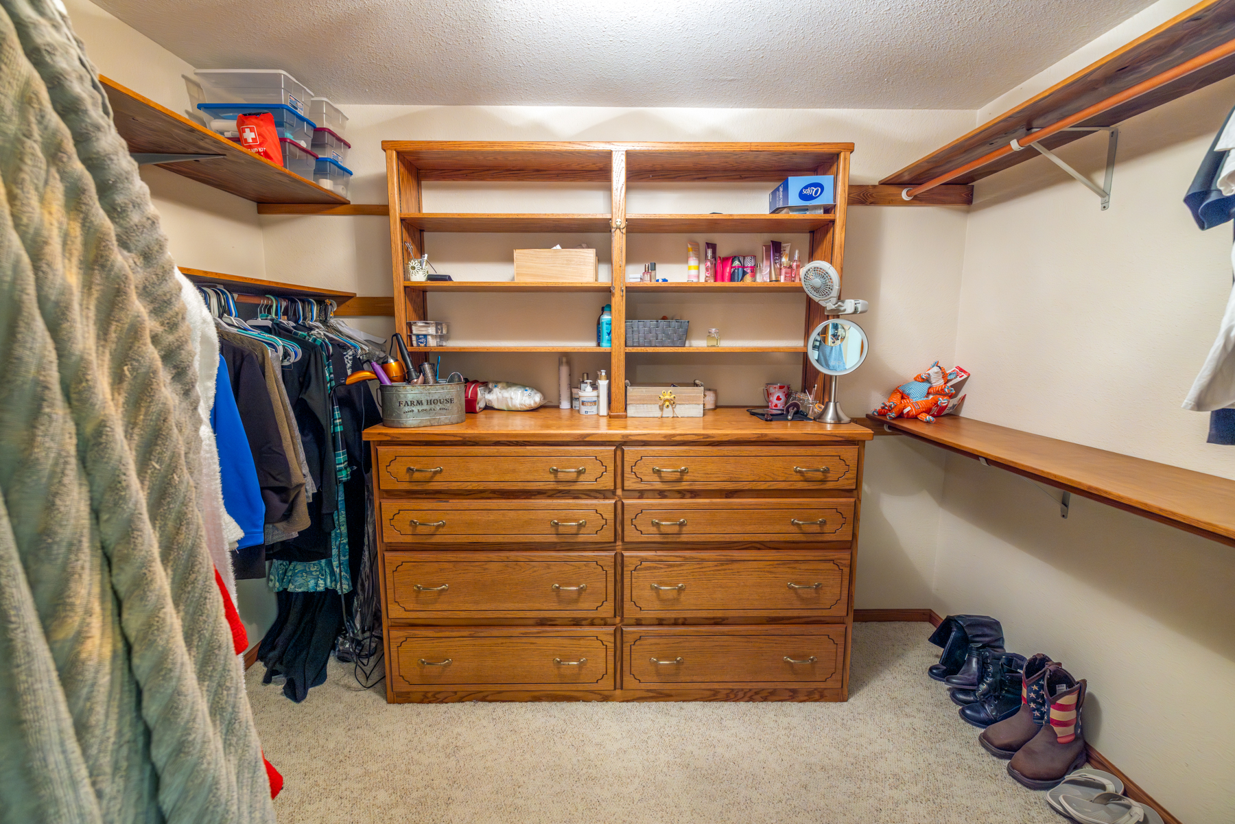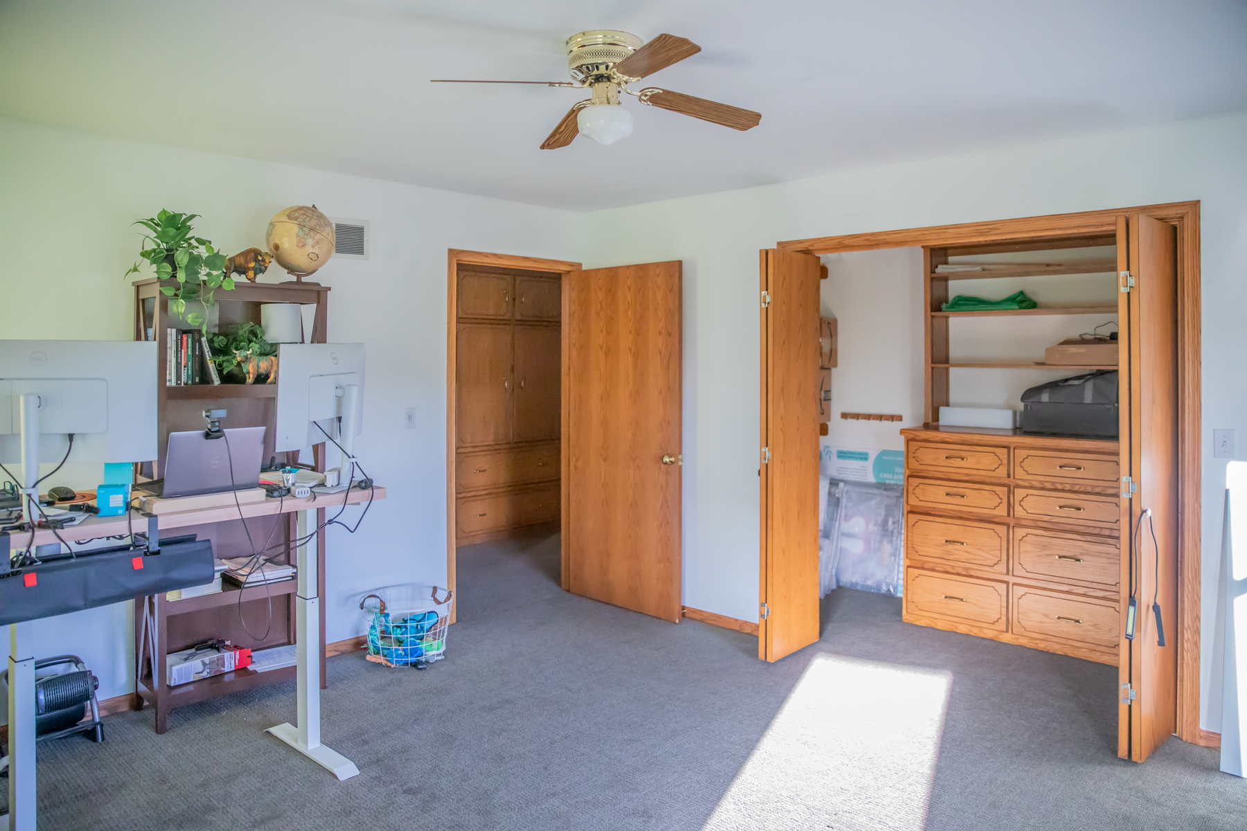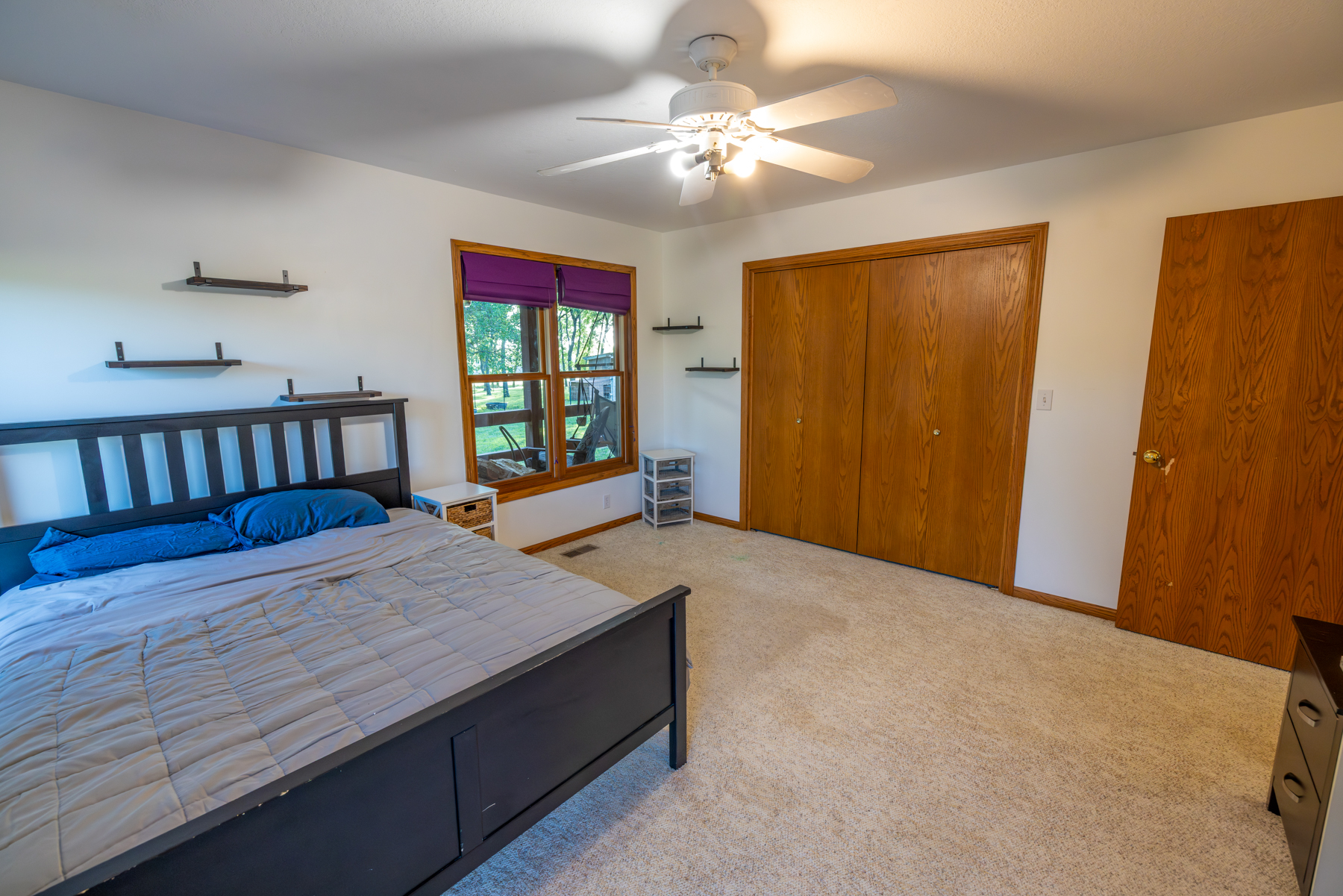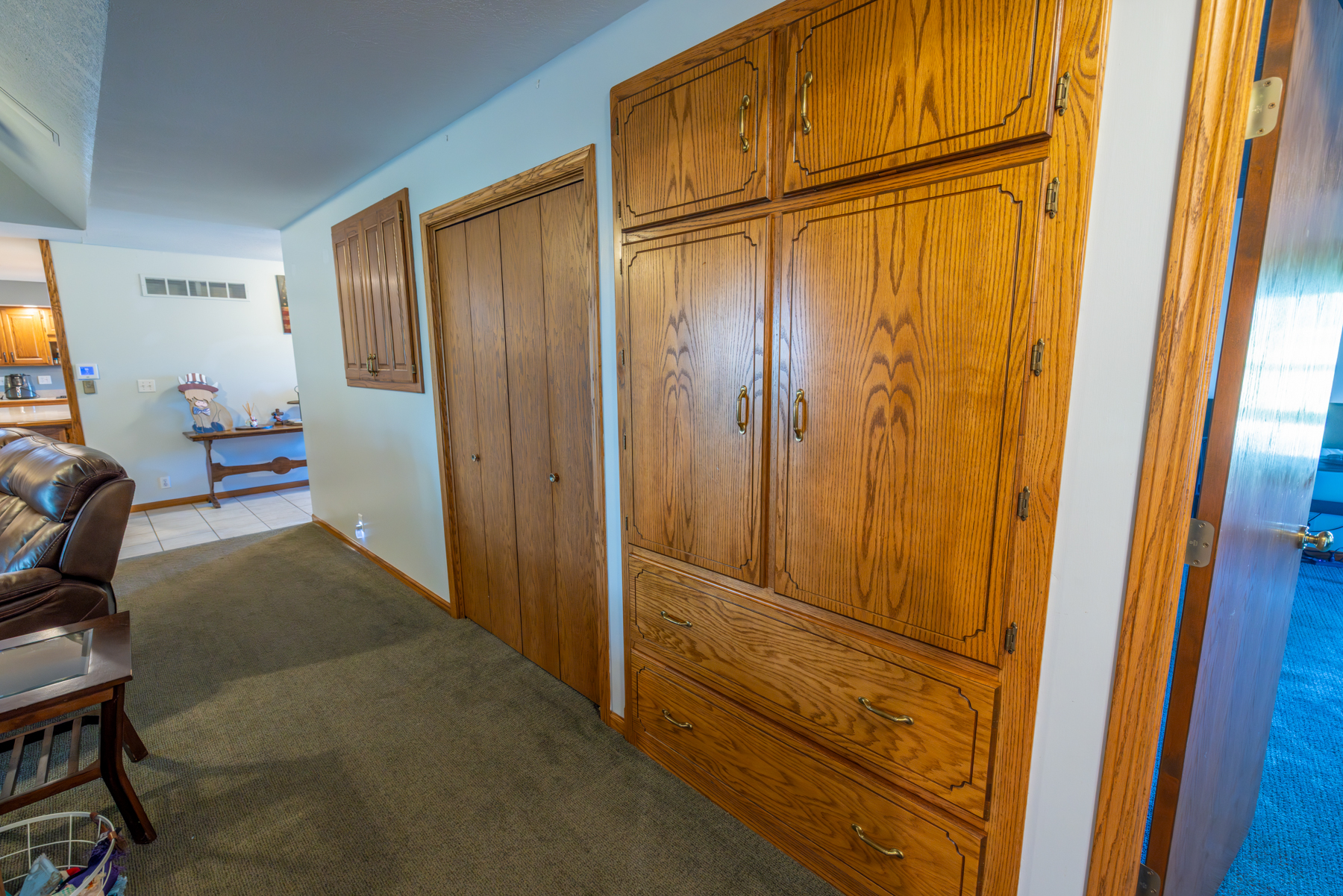 Pulling down the dead-end West 273rd Street, appreciate the residence placement as it is set far to the north off of the county roadway and wrapped with a slice of heaven on earth. The well-maintained driveway is lined with mature Redbud trees and lies out in an eased circle driveway in front of the residence, with a split off which leads to the east garage and west garage. One step on the front covered deck, and you may never want to leave, as the views are the icing on the cake. Inside, take note of the attention to detail throughout. The study holds custom-built bookshelves with incredible natural light. There is an office area to the west of the library. Continue on to the kitchen, which is complete with custom solid Oak cabinetry with built-in double oven, microwave cabinet, cook top, dishwasher, and refrigerator. The majority of all appliances have recently been replaced. The kitchen is open to the dining area and living room with a 1/2 bathroom and laundry room just off. There is a wood-burning built-in stove with a blower that provides not only ambience to a winter’s day, but endless supplemental heat. The double sliding doors lead you out onto the back covered deck area. The master bedroom boasts ideal space with his and her closets with built-ins and a double vanity. There is a walk door between the master bedroom and kitchen that leads out to the back covered deck. There are 2 additional bedrooms on the west side of the home with spacious closets with built-ins. The main full bathroom is located between the bedrooms. The upstairs staircase is located just off the kitchen and offers incredible space that could be used for 2 additional bedrooms, a play/rec room, or an office.