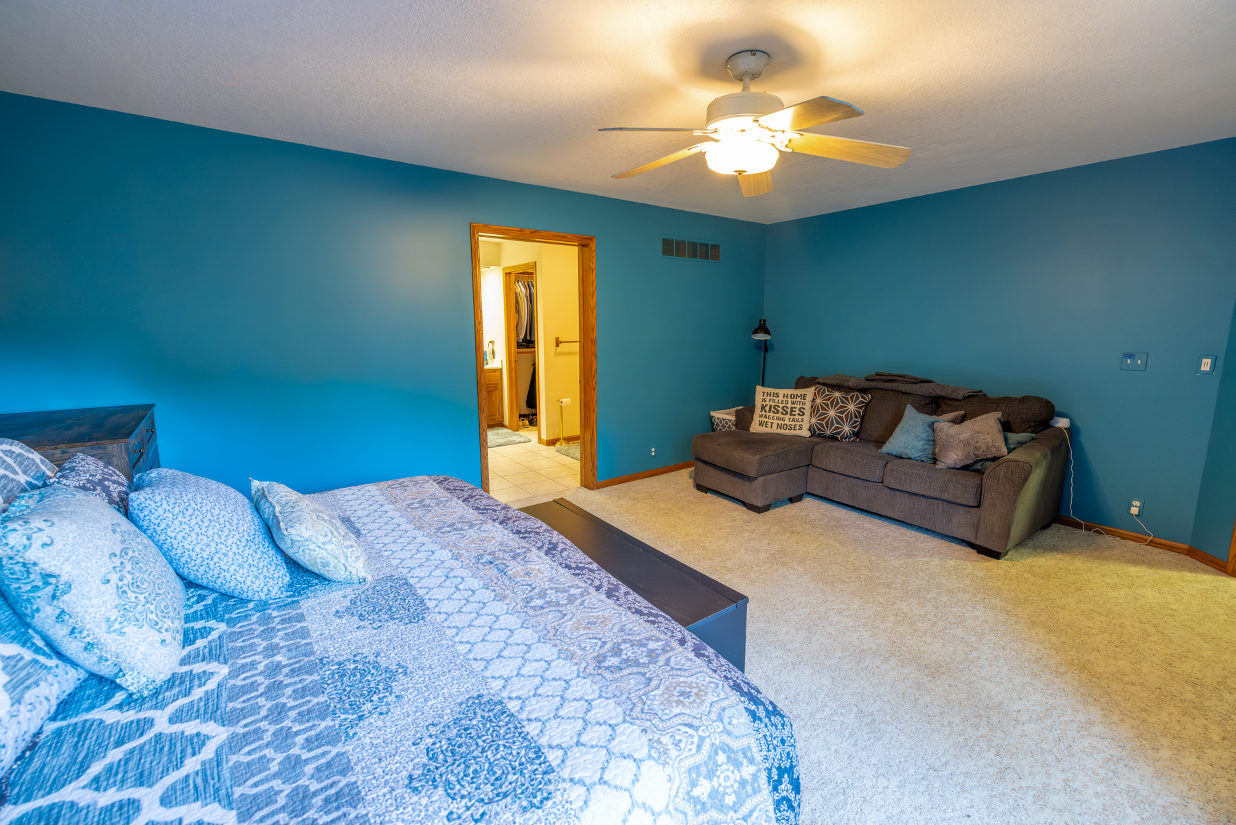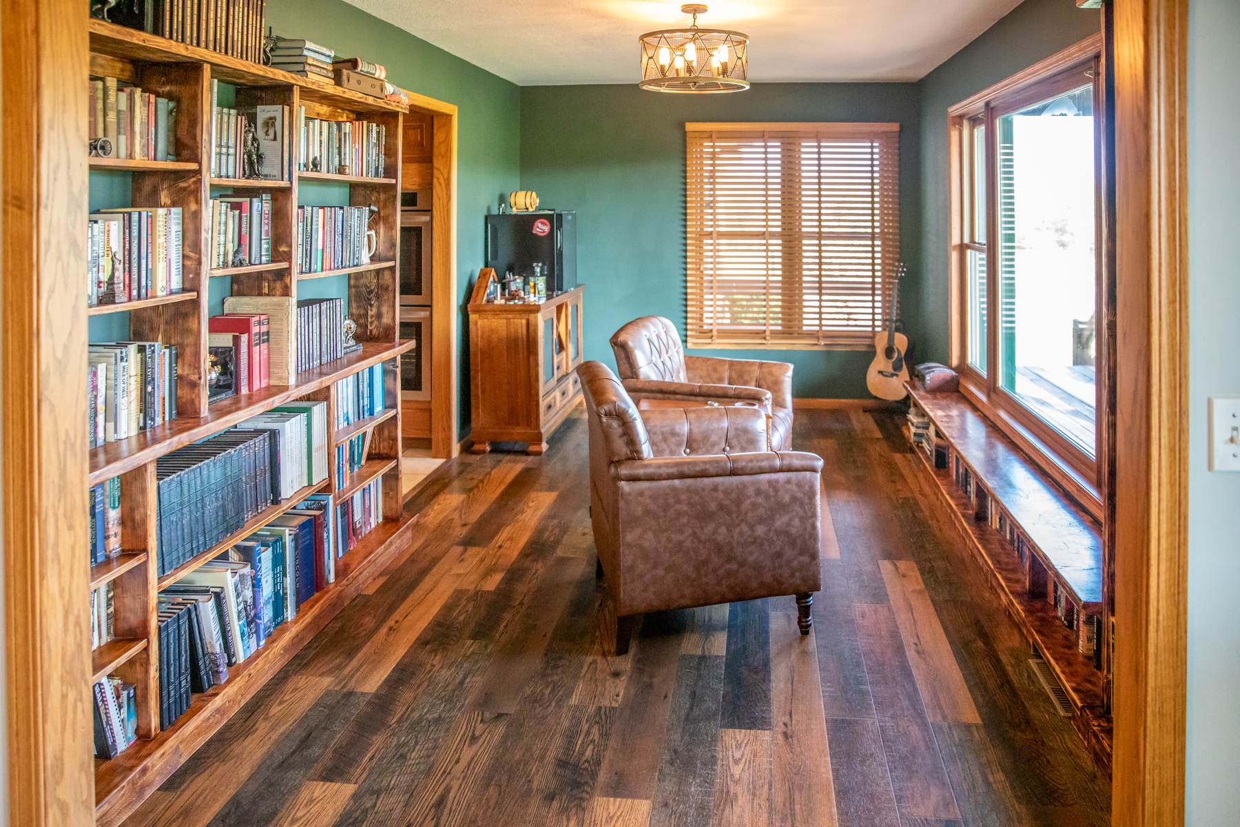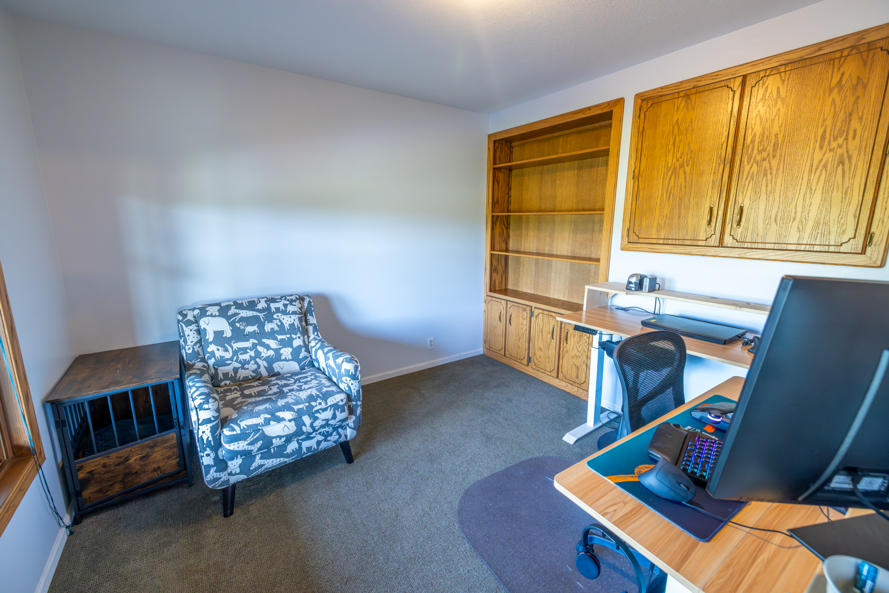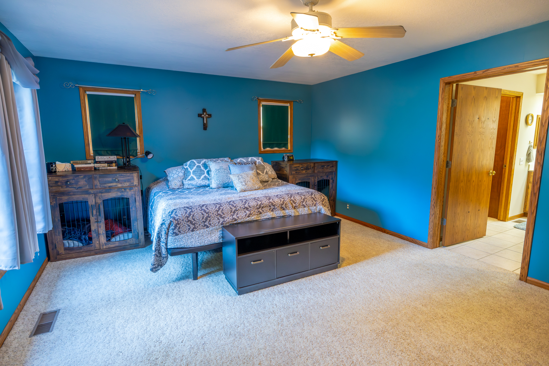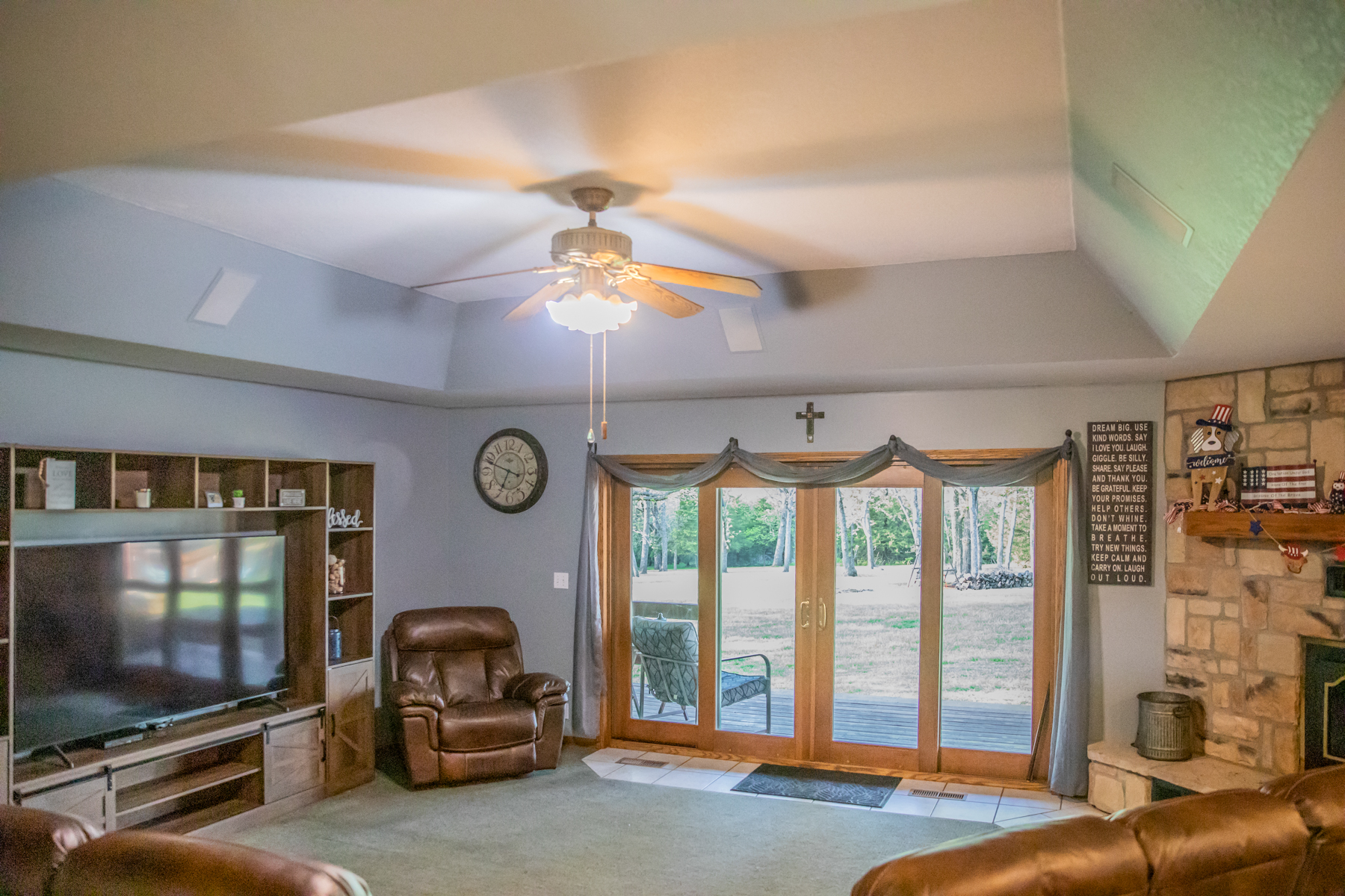 Pulling down the dead-end West 273rd Street, appreciate the residence placement as it is set far to the north off of the county roadway and wrapped with a slice of heaven on earth. The well-maintained driveway is lined with mature Redbud trees and lies out in an eased circle driveway in front of the residence, with a split off which leads to the east garage and west garage. One step on the front covered deck, and you may never want to leave, as the views are the icing on the cake. Inside, take note of the attention to detail throughout. The study holds custom-built bookshelves with incredible natural light. There is an office area to the west of the library. Continue on to the kitchen, which is complete with custom solid Oak cabinetry with built-in double oven, microwave cabinet, cook top, dishwasher, and refrigerator. The majority of all appliances have recently been replaced. The kitchen is open to the dining area and living room with a 1/2 bathroom and laundry room just off. There is a wood-burning built-in stove with a blower that provides not only ambience to a winter’s day, but endless supplemental heat. The double sliding doors lead you out onto the back covered deck area. The master bedroom boasts ideal space with his and her closets with built-ins and a double vanity. There is a walk door between the master bedroom and kitchen that leads out to the back covered deck. There are 2 additional bedrooms on the west side of the home with spacious closets with built-ins. The main full bathroom is located between the bedrooms. The upstairs staircase is located just off the kitchen and offers incredible space that could be used for 2 additional bedrooms, a play/rec room, or an office.