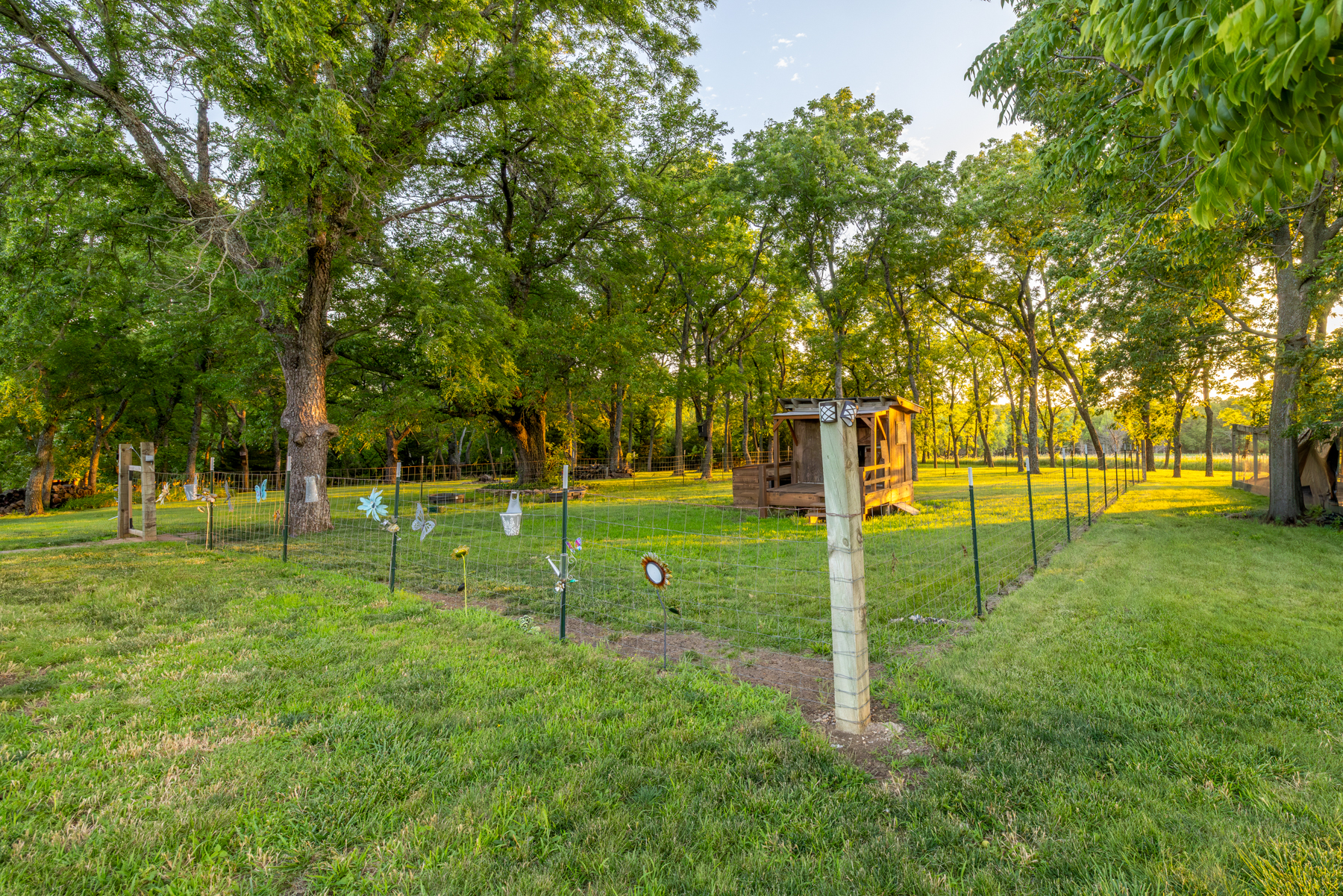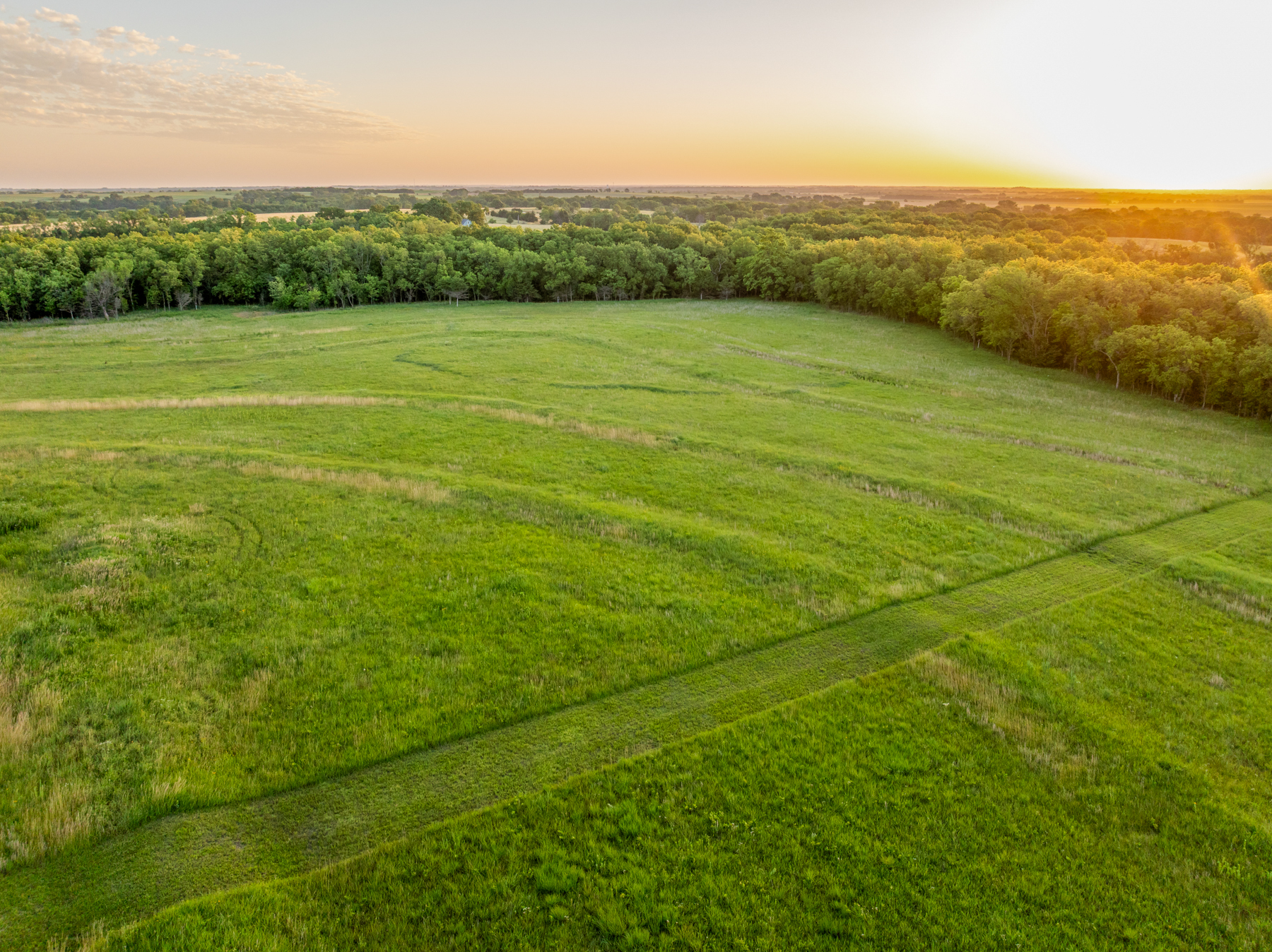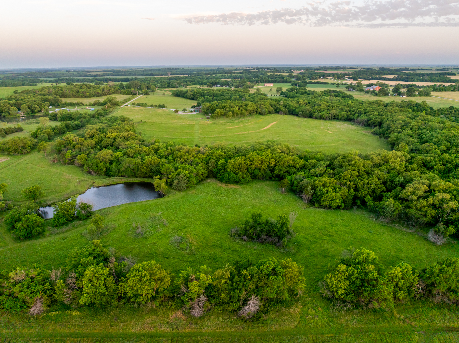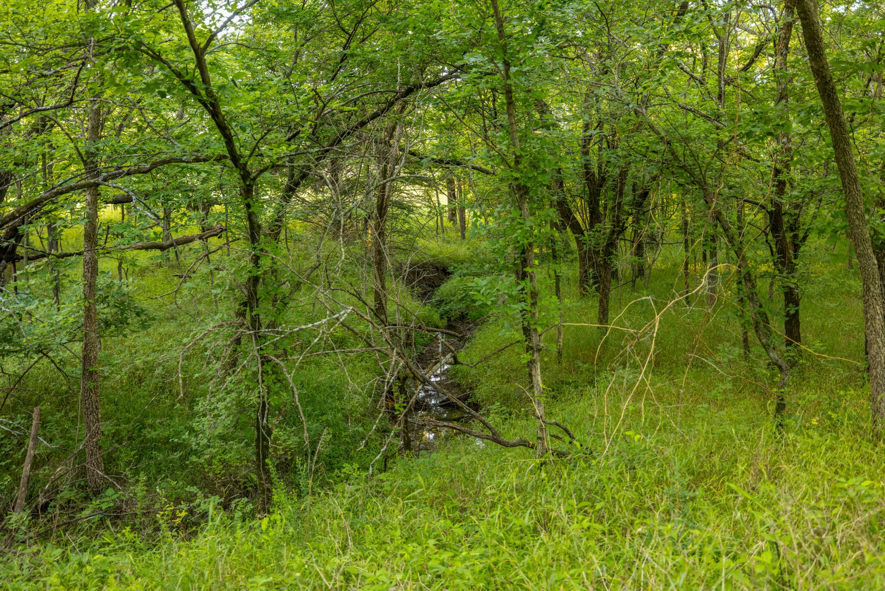 The 45 +/- acres is made up of some of the most prime dynamics a farm could have. The 24 +/- acres of native grassland hold an impressive and healthy stand throughout. Each year, 17 +/- acres of the 24 +/-acres are put up for hay. The wildflowers throughout the native grasses are a thing of beauty, with several varieties. The 10 +/- acres in the middle of the property were broken ground at a point in time, then seeded down to CRP in the 80s, and now back to native. The 5 +/- acres of additional native grass acres are on the east side of the farm, intermixed with cover, and provide a honey hole of bedding area and additional cover for wildlife. On this east side, you will find the spring-fed pond that is stocked and holds endless mornings and evenings of fishing. The 19 +/- acres of hardwood timber stand are about as good as you can get. The Black Walnuts throughout the property are unreal and worth having a good amount harvested to open up the canopy to allow the others to continue to flourish. In addition to the Black Walnut, Elm, Cottonwood, Hackberry, Ash, Sycamore, Locust, and Osage Orange make up the majority of timber. Mute Creek forks off, running along the north property line and then cutting through the middle of the easterly side. There are deer trails galore running up and down the creek, providing another glimpse at what is on the property. Along with Whitetails, the quail were singing all morning with plenty of turkey heads trotting across the dense hay meadow, even the stray in the backyard circling the chicken coop. From hunting opportunities to passive hay income or to graze your own livestock, the land will provide for it. The property boundaries are fenced with 5-strand barbed wire. All mineral rights are intact. Hunting Unit 14.