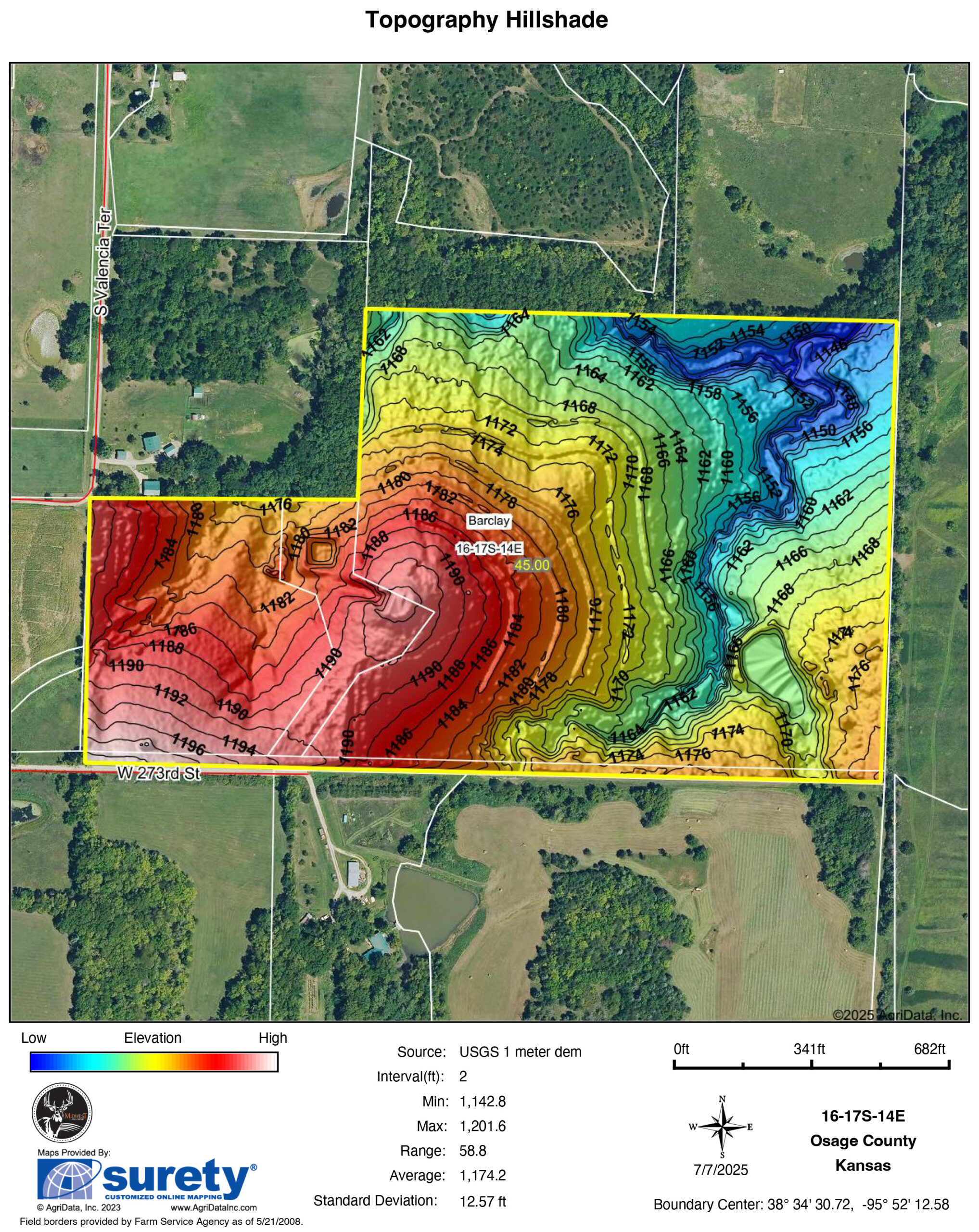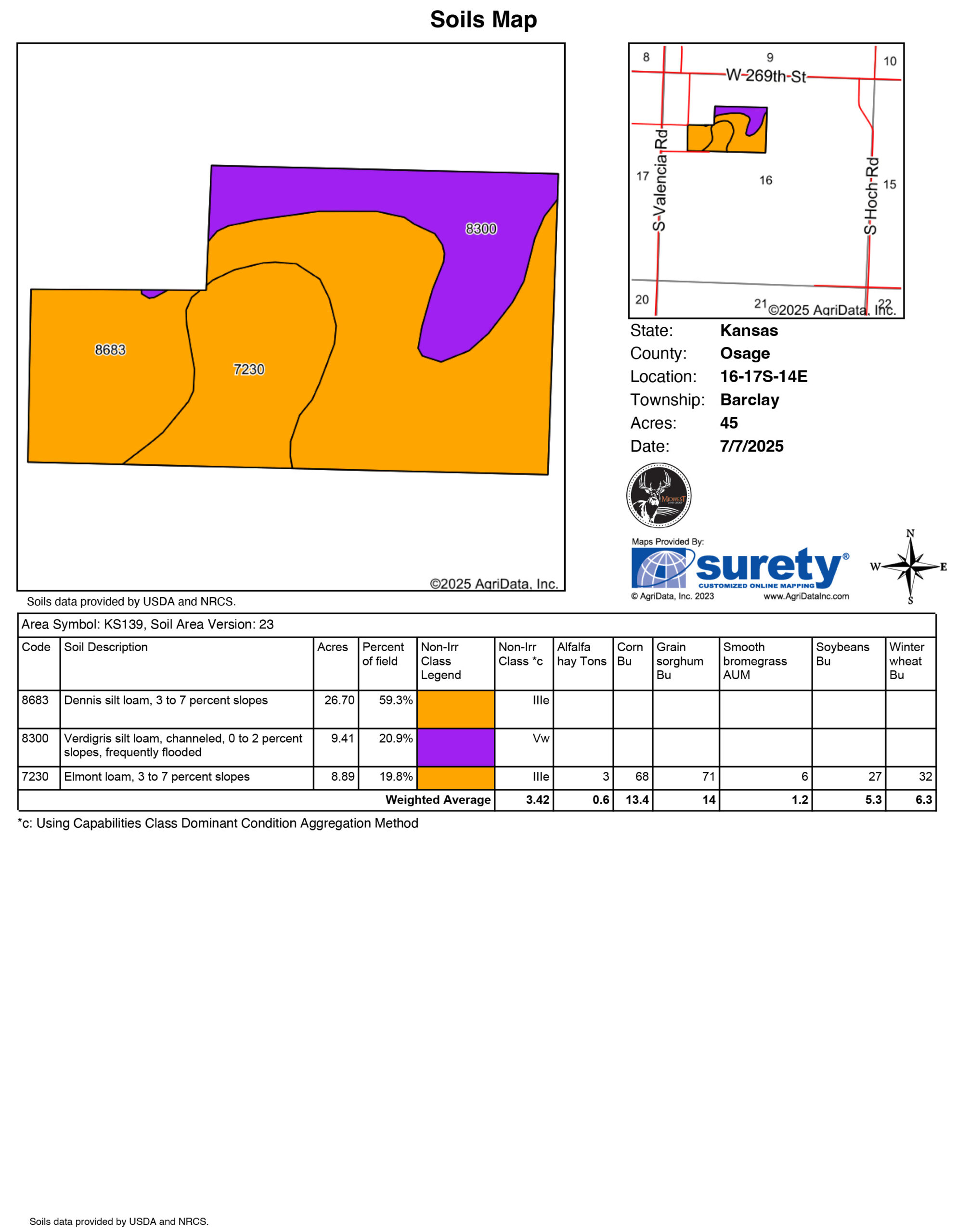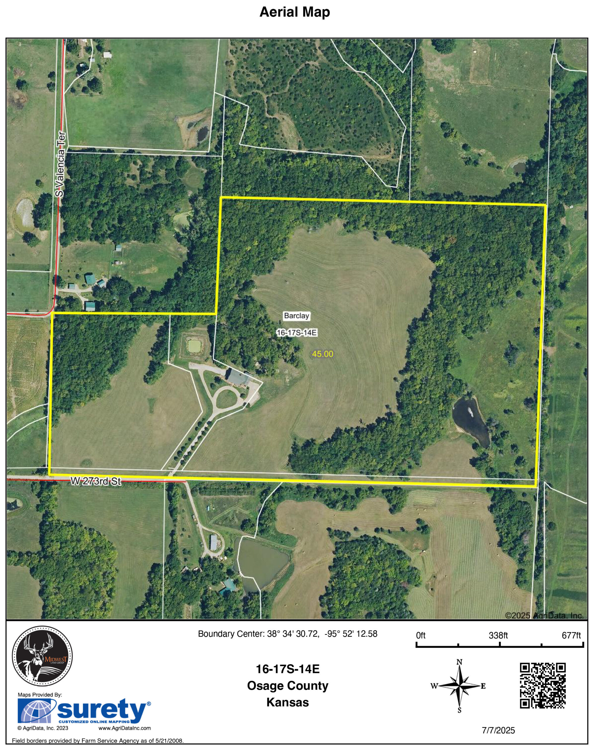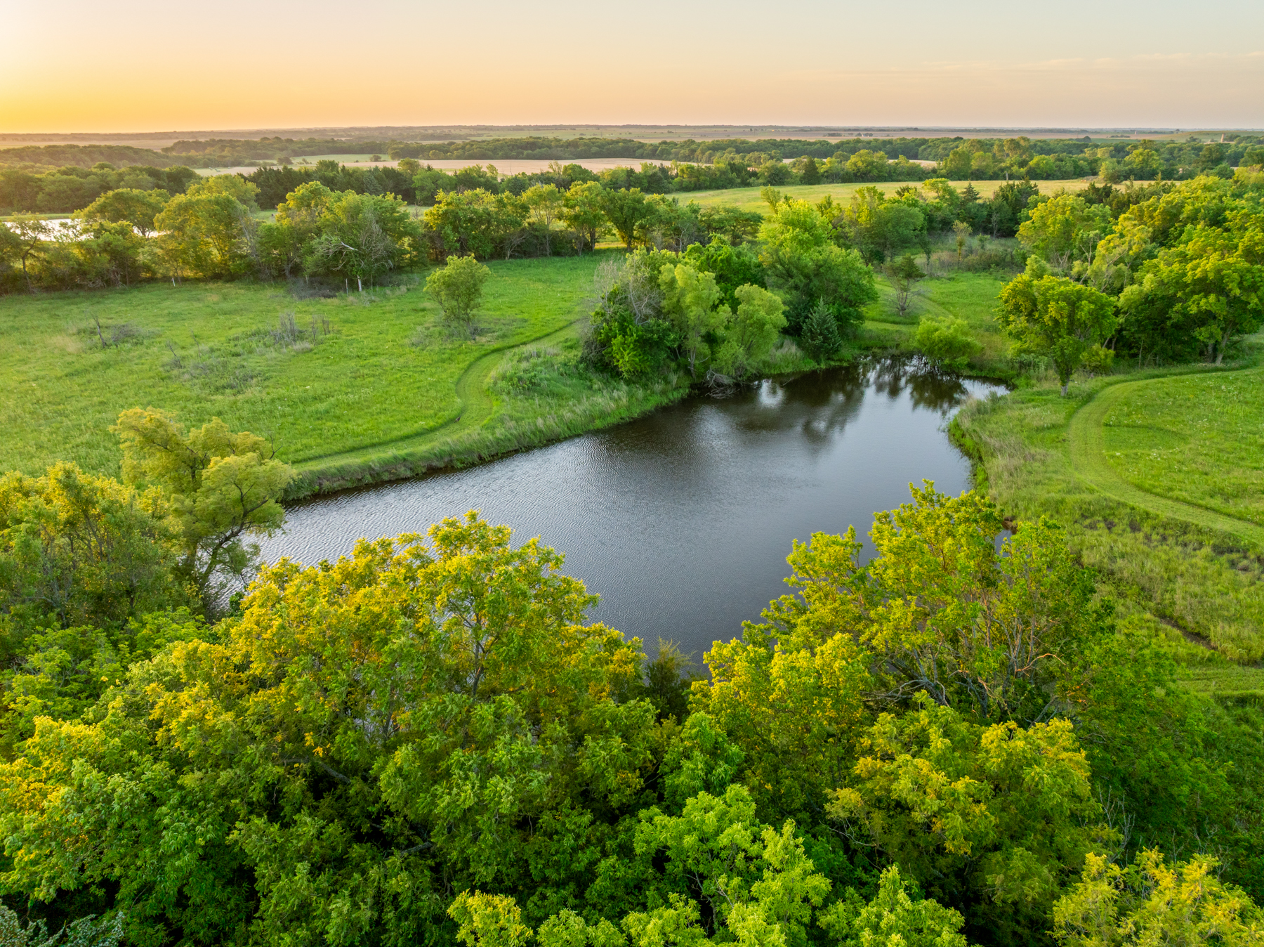 The 45 +/- acres is made up of some of the most prime dynamics a farm could have. The 24 +/- acres of native grassland hold an impressive and healthy stand throughout. Each year, 17 +/- acres of the 24 +/-acres are put up for hay. The wildflowers throughout the native grasses are a thing of beauty, with several varieties. The 10 +/- acres in the middle of the property were broken ground at a point in time, then seeded down to CRP in the 80s, and now back to native. The 5 +/- acres of additional native grass acres are on the east side of the farm, intermixed with cover, and provide a honey hole of bedding area and additional cover for wildlife. On this east side, you will find the spring-fed pond that is stocked and holds endless mornings and evenings of fishing. The 19 +/- acres of hardwood timber stand are about as good as you can get. The Black Walnuts throughout the property are unreal and worth having a good amount harvested to open up the canopy to allow the others to continue to flourish. In addition to the Black Walnut, Elm, Cottonwood, Hackberry, Ash, Sycamore, Locust, and Osage Orange make up the majority of timber. Mute Creek forks off, running along the north property line and then cutting through the middle of the easterly side. There are deer trails galore running up and down the creek, providing another glimpse at what is on the property. Along with Whitetails, the quail were singing all morning with plenty of turkey heads trotting across the dense hay meadow, even the stray in the backyard circling the chicken coop. From hunting opportunities to passive hay income or to graze your own livestock, the land will provide for it. The property boundaries are fenced with 5-strand barbed wire. All mineral rights are intact. Hunting Unit 14.