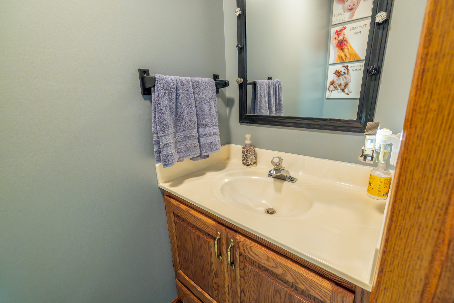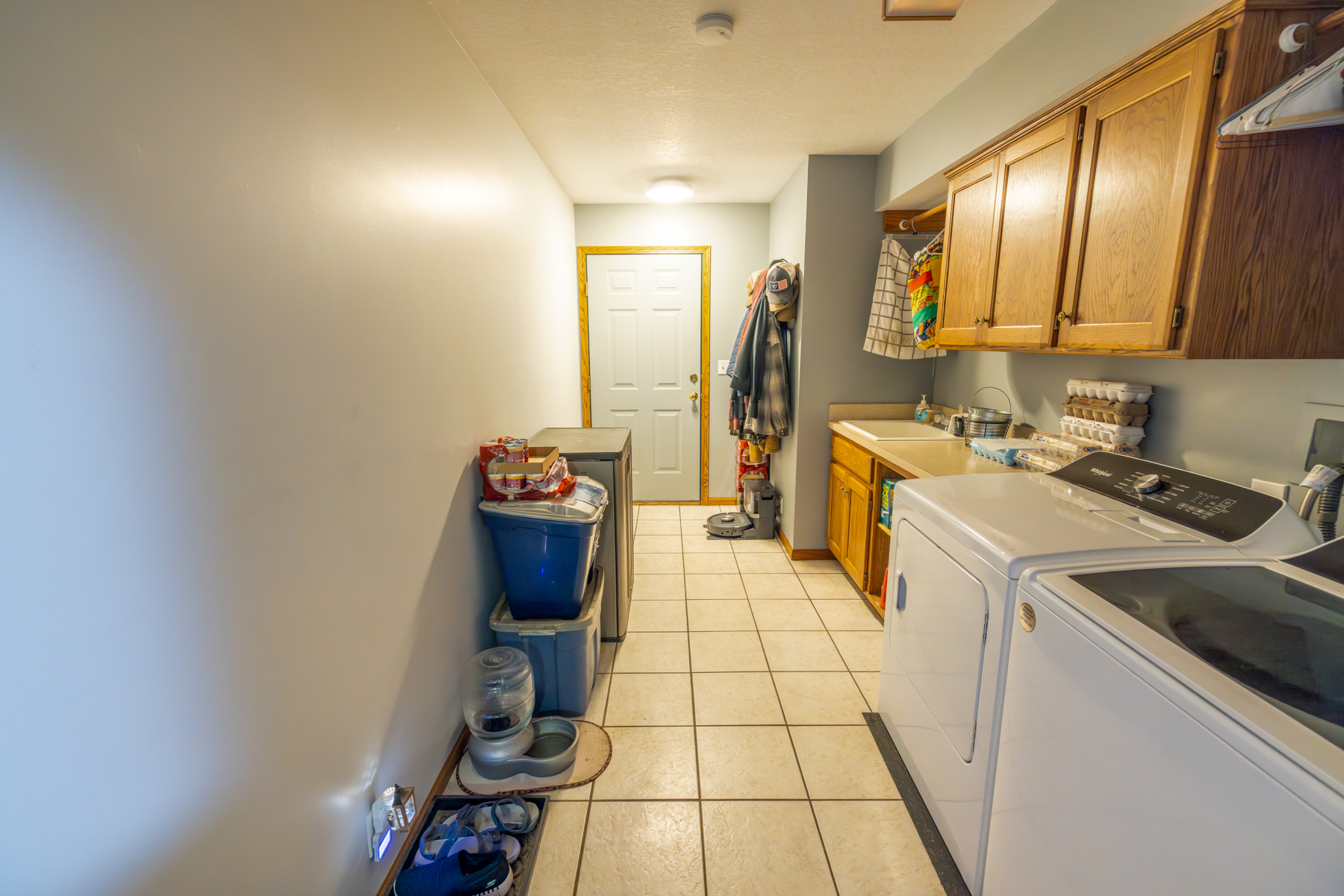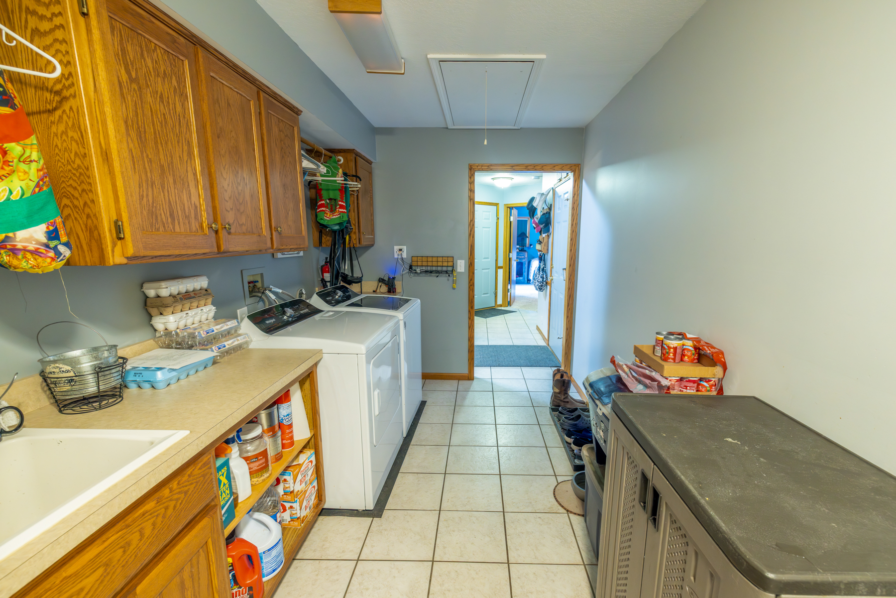 Downstairs, the basement is ready to be finished out with ideal space for a family room, bedroom, and stubbed for a full bathroom. There is a storm shelter off the utility area. Along with endless storage space, the west end leads out to a lawn and a garage with a workshop area. The backyard is complete with a newer hot tub, chicken coop with fenced range area, and playhouse. The home is all electric and set up on geothermal. The cedar siding was stained and sealed in the spring of 2024. Property is on 4 Rivers Electric and Osage Rural Water District #4. Located in Osage City USD 420.