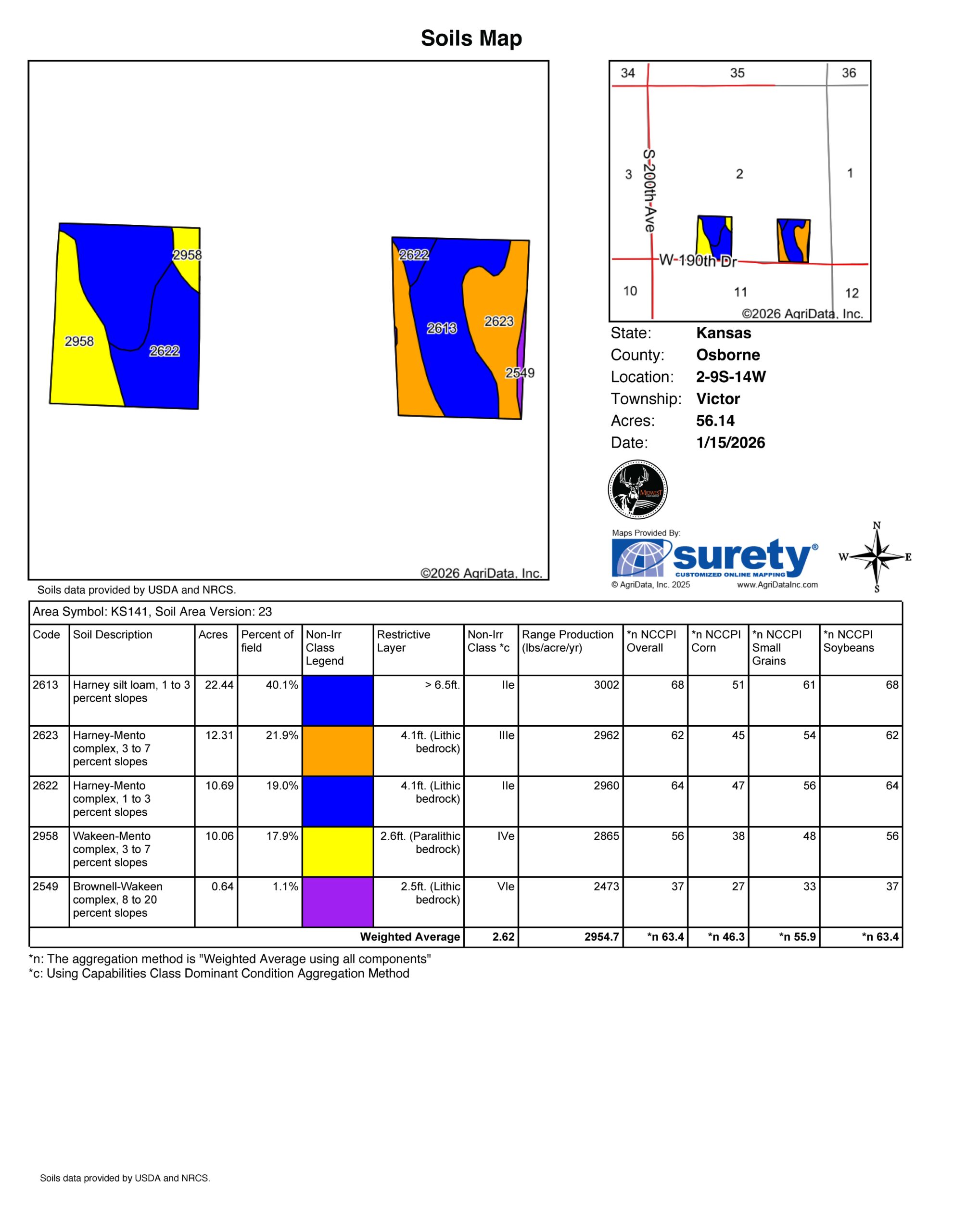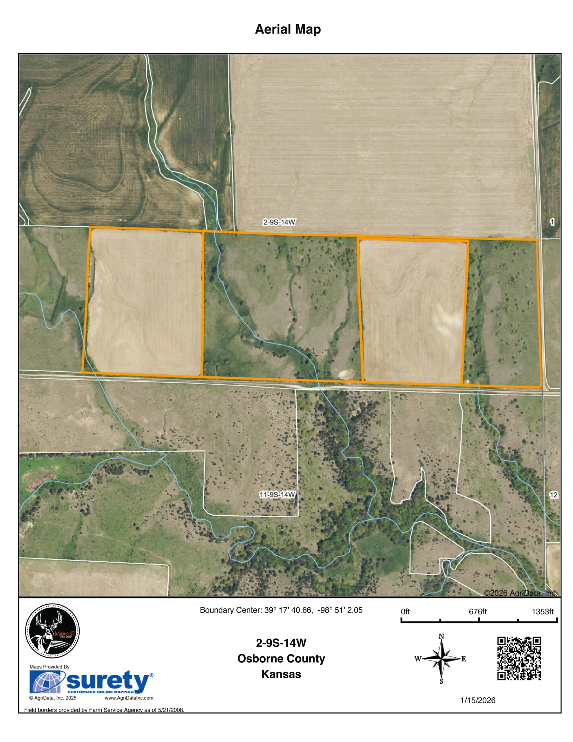 Take a look at this smaller acreage offering in Osborne County near Covert, Kansas. This 118 +/- acre property is a diverse property with fertile cropland acres, hay production, and native habitat. Of the total acreage, there are 56.14 +/- acres of quality cropland most recently planted to corn. These acres are mostly Class II and III soils with an NCCPI rating of 63.4. Other crops grown here may include milo sorghum, wheat, and soybeans. The difference in acres is hay meadows with scattered timber and thickets. In recent years, the grass has been hayed, but could easily be left to grow and provide an excellent place to hunt uplands with the large amount of edge and scattered habitat. This area is known to provide excellent upland bird hunting for Bobwhite quail and pheasants. The property is also situated directly between a large timbered parcel and a neighboring destination cropland field, resulting in frequent deer activity transitioning through the property, as evident by the beaten-down trails showing heavy usage. There is an older well that could be constructed to provide water for livestock, wildlife, or a potential cabin build. Whatever your needs, this affordable small parcel checks a lot of different boxes. Give the listing agent a call if you have any questions or to schedule your private viewing!