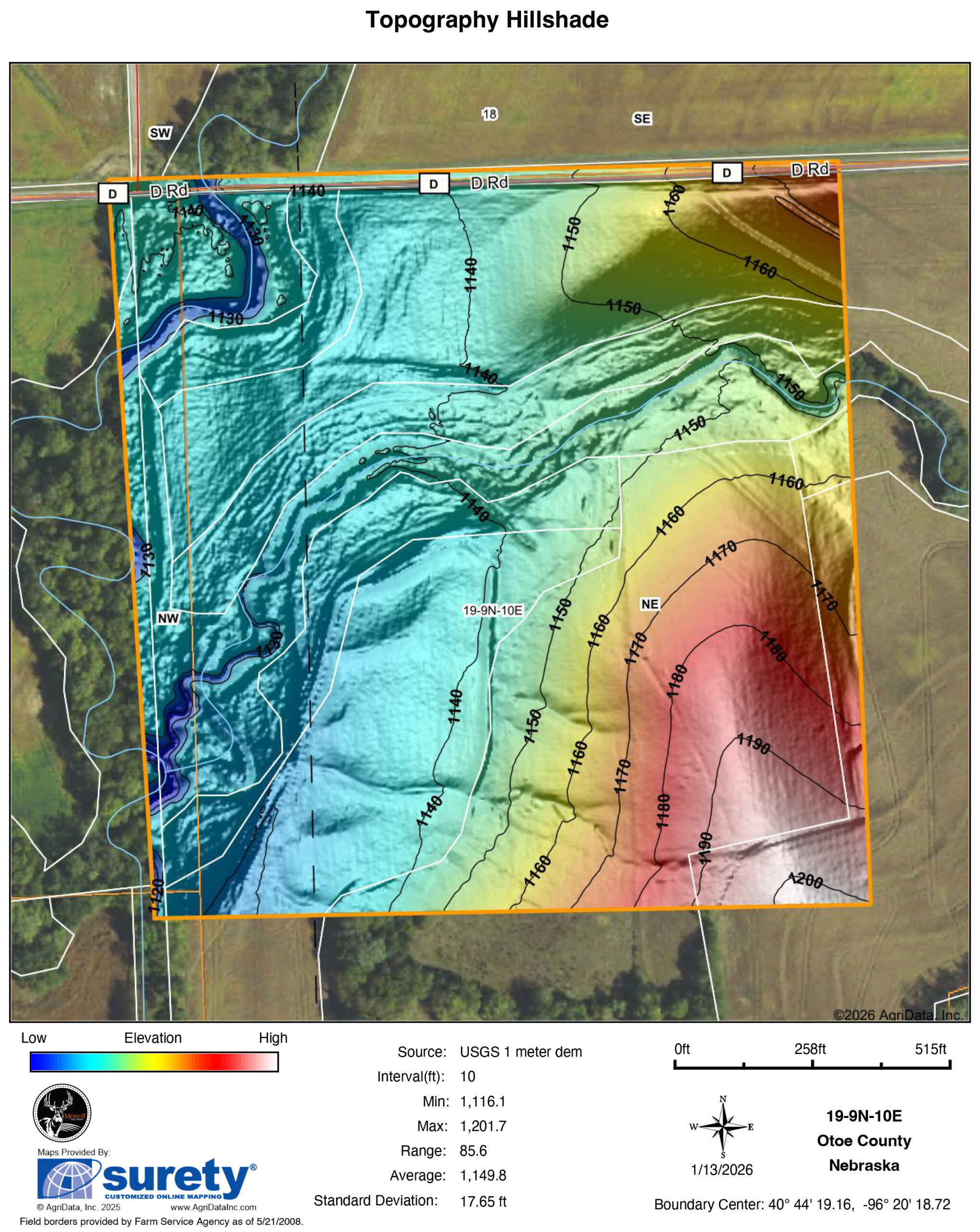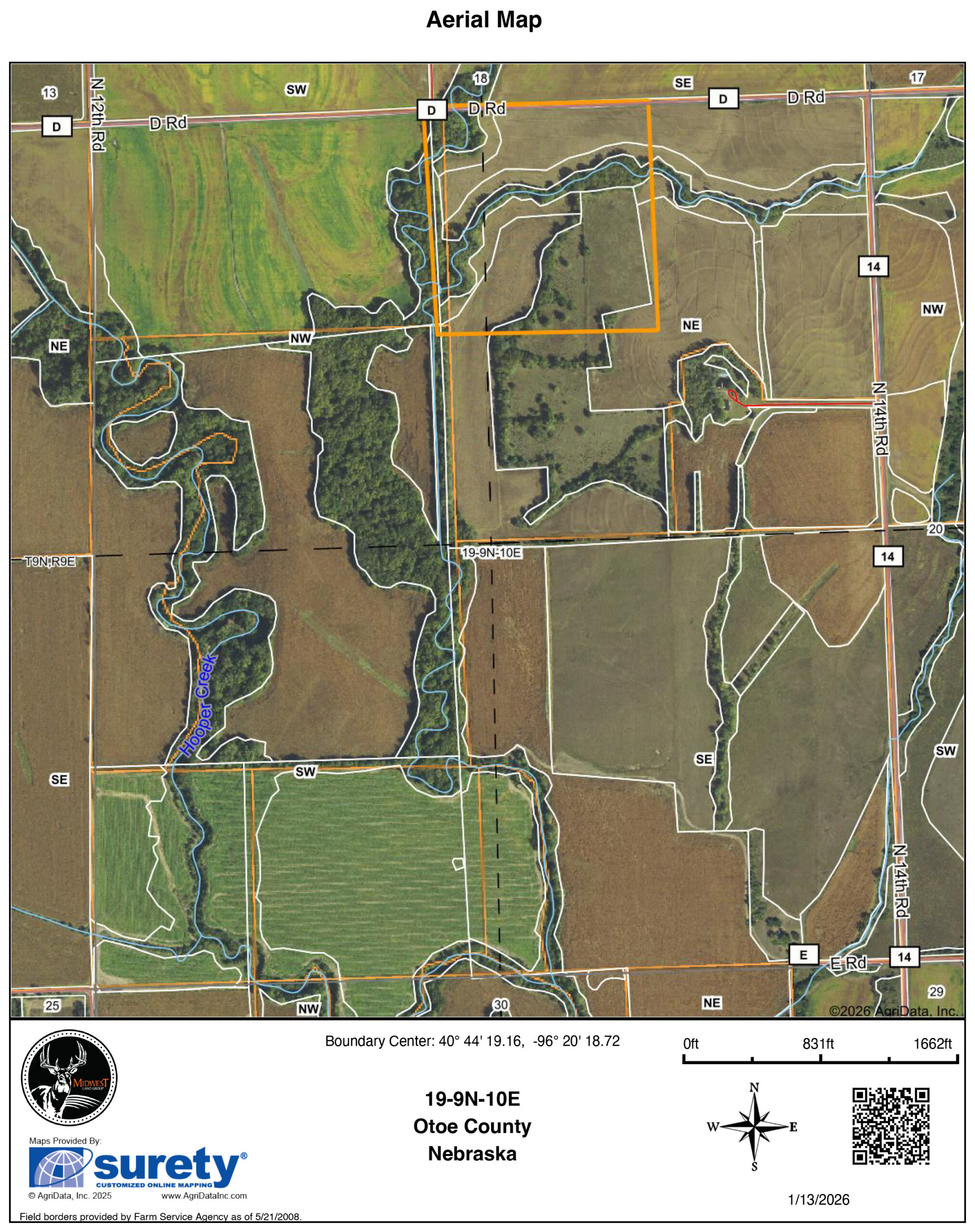 If you are looking to get out of town and are looking for a little more land than the standard 10-20 acre build site, this may be the spot for you! Located along County Road D northeast of Palmyra, this 43.5 +/- acre property is a blank slate to do with as you please. At just 3.5 miles off Highway 2, the location offers a quick and easy 18 minute commute into southeast Lincoln, where all the amenities await.Tract B has county road frontage along County Road D on the north boundary of the tract. This tract contains quite a bit more timber and pasture than Tract A. There is a fair amount of opportunity for some deer and turkey hunting on this one, and hunting right out of your back door is an option here. Start building your family's homestead out in the peace and quiet, where you are free to use the blank slate as you please!