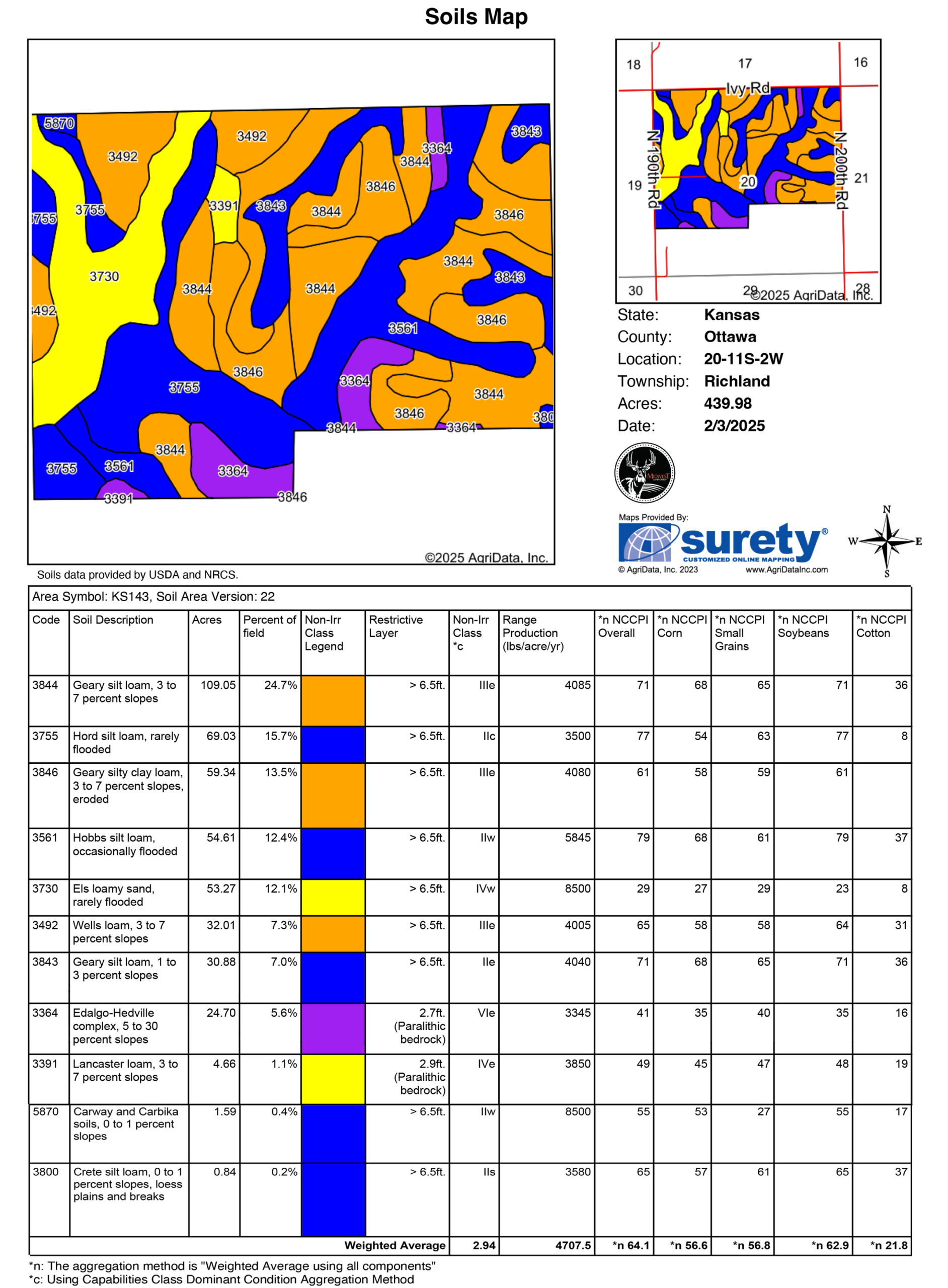 This 152 +/- acres of great class 2 farm ground, comprised primarily of Harney silt loams, would make a great addition to your row crop operation in Osborne County, Kansas. Located just 5 miles south and 3 miles west of … Read More