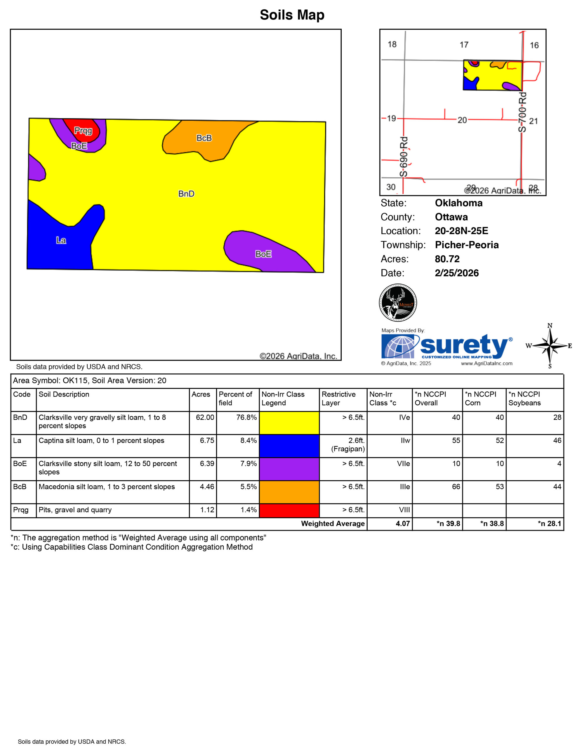 Located in Ottawa County, Oklahoma, this 80 +/- acre farm offers the perfect combination of productive pasture, mature timber, and comfortable country living. With approximately 57 +/- acres of timber and 23 +/- acres of pasture, the land is well-suited for livestock, recreation, or a private rural retreat. The farm is perimeter fenced and cross-fenced, providing excellent functionality for cattle or horses.The 2,015 square foot home features 3 bedrooms and 2 bathrooms, offering plenty of space for a full-time residence or weekend getaway. Additional improvements include a 24’x24’ storage building, a 30’x60’ pole barn, and a 30’x75’ hay barn - ideal for equipment storage and agricultural use.