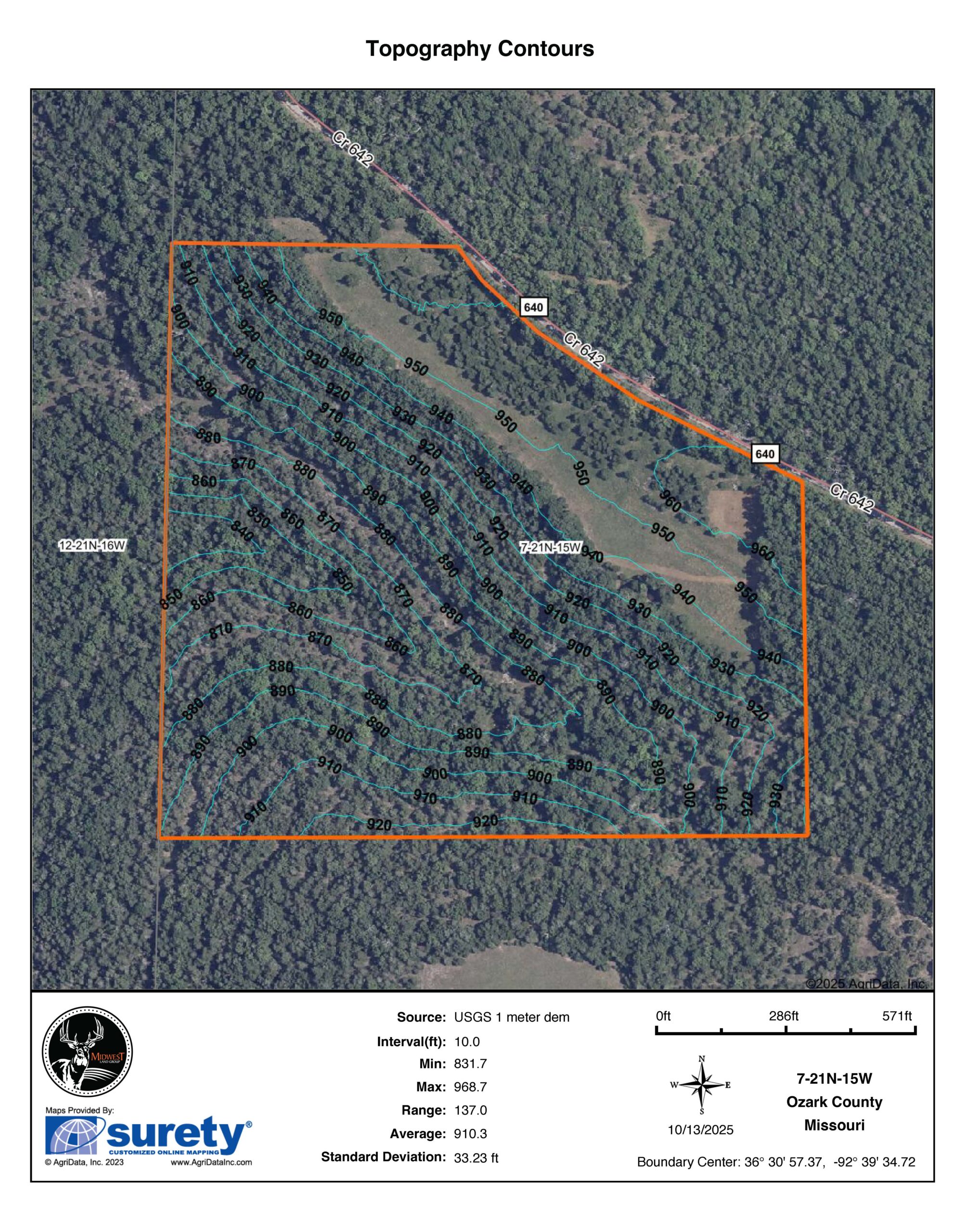 The remainder of the 32 +/- acres is comprised of hardwood timber and beautiful cedar glades. A nice wet-weather creek runs through the center of the property, and two wildlife ponds are located on the east side of the property. For travel through the property, a nice UTV trail allows for great access to the creek, ponds, and potential hunting locations. Lastly, the property sits just a mile and a half from Bull Shoals Lake access. With no restrictions or HOA and low taxes, you won’t find a more functional lake area tract. Contact Listing Agent, Clay O’Dell, at (417) 414-1808, for more information or to set up a showing.