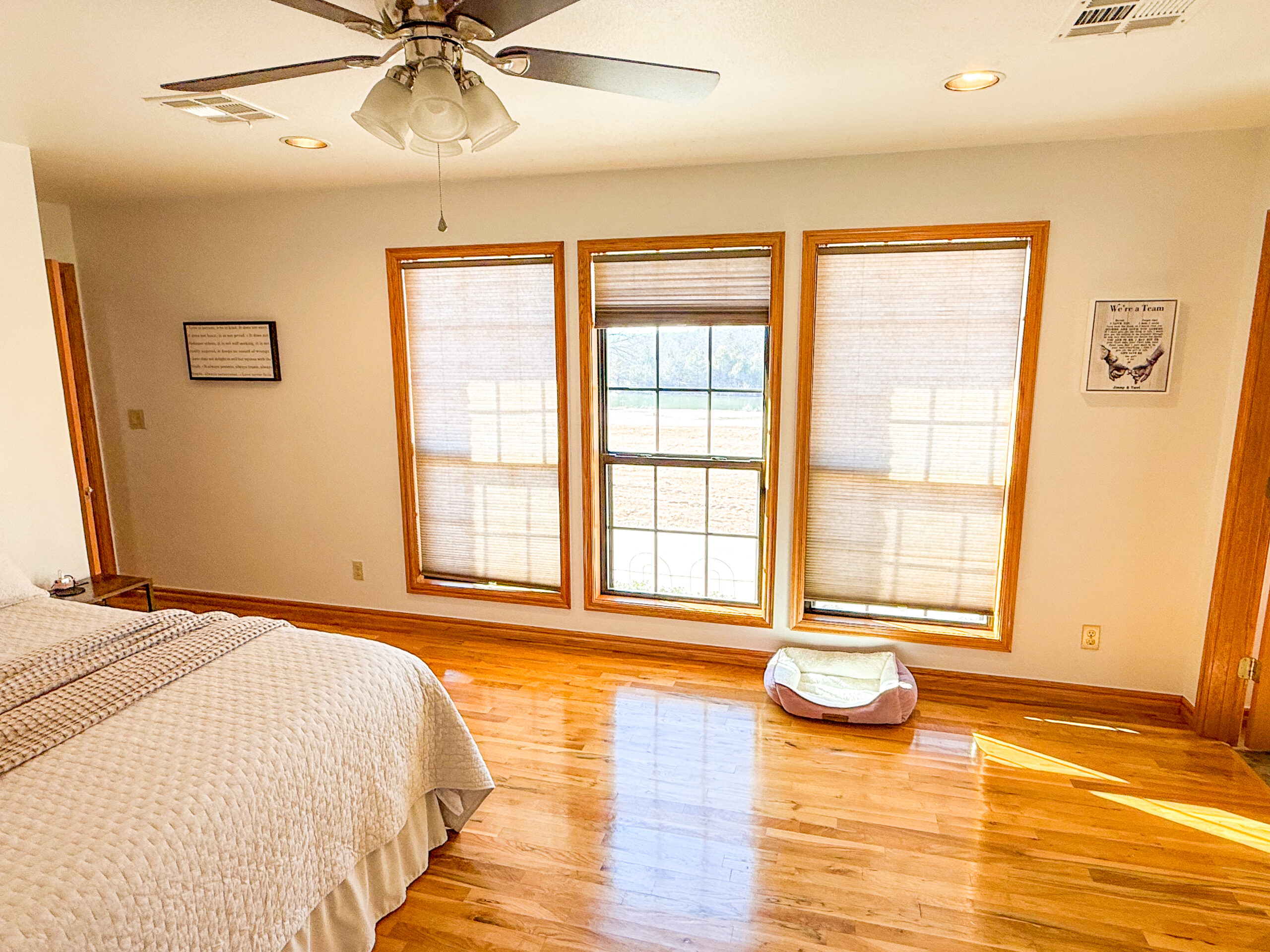 Outdoors, the land truly shines. Enjoy a large 2 acre pond stocked with crappie and largemouth bass, mature oak trees, and excellent elevation changes throughout. A well-established trail system makes exploring easy and highlights the property’s abundant wildlife, including whitetail deer and turkey—a dream setup for hunters and outdoor enthusiasts alike.