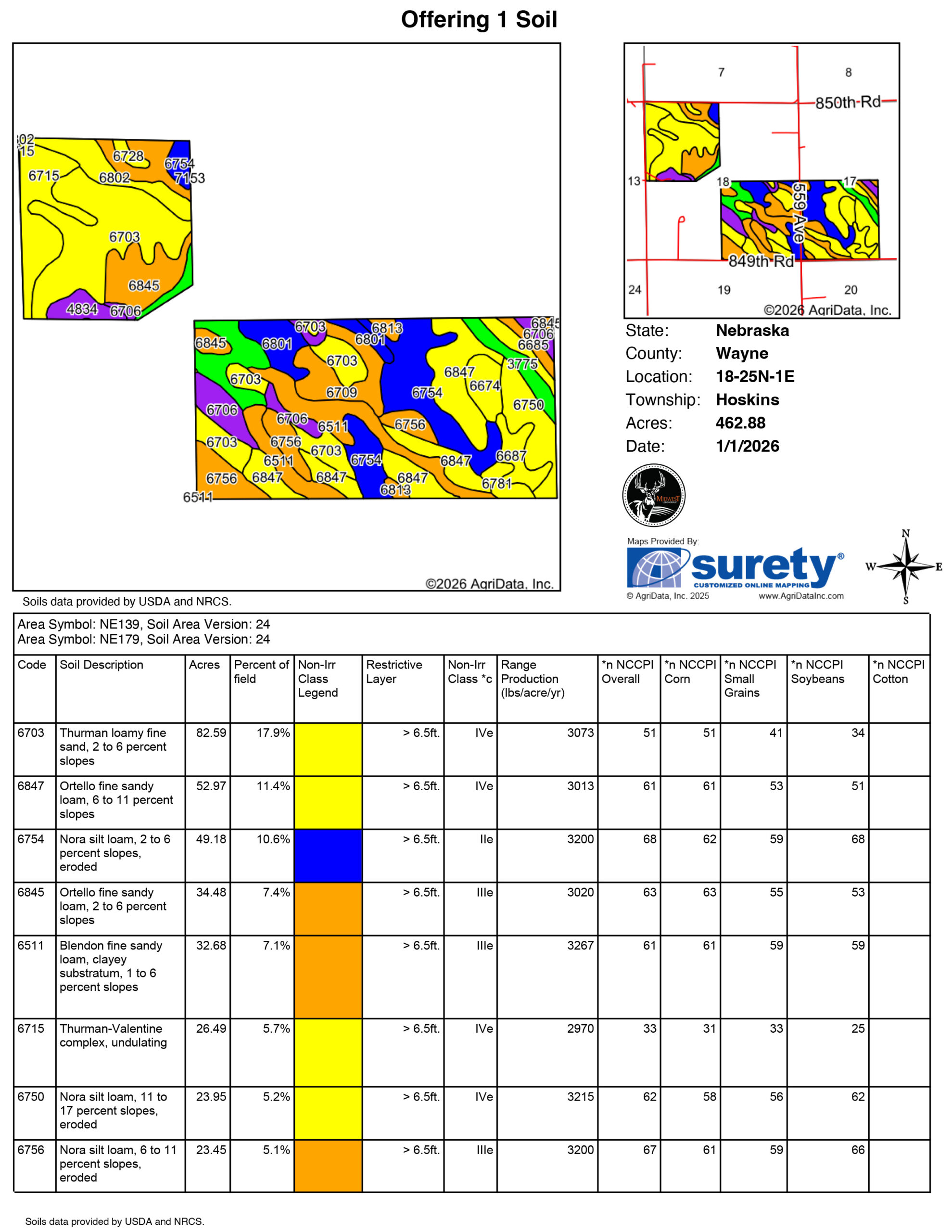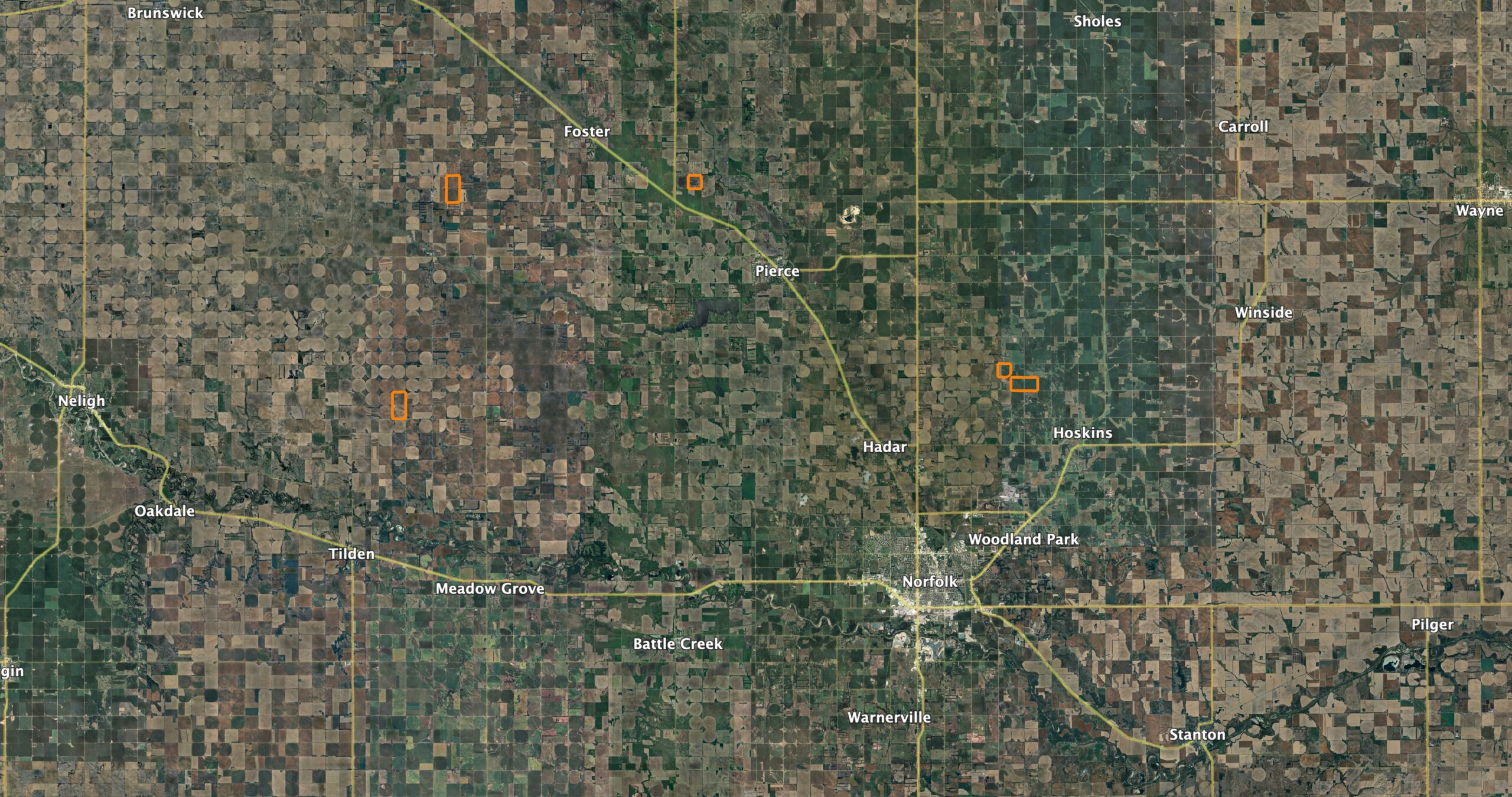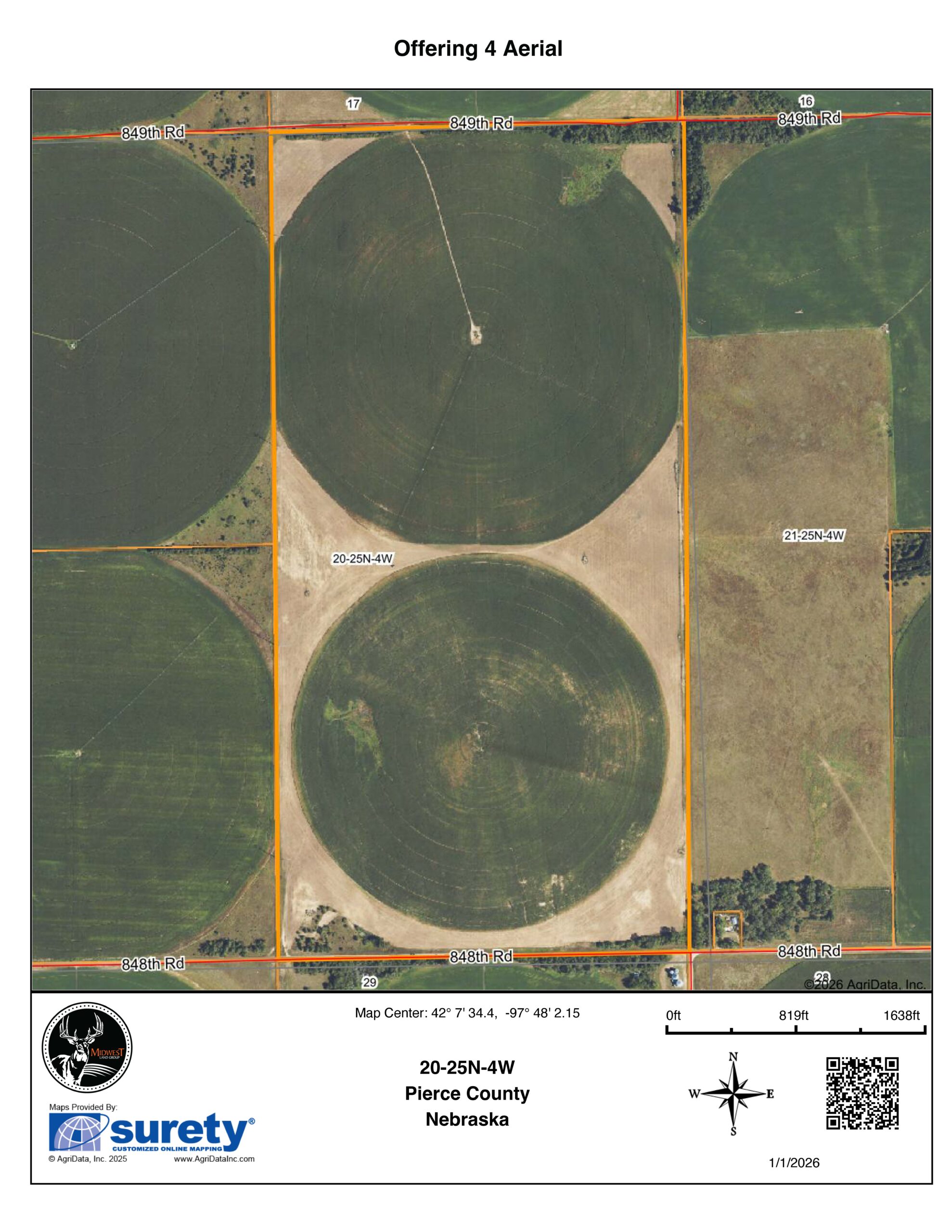 Midwest Land Group is proud to present this package of 1,268 +/- acres of cropland, primarily irrigated, spanning the Northeast Nebraska counties of Wayne and Pierce. The tracts are being offered as a whole and in the following configurations.