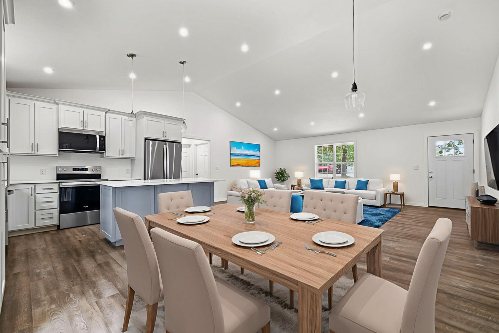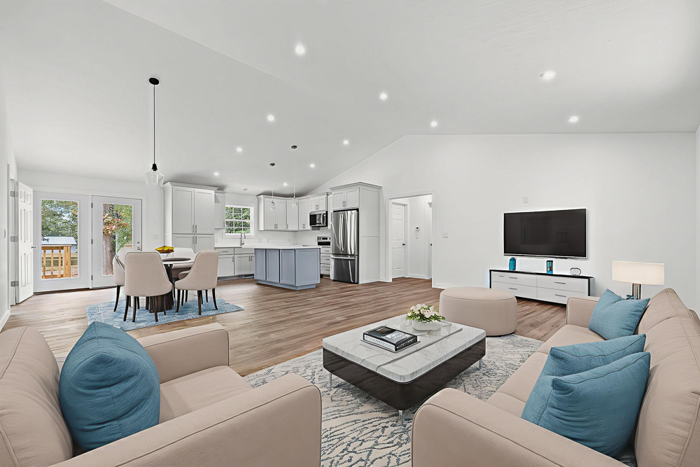 Welcome to this brand new 3-bedroom, 2-bathroom home in Polk County, offering the perfect blend of modern design and country living. Situated on 2 surveyed acres just off State Highway YY and H Highway, this property provides both convenience and privacy.Step inside to an open concept living space where the kitchen, dining, and living areas flow together under tall, vaulted ceilings. The kitchen is a showstopper with two-tone custom cabinetry, quartz countertops, a large pantry, and a spacious island ideal for both everyday living and entertaining.
