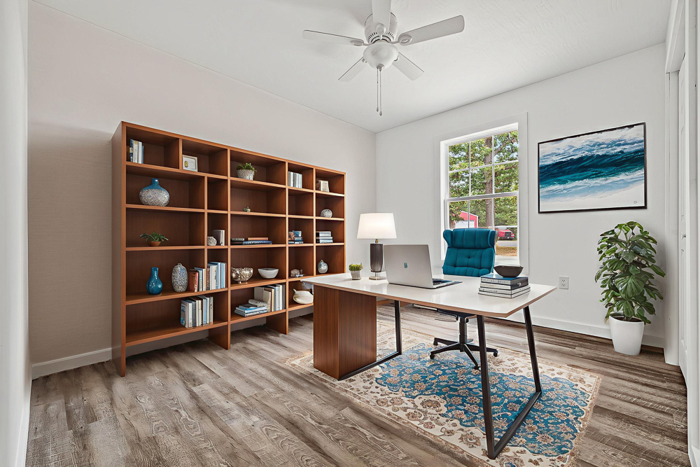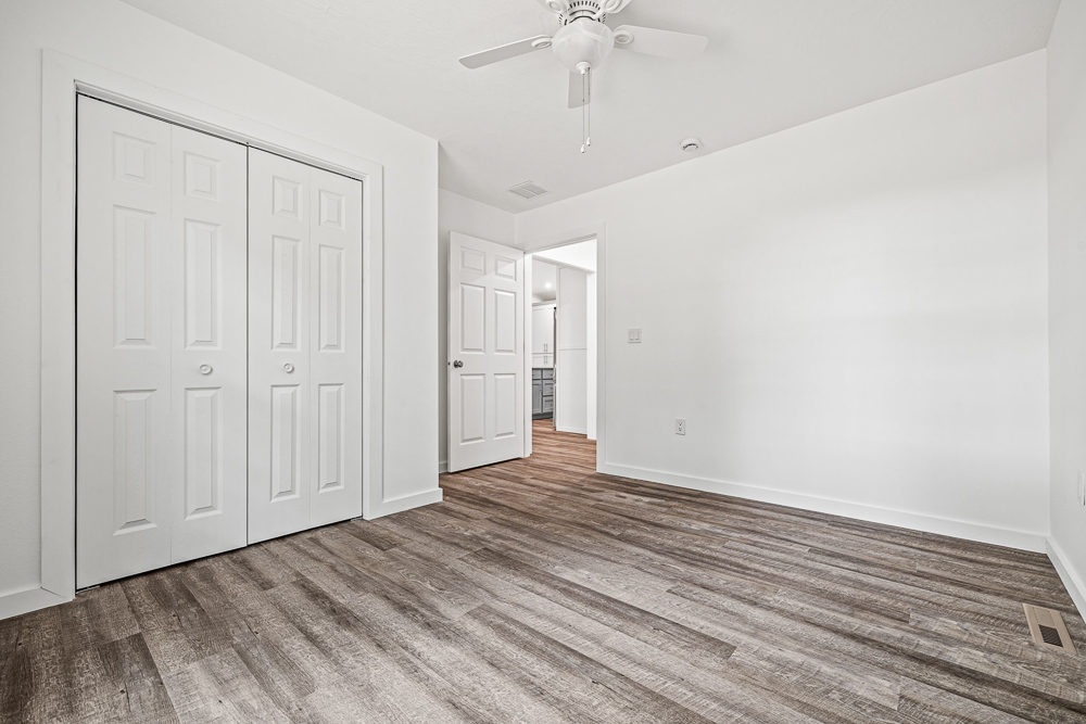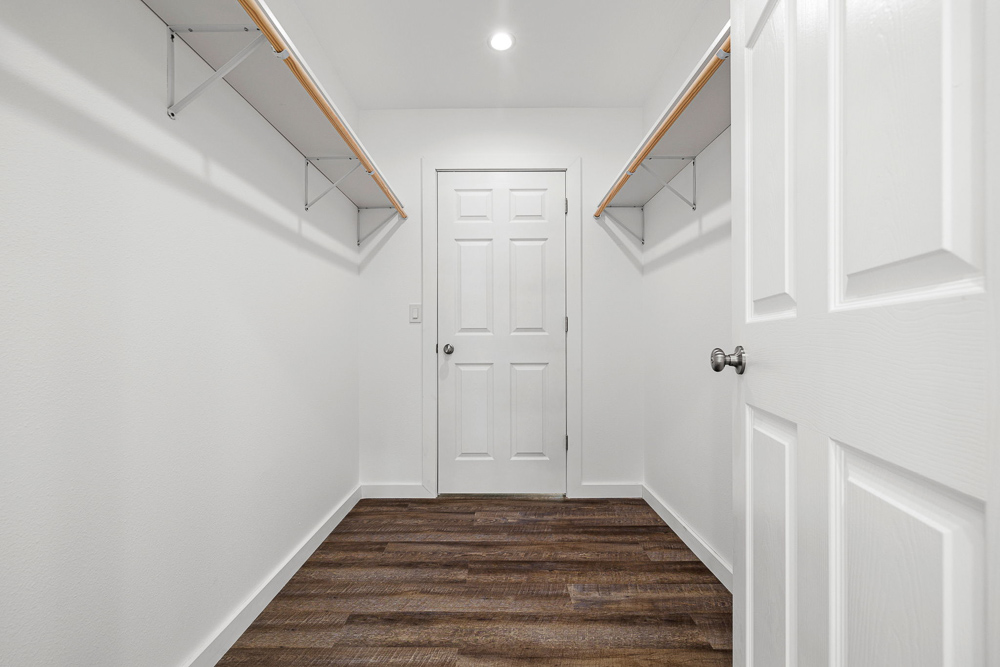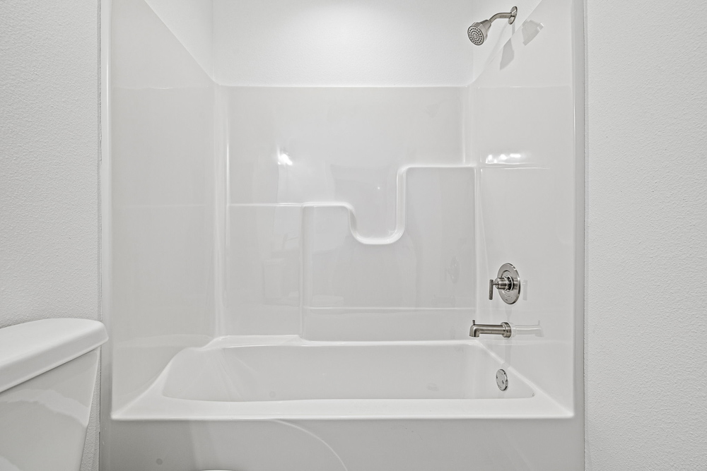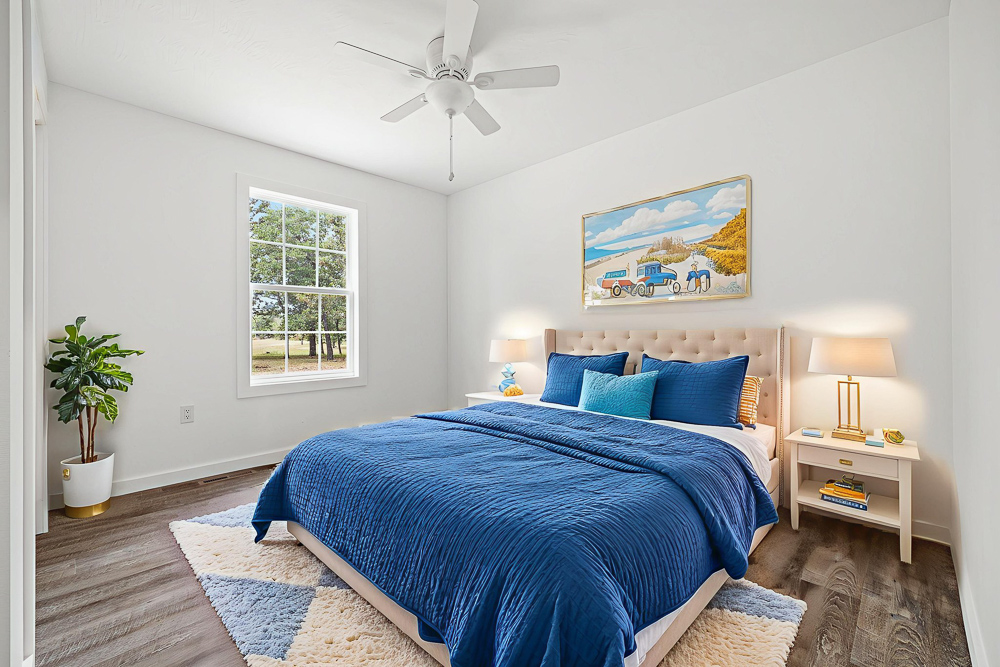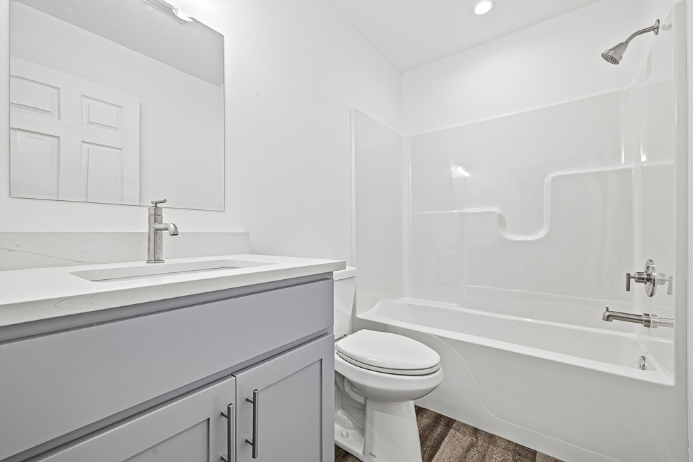 The split floor plan places the master suite on its own side of the home, complete with dual sinks, matching cabinetry and countertops, and a walk-through closet that connects directly to the laundry room for ultimate convenience.