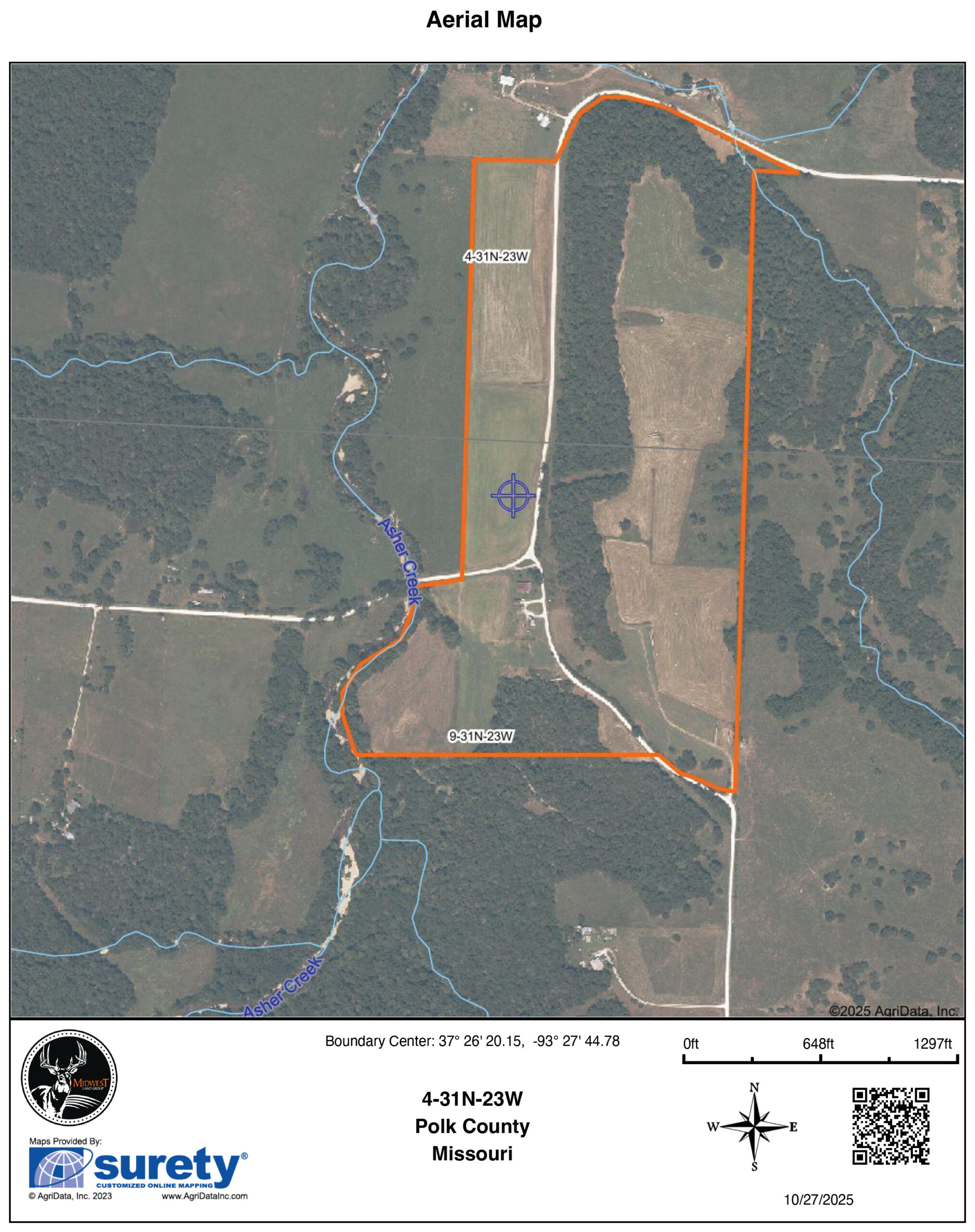 Wildlife enthusiasts will appreciate the excellent deer and turkey populations, along with fertilized fields that produce abundant hay. The property also includes access to Asher Creek, providing a peaceful natural setting. Additional features include a small dog kennel, multiple road frontages for easy access, and a variety of usable spaces for farming, recreation, or future development.