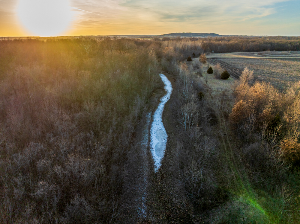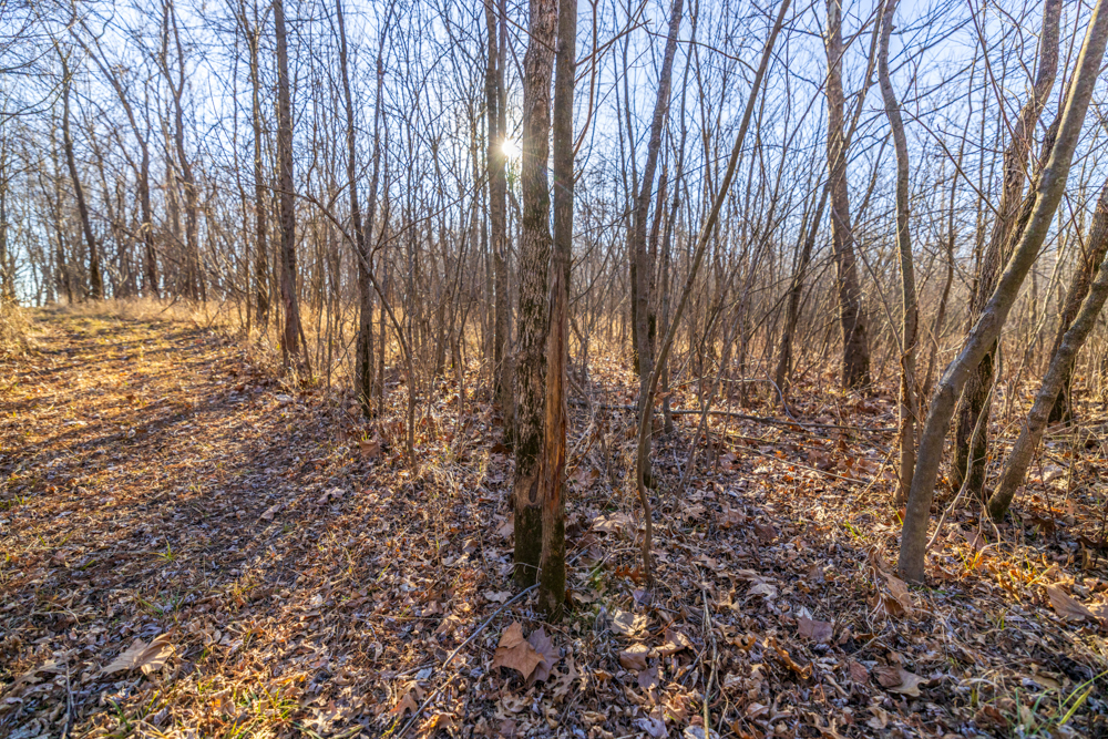 A quick look at the property reveals a tremendous amount of timber and thick cover. The seller is an avid outdoorsman, and he has set this property up with access in mind. There is an extensive trail system throughout the property that is accessible on foot or by ATV/UTV. For folks who like to hike and explore, you could take an entire day discovering what this farm has to offer. These trails also make it very convenient to extract game and plan a strategic entry or egress to hunting locations in the autumn. The springtime morel mushroom season would be amazing here. Most of the southern border of the farm is the Fishing River. As the name suggests, there is good fishing here year-round. This river system is a major travel corridor for whitetail deer.