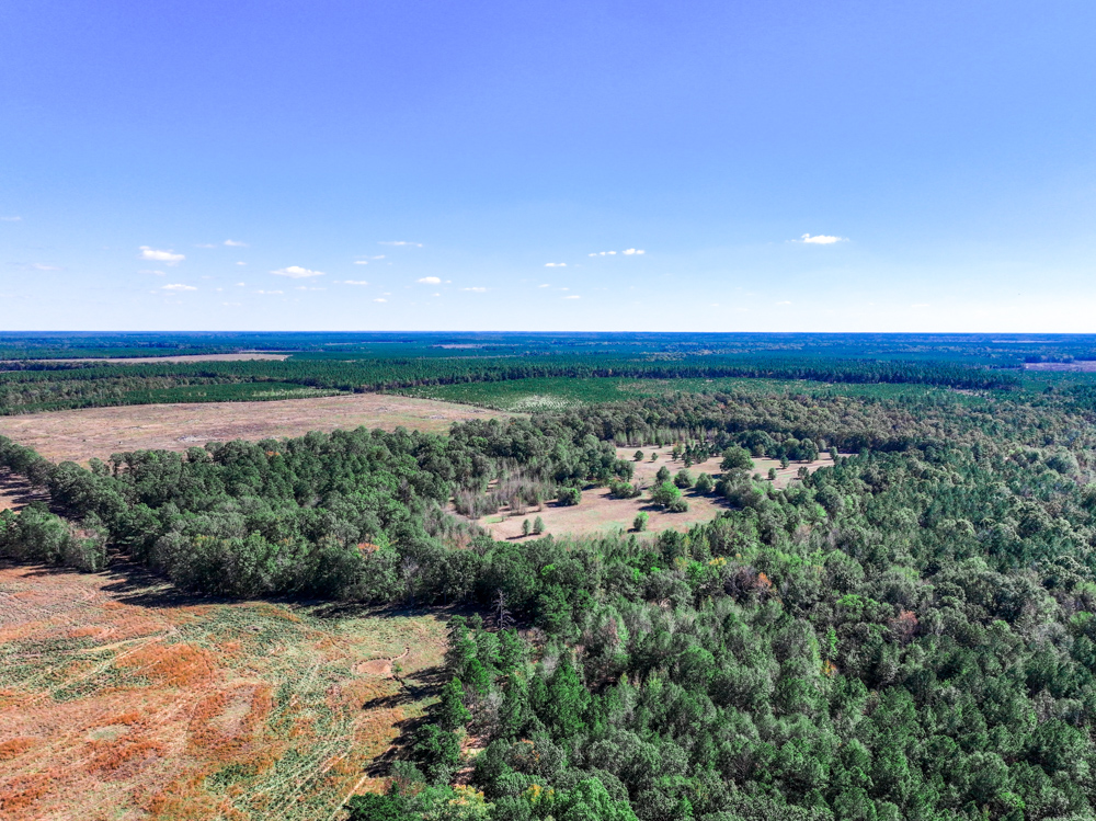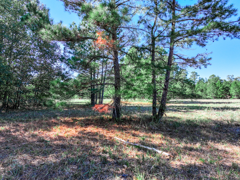 - Mixture of open land, pine, and hardwood timber
