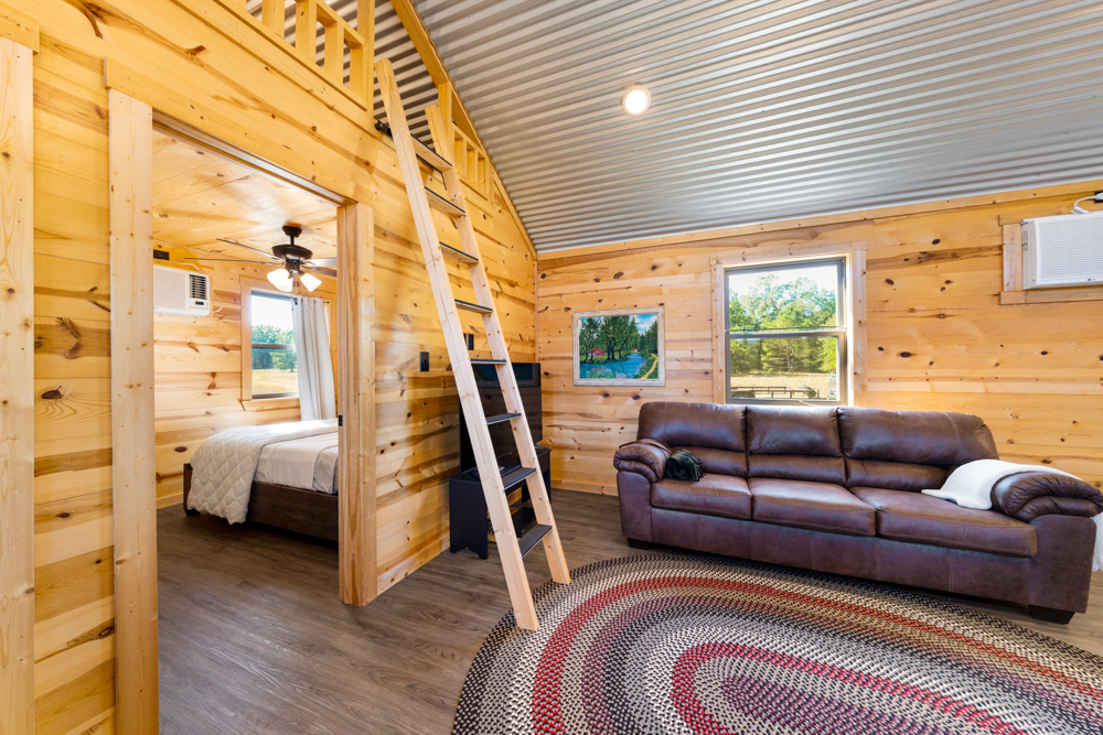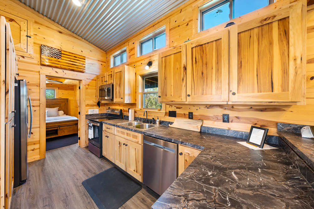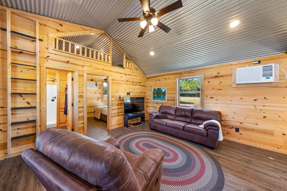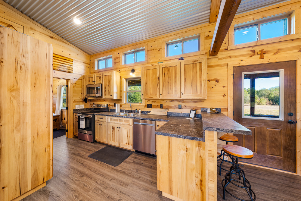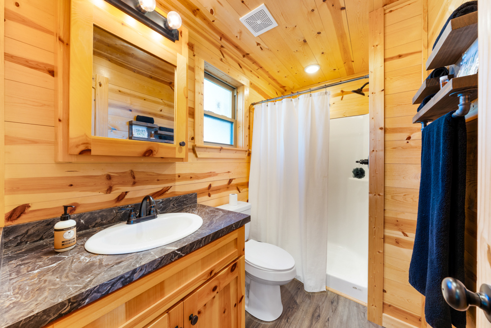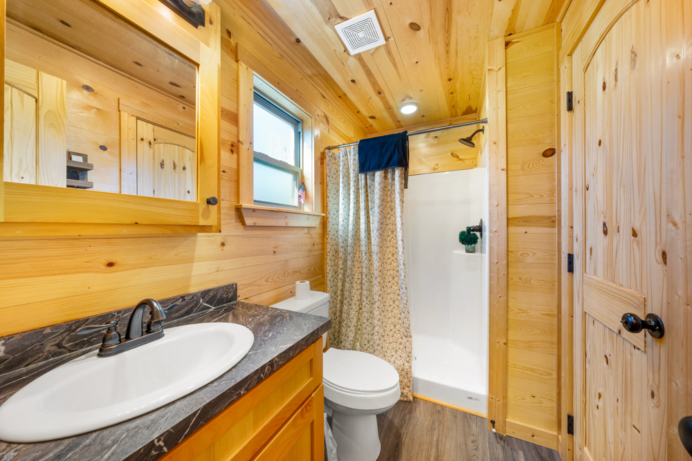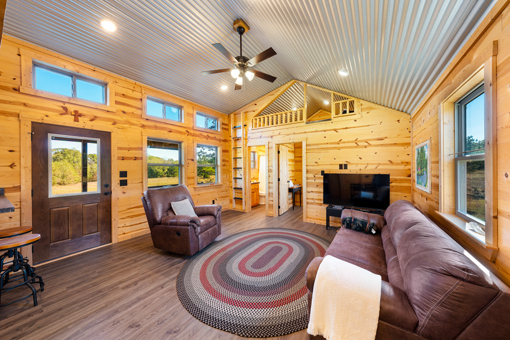 - 2-bedroom, 2-bath pre-manufactured cabin