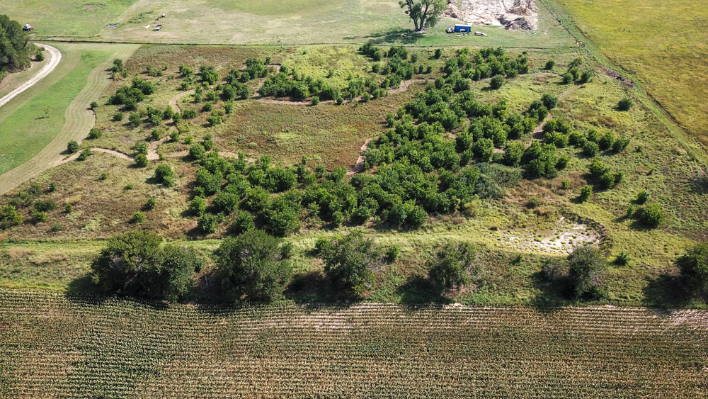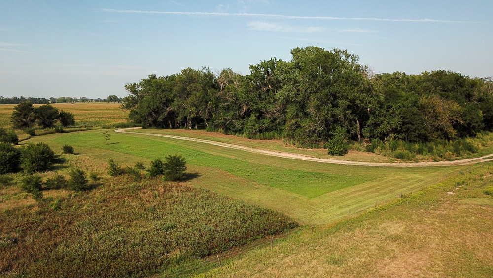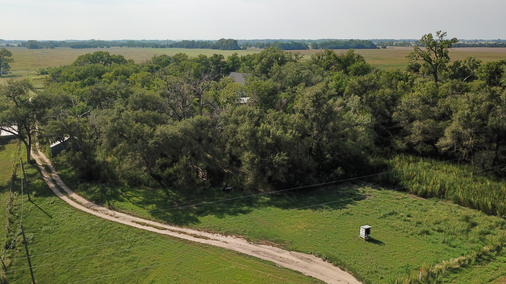 Located off a quiet, paved, county road is this newly built 3 bedroom, 2 bath home that is tucked back in a stand of timber that truly resembles an oasis in the middle of beautiful Kansas farmland. As you pull off the blacktop and onto the drive, you’re facing a huge stand of trees and have no idea that a residence is tucked back in the property. The drive takes you west from the blacktop around the south edge of the timber and winds over halfway to the back of the property. As you circle around to the north, you start to catch glimpses of the beautiful country home and the huge green lawn that surrounds it. The drive takes you to the north and then curves in through the timber and then Y’s in either direction up towards the house and around both sides providing a circle drive around to the back of the house. In addition to being built in a stand of timber, the rolling terrain adds character to the property and the house sits perfectly on a high point of the property adding a majestic feel to the setting.