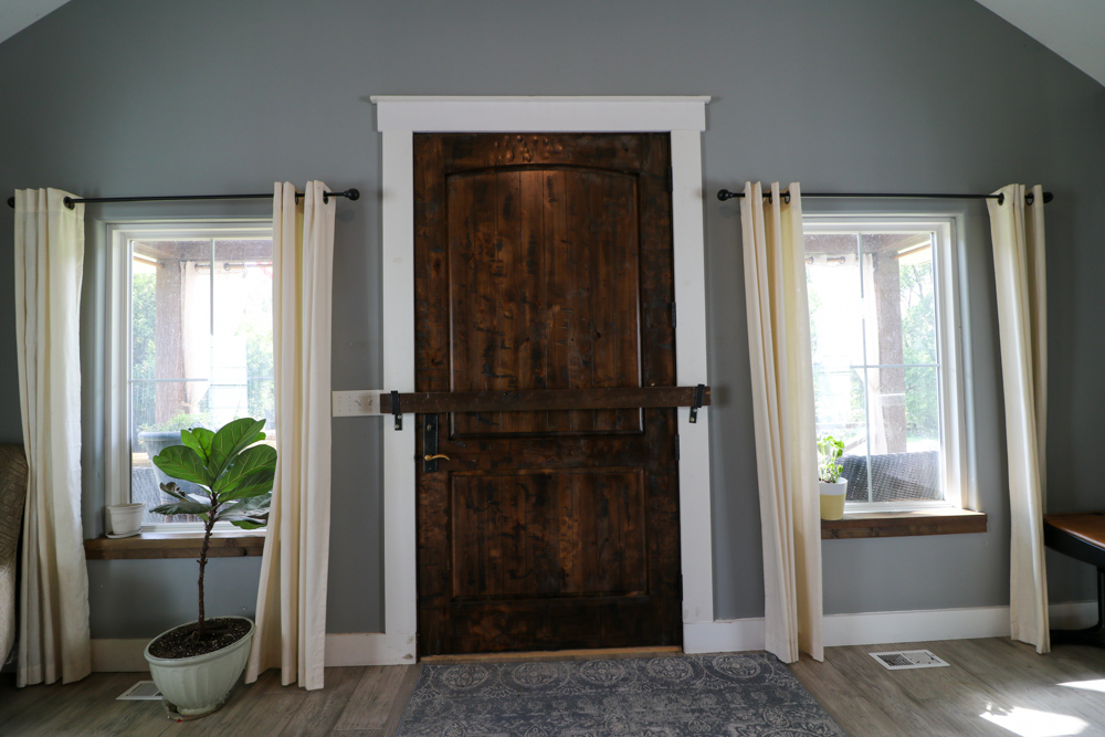The house was positioned at a southwesterly angle facing the beautiful Kansas sunsets with a nice front porch boasting big timbers and an oversized, custom-made front door. The steep pitch roof gives way to a 17’ cathedral style ceiling down the center of the house with hardwood floors and huge stormproof, lifetime warranted windows that allow ample amounts of natural light into the house as well as provide the ability to enjoy the beautiful setting and gorgeous sunsets from the comfort of the living room. A wood-burning stove with a blower and electric starter sits on a custom hearth made from various brick factories. The dining space separates the living space from the elevated, open kitchen that is literally 2 steps up from the rest of the house giving the chef in the family the best view as well as the well-deserved sense of honor for their role in preparing meals for the family. Beyond the kitchen toward the back door is the mud room, laundry room, utility room, and big main bathroom. On the south side of the main living space are 2 oversized bedrooms with walk-in closets and on the north side of the main living space is a bonus room/den/reading room and the huge master bedroom with a walk-in closet and oversized master bath. The master bath has a deep soaker tub and an unfinished shower space allowing the next owner to design it as they see fit and put their own finishing touch on the house.