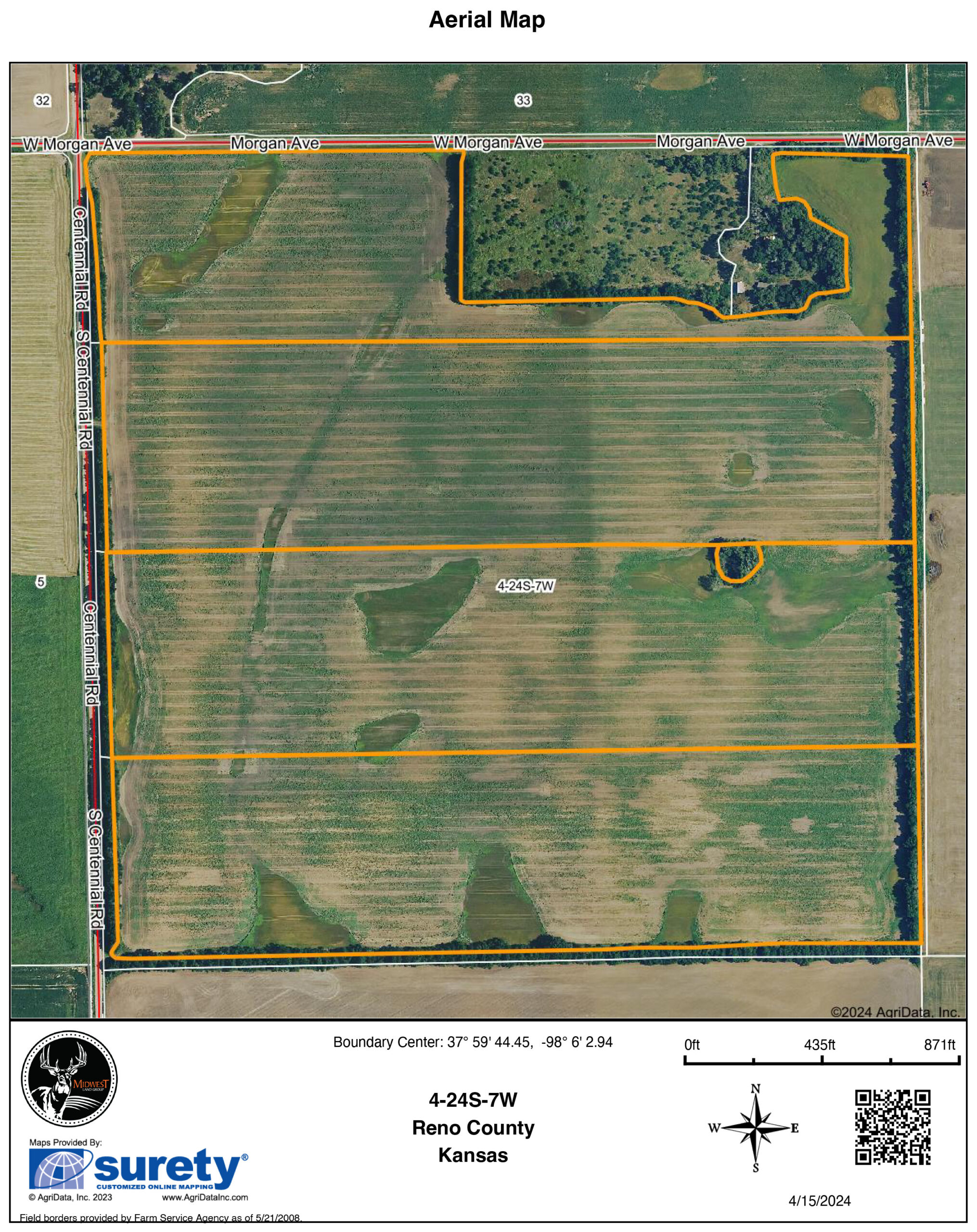 This productive 136.2 +/- acre parcel in central Reno County, Kansas, just 2 miles due north of Partridge, is a great opportunity for an investment buyer. With a proven track record, an experienced tenant in place, and a guaranteed ROI of 3%, this one will be a great fit for your investment portfolio. The seller/tenant is willing to sign a long term lease of 10-15 years, locking in the 3% guaranteed ROI for the new landowner. The quarter is located off South Centennial Road, a well-maintained gravel road, just a half mile north of Highway 50. The land is comprised of 100% Class II soils including Farnum, Funmar, Saltcreek, and Taver silt loams. It has excellent county NCCPI averages and solid production records for the crops rotated on this tract.For more information, answers to your questions and to set up an appointment to see this one in person, please contact Terry DeShon at (620) 921-3015.