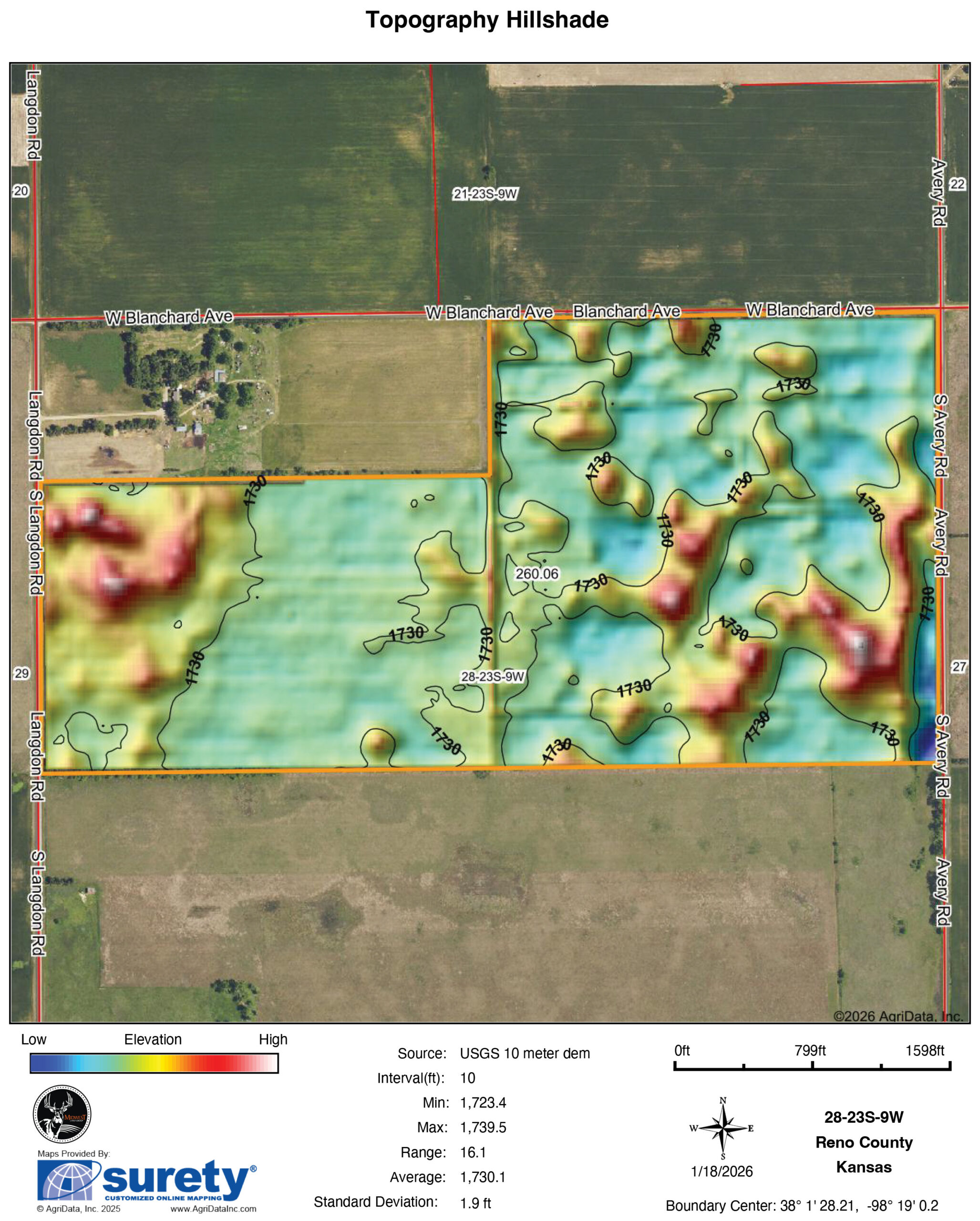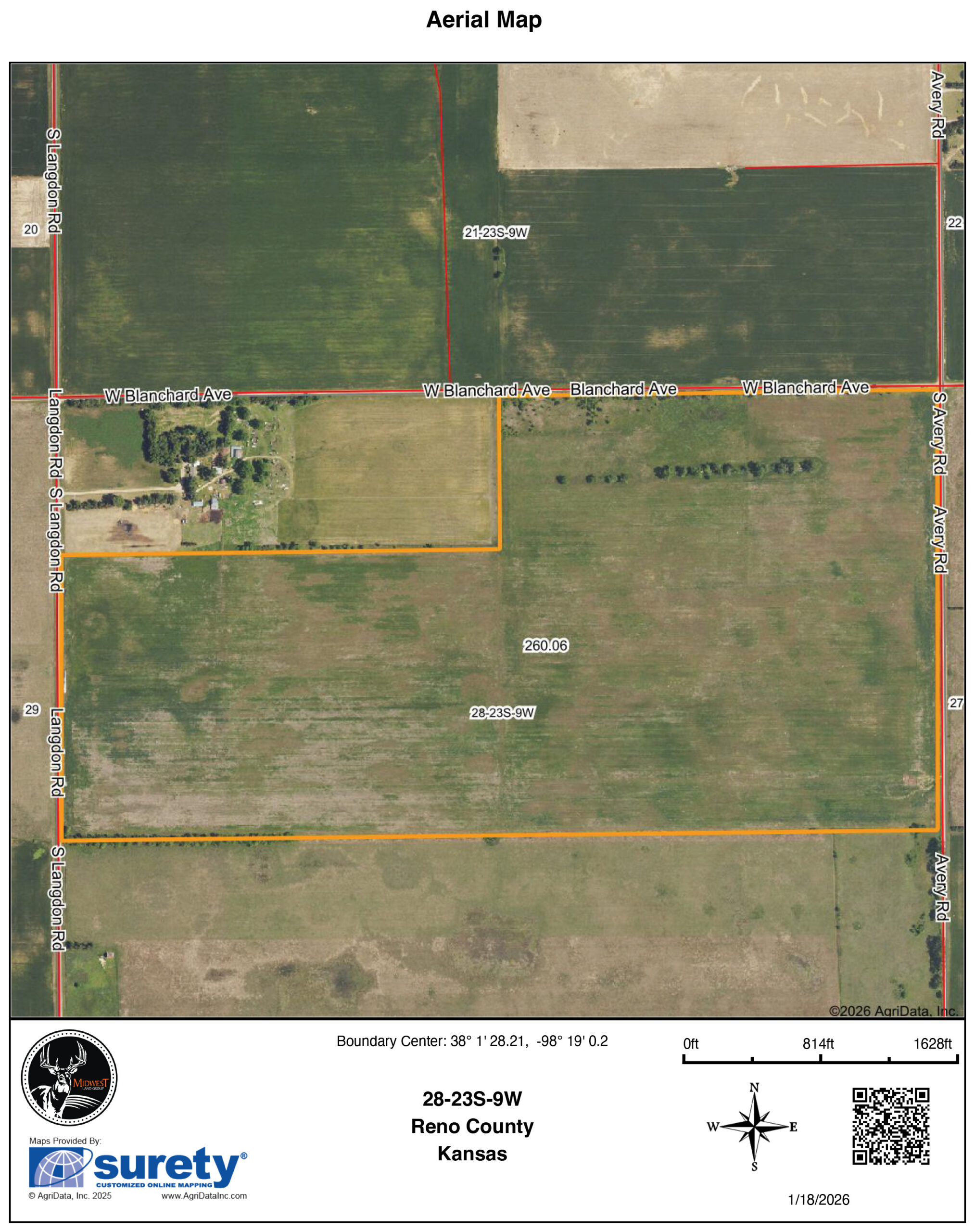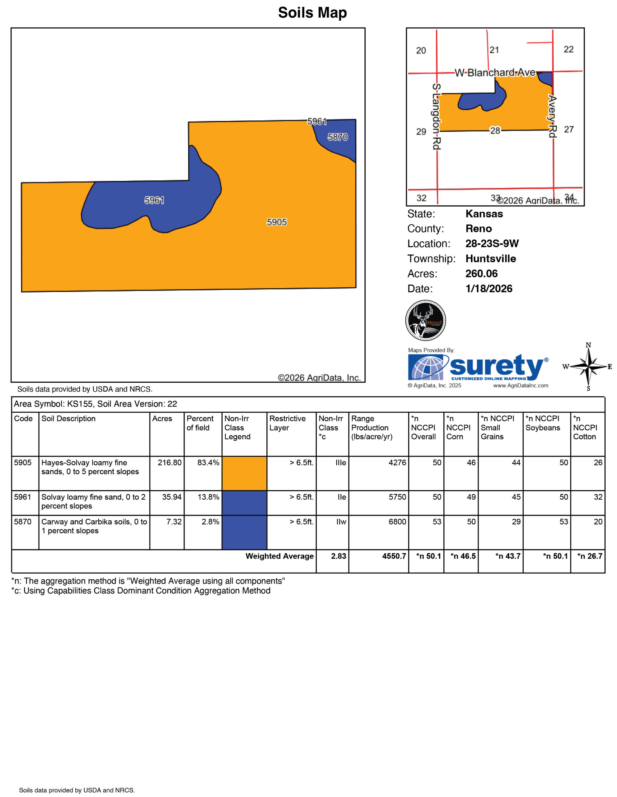 The soils carry an overall productivity index NCCPI of 50, characterized by loamy fine sand, an excellent medium for planting and double crop rotation. This tillable soil produces excellent yields and winter pasture. Blacktop road frontage and electricity mean this could be an excellent location to start a new homestead. Build your forever home, equipment storage, and livestock shelter next to Langdon Road. The commute to Hutchinson is short, and nearby 50 Highway can take you places quickly. The property is currently planted to wheat, full possession to new owner following harvest. It seldom occurs that a mostly tillable tract of this size becomes available, especially on a paved road. To view disclosures and schedule a viewing, contact the Listing Agent Sean Thomas at (620) 712-2775.