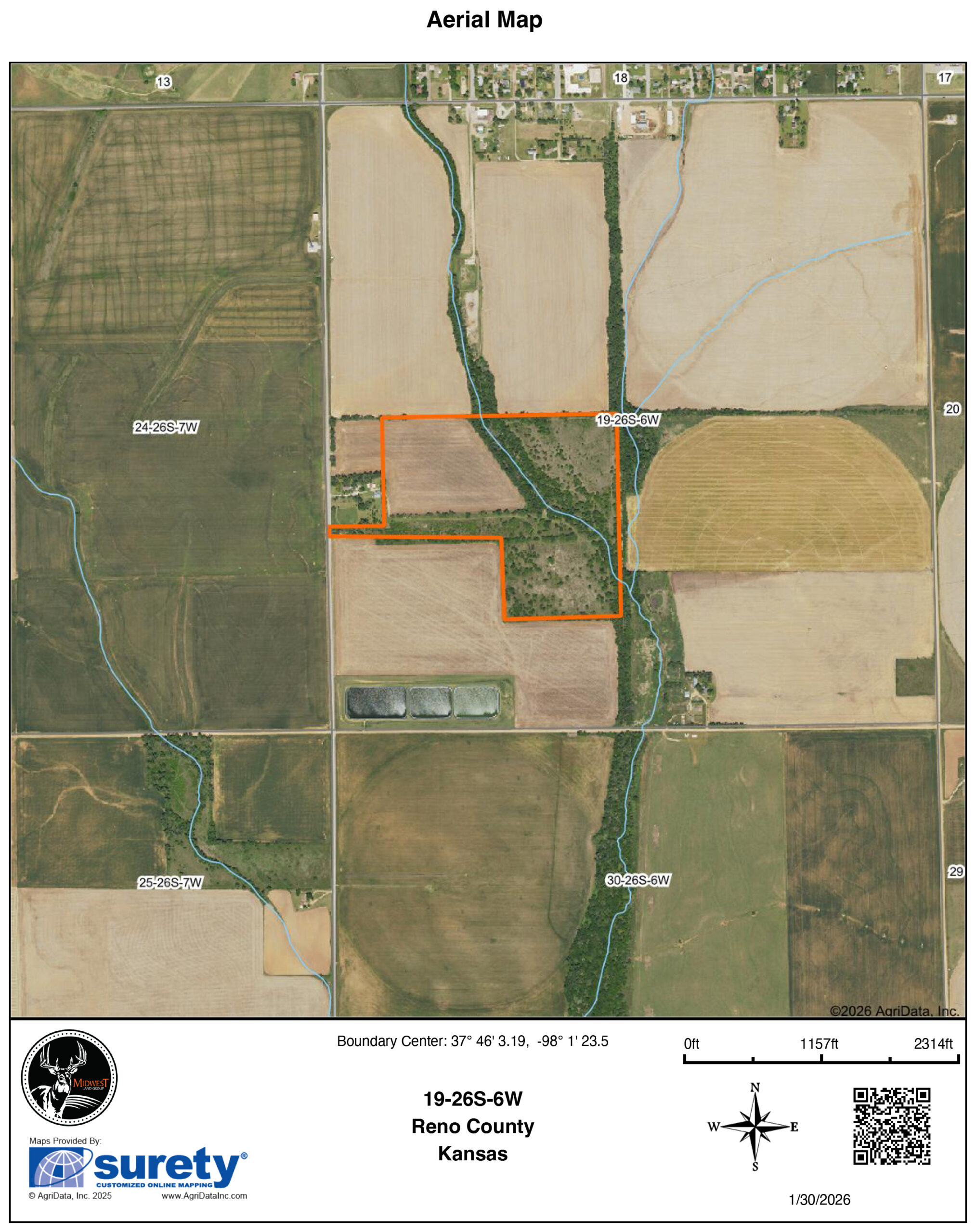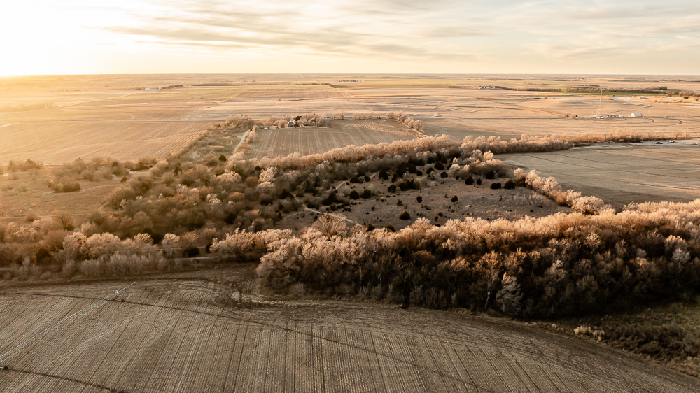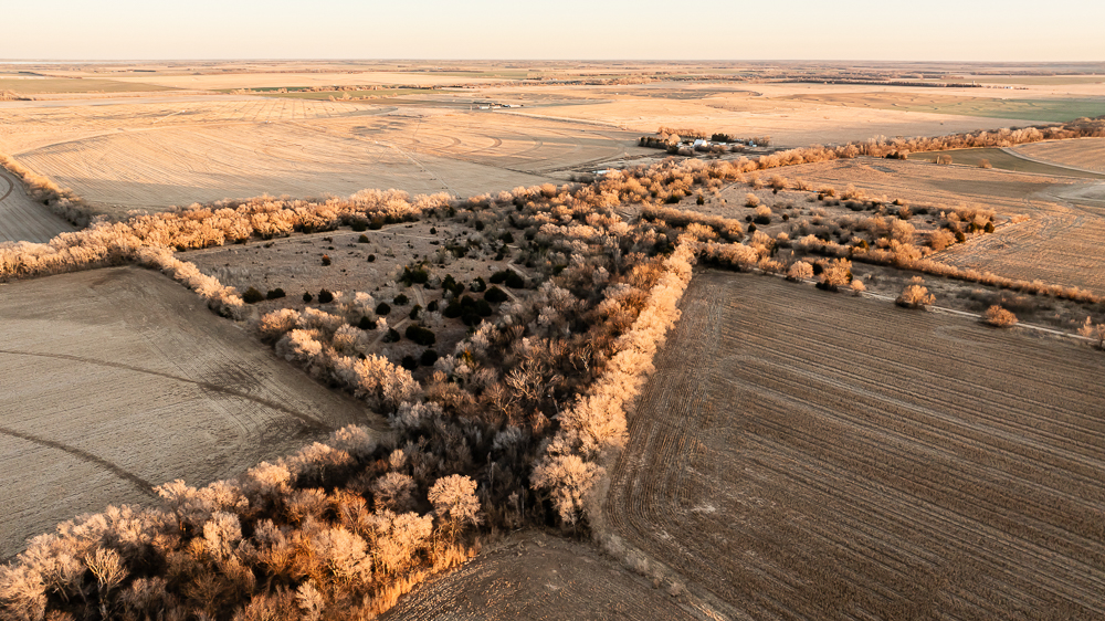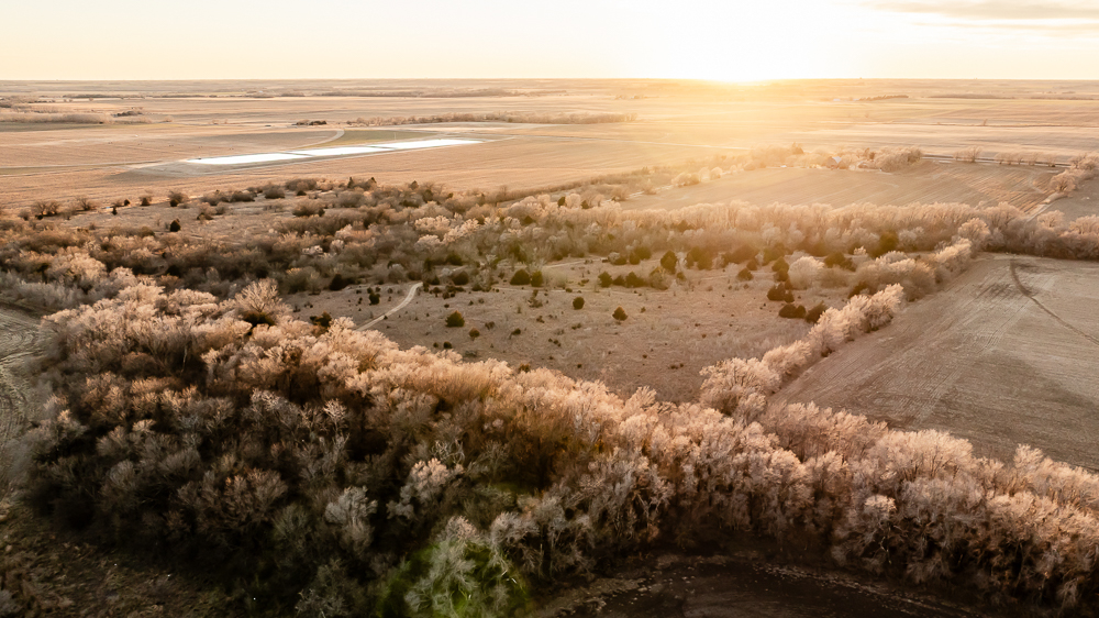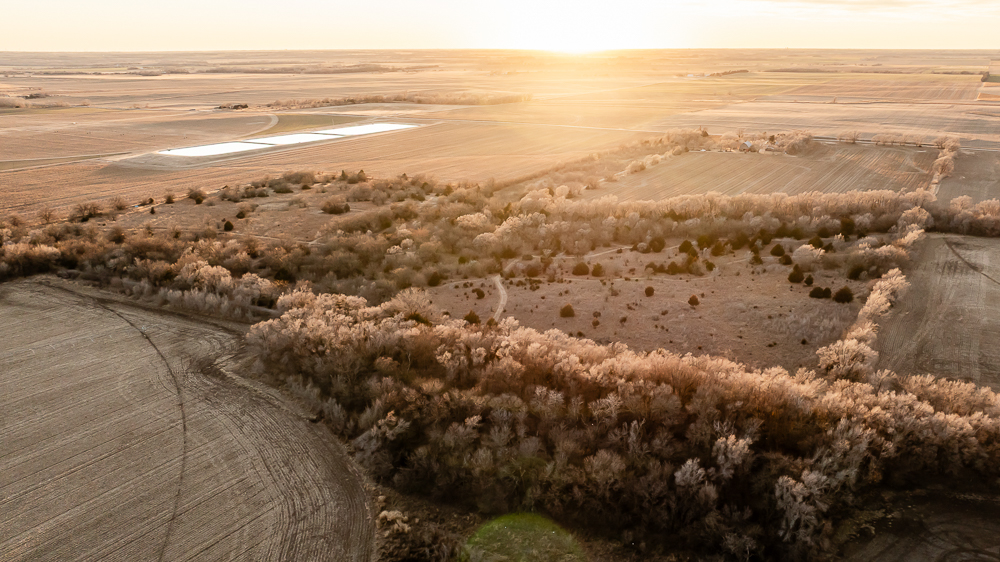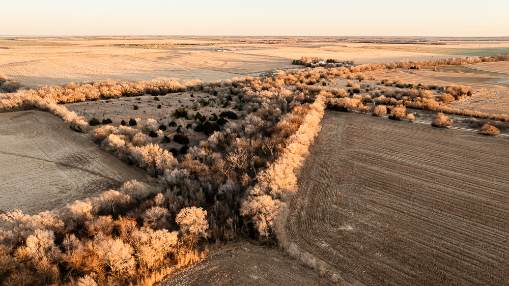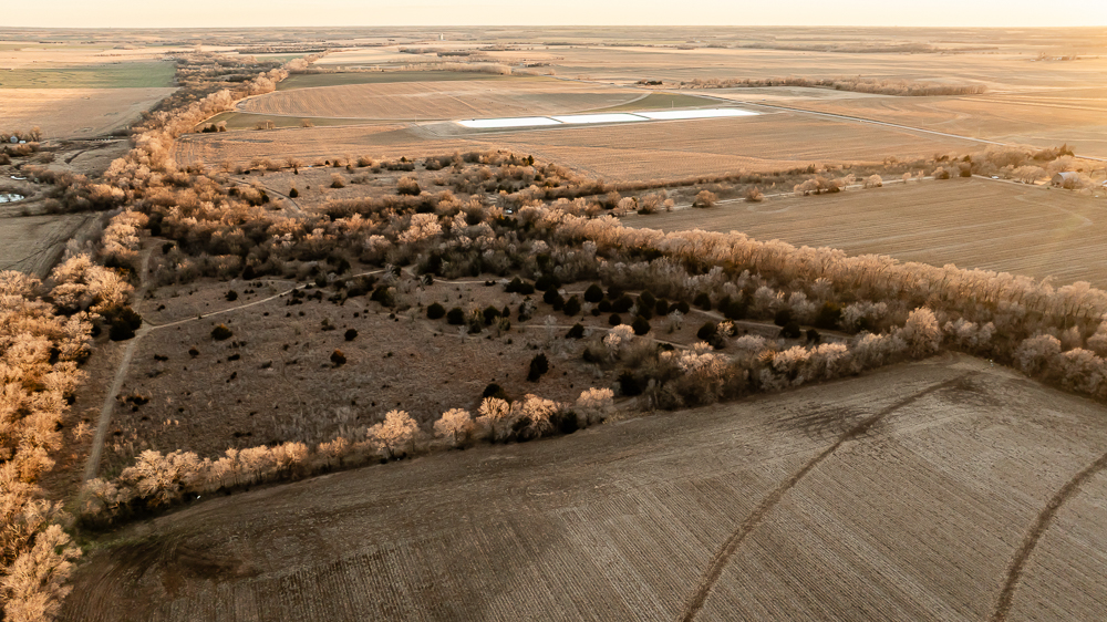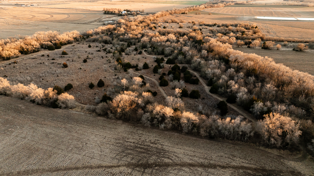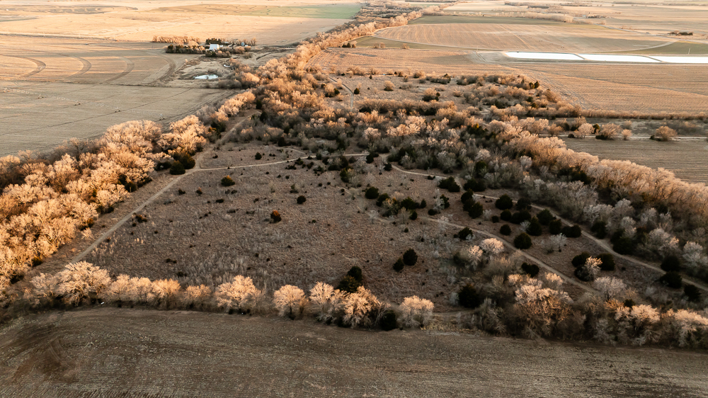 If you have been searching for the perfect-sized hunting retreat or build site with wildlife out the back door, here it is. Just south of the charming town of Pretty Prairie is 63 +/- acres available for the first time in over a hundred years. A seasonal tributary of Smoots Creek meanders through the property north to south. The creek slices through the irrigated circles landscape and is a magnet for surrounding wildlife. Flanked on both sides by mature timber, this tree grove is home to roosting turkeys and a herd of whitetail deer.The farm is comprised of about 32 acres of dryland tillable and about 32 acres of woods, native grass, and thickets. This is the perfectly balanced farm you have been looking for. There are 19.56 acres in active production. This field, currently in milo stubble, is available for immediate possession, meaning you can switch up the crop rotation to what suits you, enroll in CRP, or start construction of your dream home/cabin. This field is always full of deer feeding in the evenings. These income-producing acres are a nice addition, it makes the property a little bit of revenue to pay property taxes and ice cream money for projects. There are 23 FSA base acres with a wheat PLC yield of 38 bushels per acre. The remaining tillable acres, which amount to 12.44 acres on the east side of the creek, secluded from sight in every direction. This field, once in CRP grass, expired many years ago, but is now full of thick bedding area for whitetail deer. Plum thickets, cedar trees, and successional native brush. This area holds deer, turkeys, pheasants, and quail.
