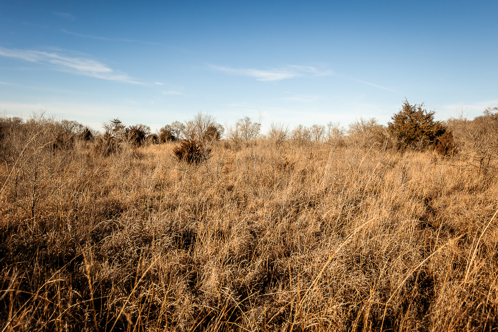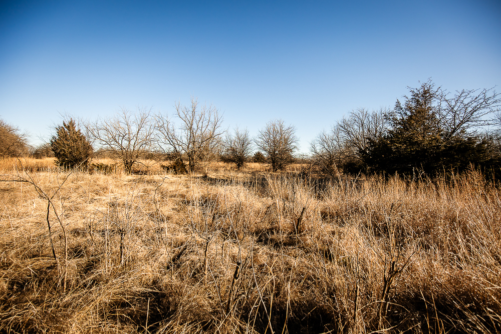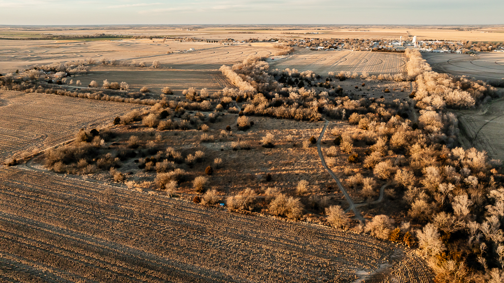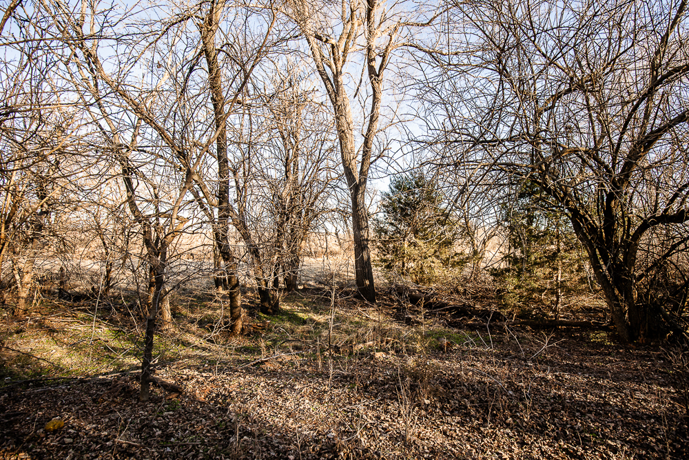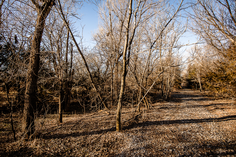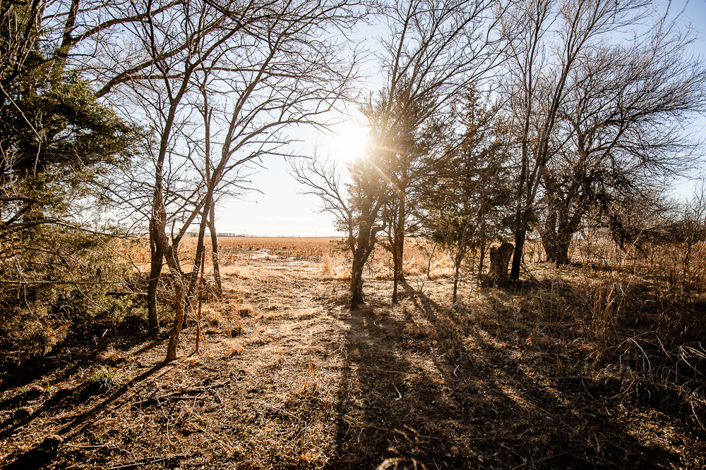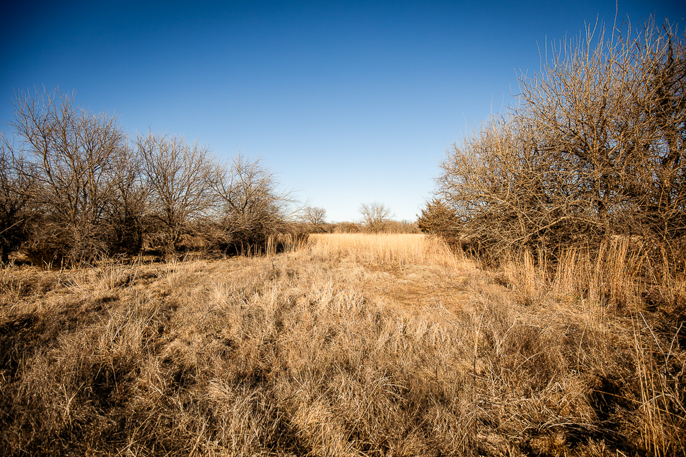 The remaining 32 +/- acres south and west of the creek is categorized as pasture, thick grass, interspersed tree cover, and a drilled water well for cattle grazing. There is fencing on two sides of the property and partial fencing on another side. Not much effort, and this could also be used for homesteading or a small herd of livestock. There are elevation changes that drain to the creek, pools of water remain even through the driest of season but are too small for fish. A new owner could construct a large pond, building an impoundment across the creek that would fill with seasonal rainfall, creating additional water for livestock and wildlife. The entire eastern boundary of the property is an abandoned railroad bed, a subdivision line of the Santa Fe Railroad that went from Hutchinson to Blackwell, Oklahoma, stopping at the Depot in Pretty Prairie until 1961. There is a unique bridge that is still sturdy as can be, and this path has been maintained for clearance and access for equipment through the property. There are also local stories of Native American camp sites along Boundary Road and settlements in this forested area.